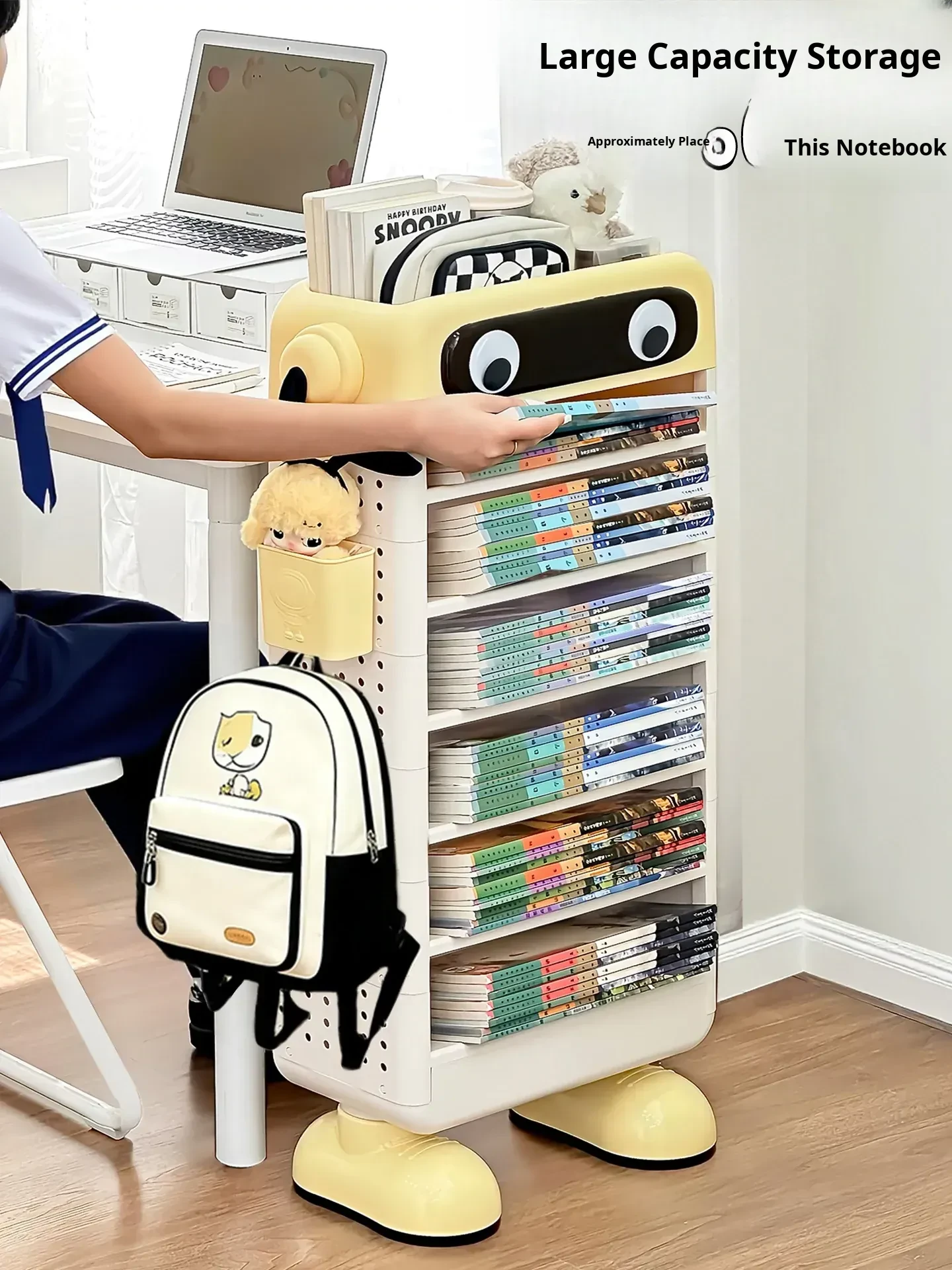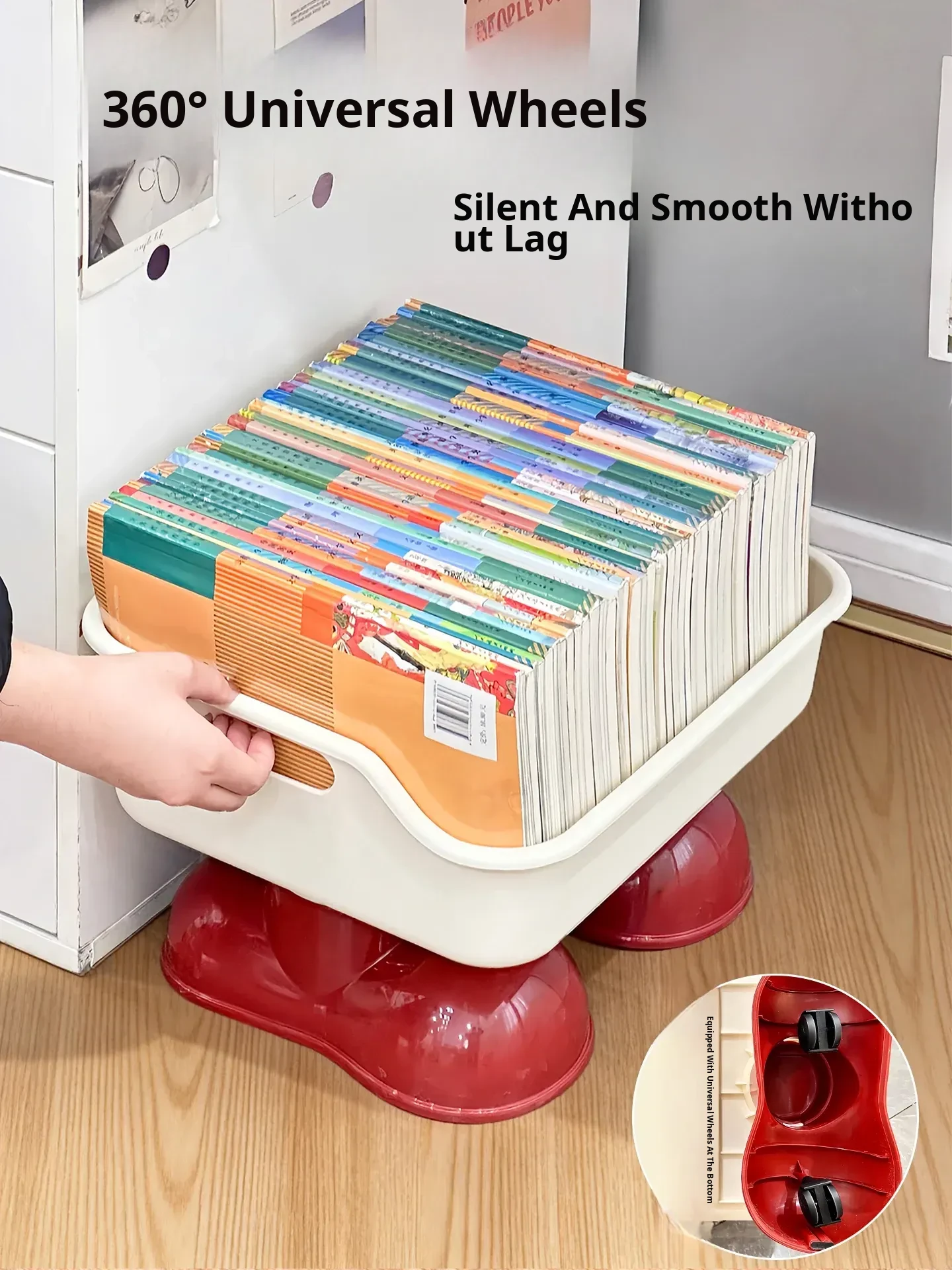 Cute and Creative Rolling Book Storage Cart with Wheels - Under Desk Organizer for Students to Store Books, Backpacks, and Snacks - Stylish and Functional Floor Storage Solution
