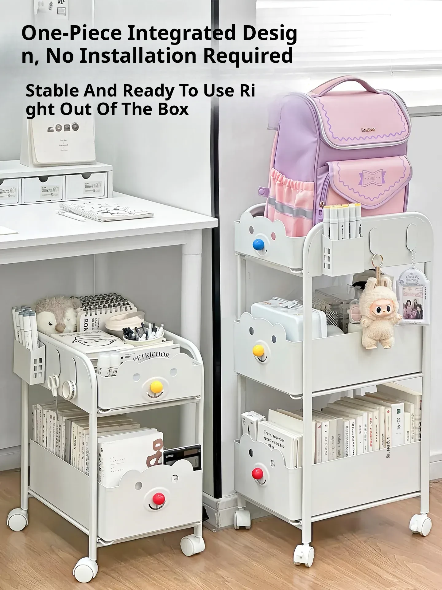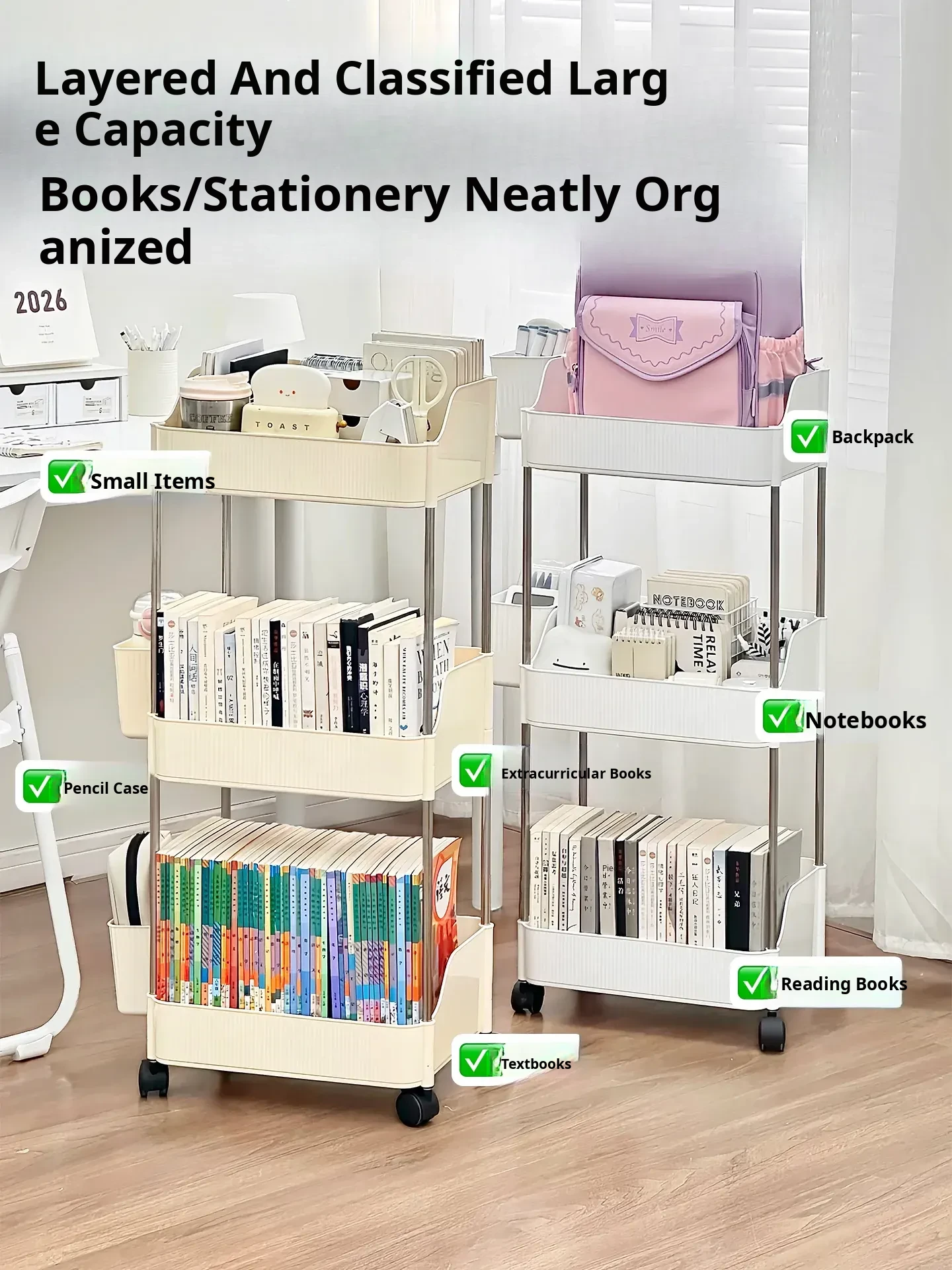 Multi-Tiered Rolling Storage Cart - Under Desk Organizer for Books and Stationery - Perfect for Students to Keep Their Study Space Clutter-Free and Efficient!