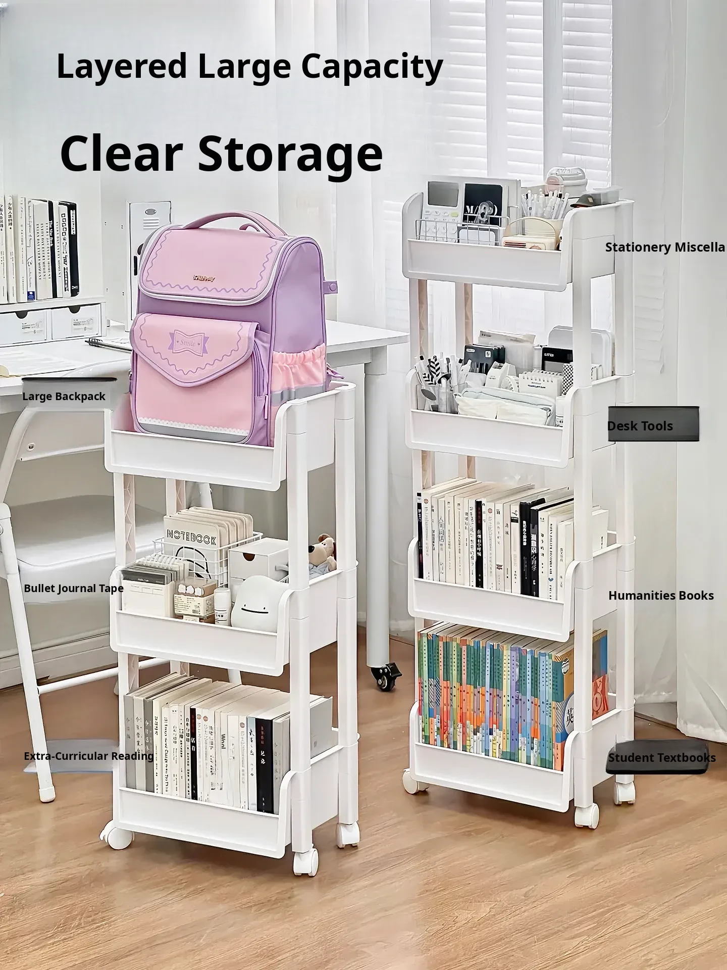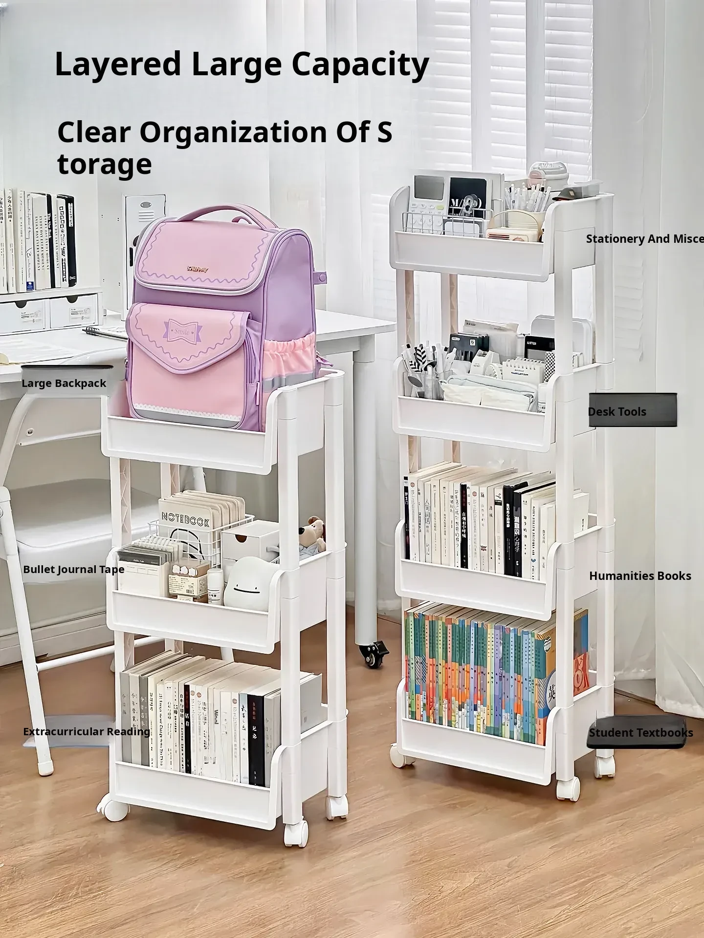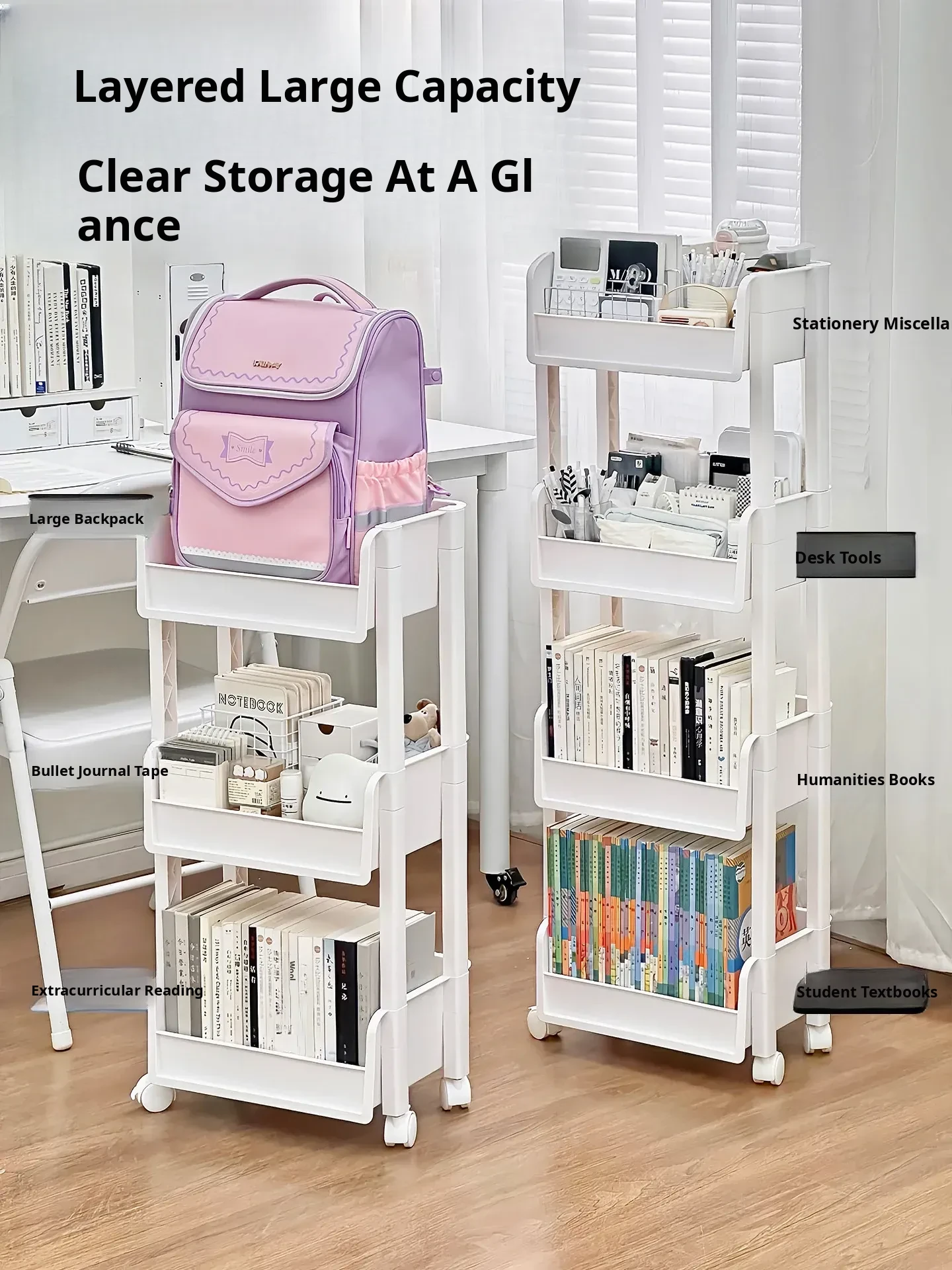 Multi-Layer Storage Cart for Students - Backpack and Stationery Organizer, Floor Standing Book and Miscellaneous Storage Solution