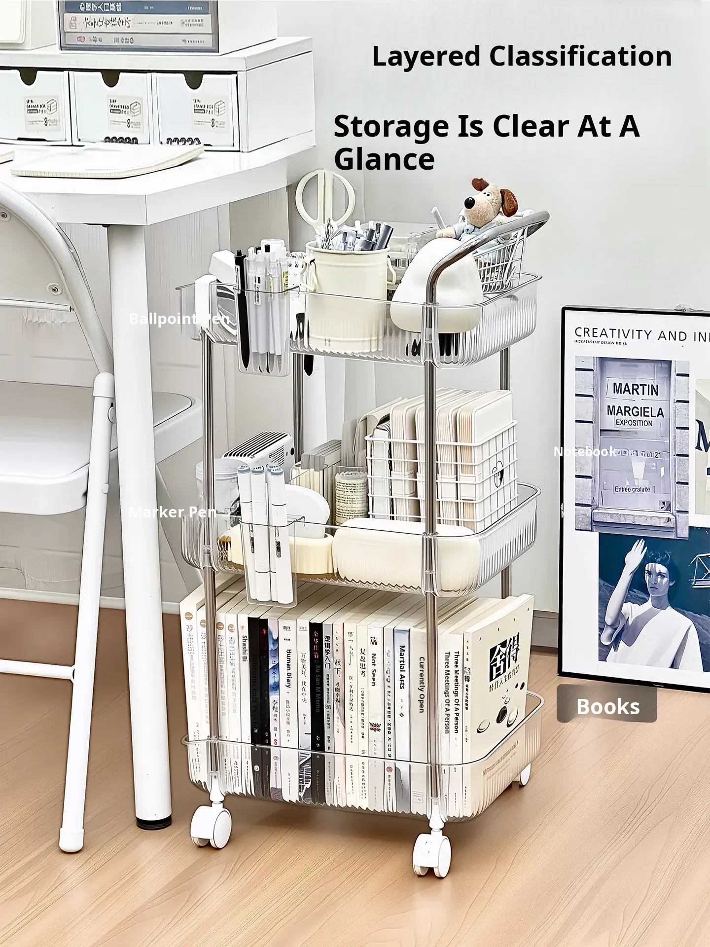 Multi-Tiered Rolling Storage Cart for Students - Under-Desk Organizer for Books and Stationery, Perfect for Snacks and Supplies, Portable and Stylish!