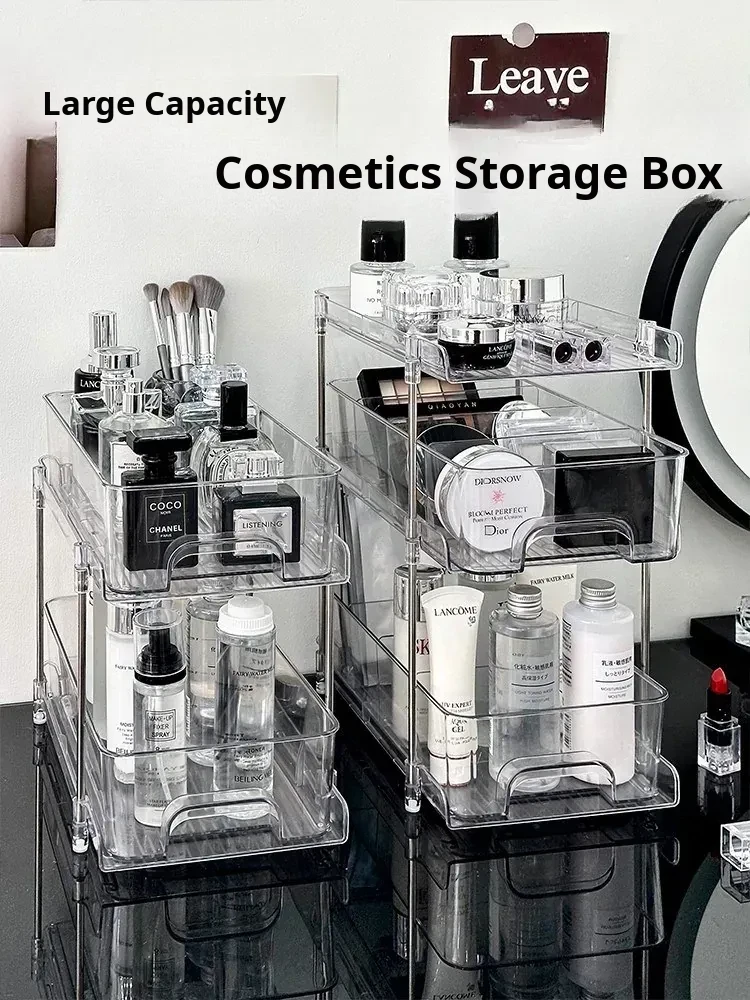 Clear Acrylic Makeup Organizer with Tiered Drawers - Desktop Cosmetic Storage for Skincare Products, Stylish and Functional Vanity Display