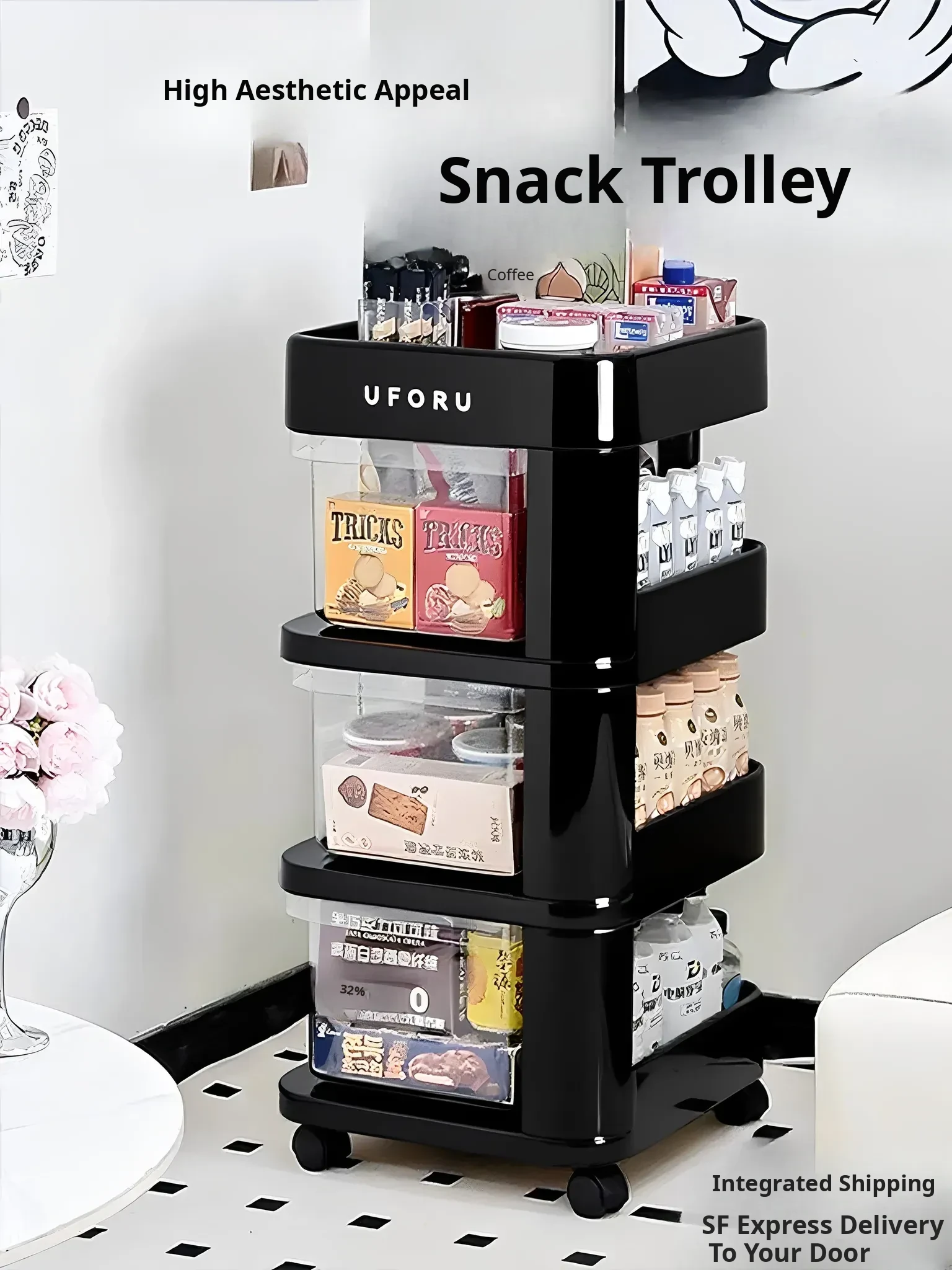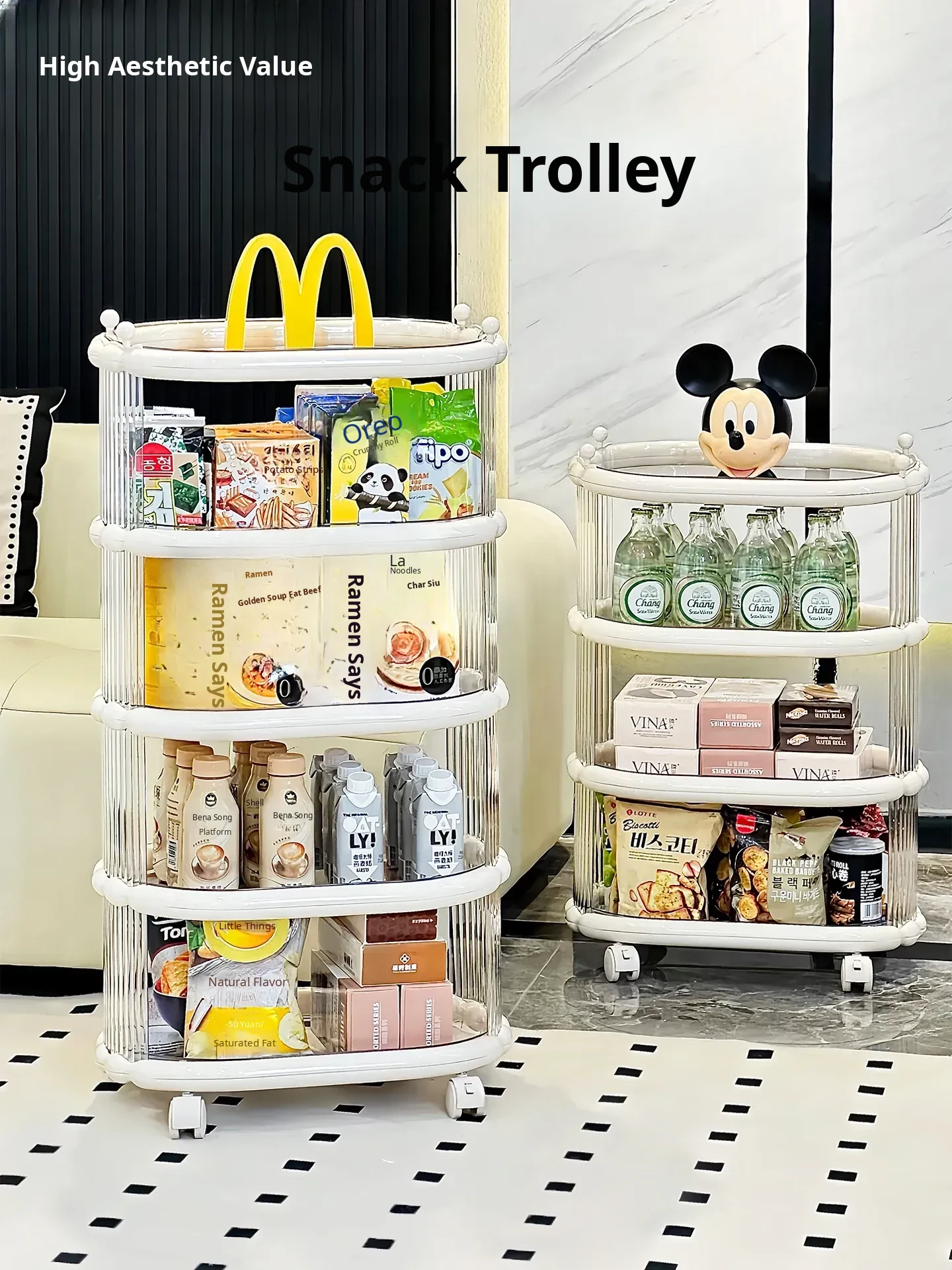 Stylish Multi-Layer Snack Storage Cart with Wheels - Versatile and Mobile Organizer for Living Room, Ideal for Home Use!