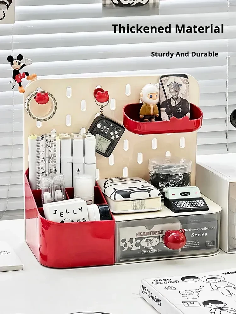 Multi-Functional Desk Organizer with Pegboard - Perfect Storage Solution for Students, Includes Drawer and Storage Box for Clutter-Free Workspace