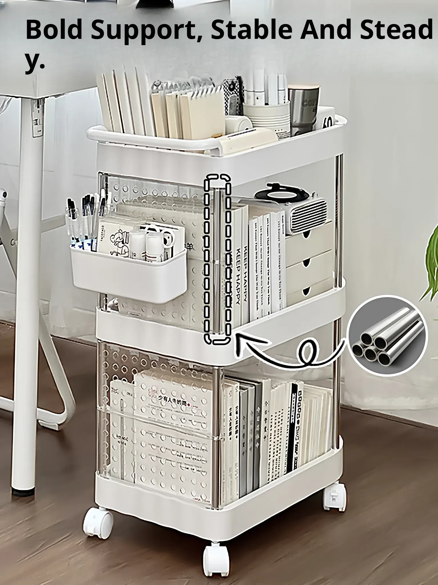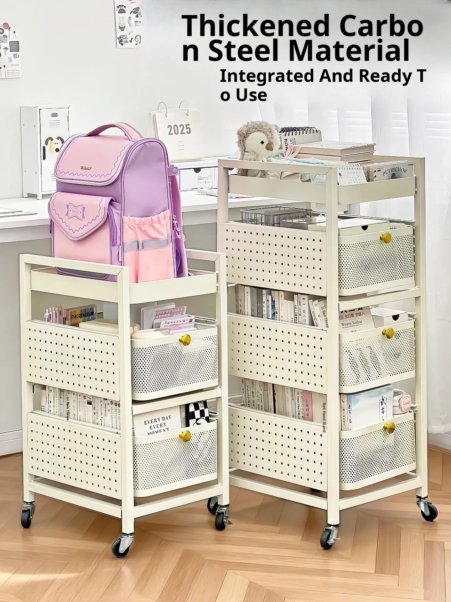 Versatile Student Desk Organizer with Large Capacity - Mobile Books and Stationery Storage Cart for Easy Access to Snacks and Supplies