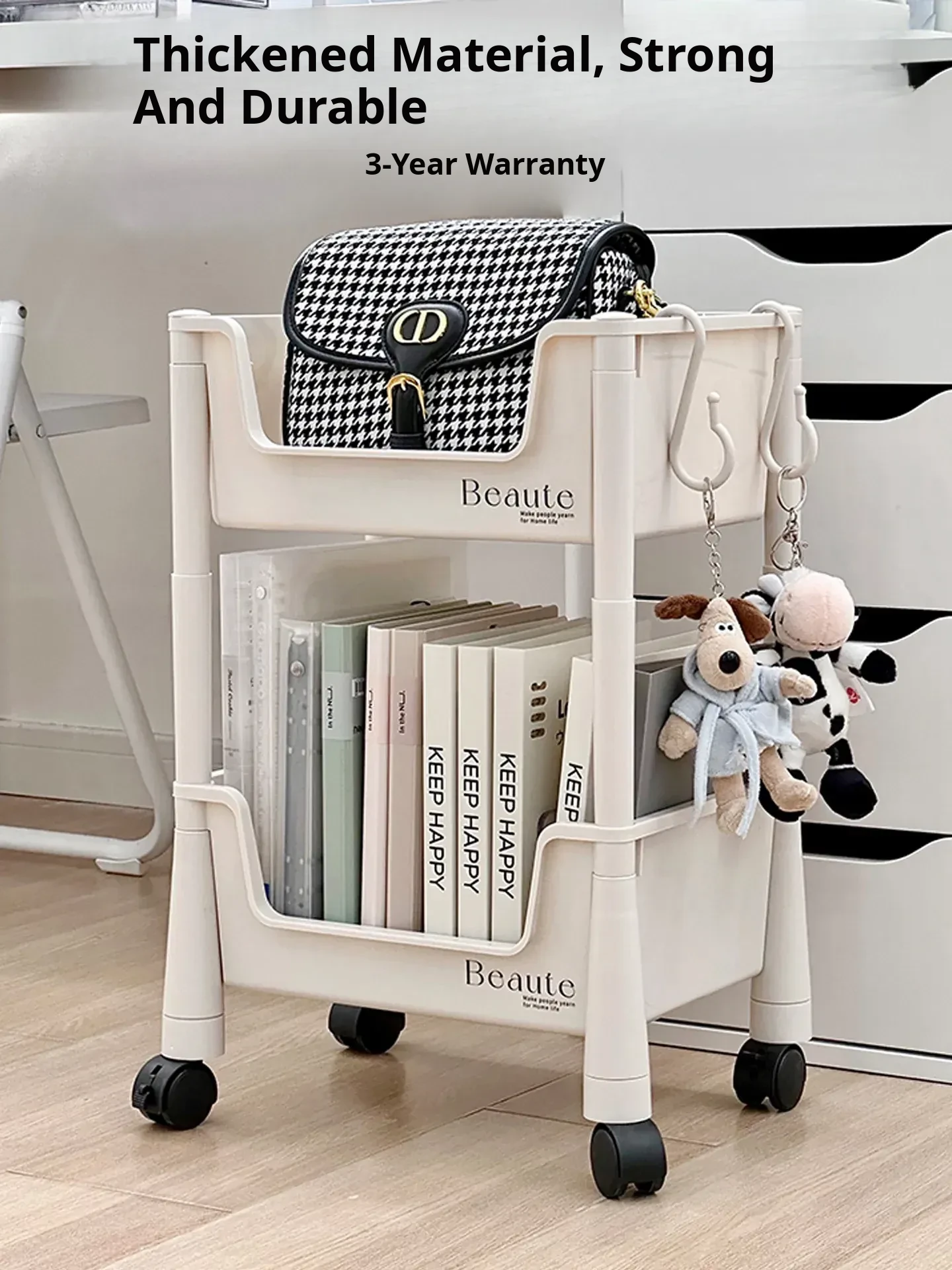 Multi-Layer Rolling Cart with Wheels - Versatile Under-Desk Storage Organizer for Books, Snacks, and School Supplies - Perfect for Students and Home Office Use