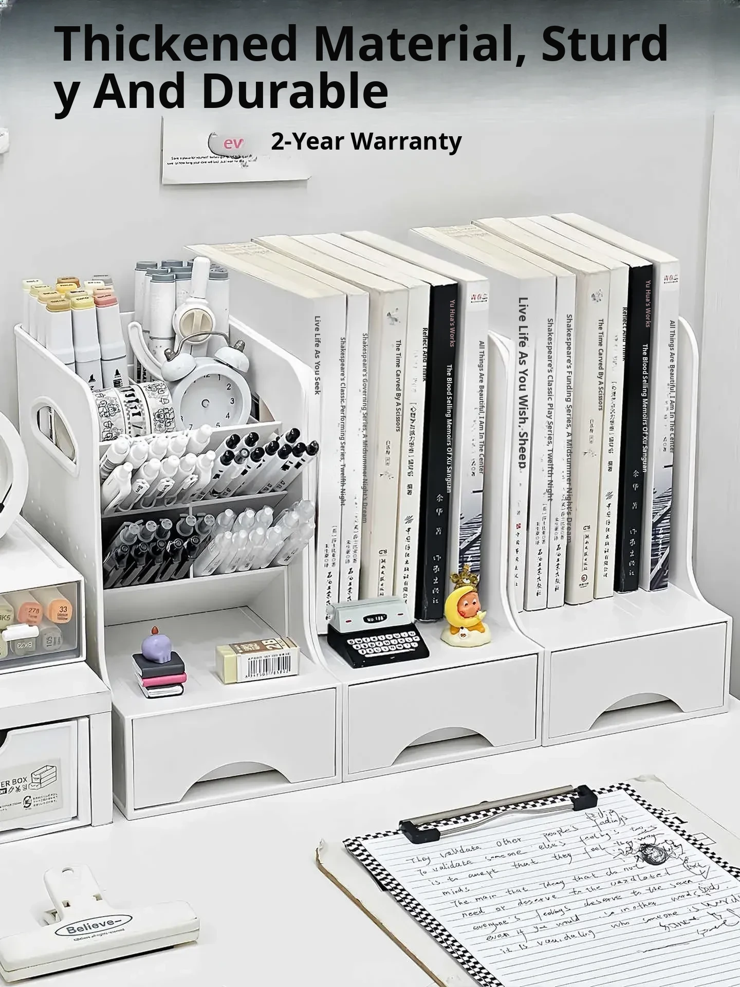 Multilayer Book Storage Box for Middle and High School Students - Stylish Desktop Book Stand with Drawers and Pencil Holder for Kids' Room Organization
