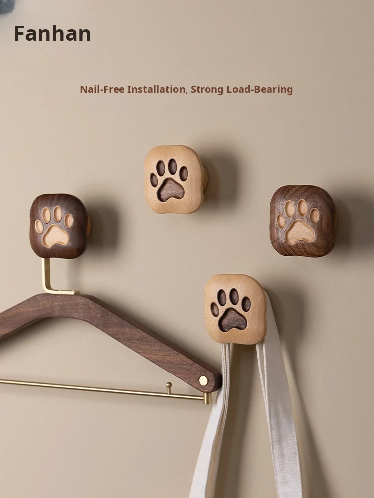 Vanhan Wooden Invisible Wall-Mounted Hanger - No Drill Black Walnut Hook for Bags and Clothes, Perfect for Entryway Organization