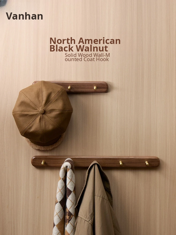 Vanhan Solid Wood Wall-Mounted Coat Rack - Stylish Black Walnut Entryway and Bedroom Organizer with No Drill Hooks for Coats and Hats