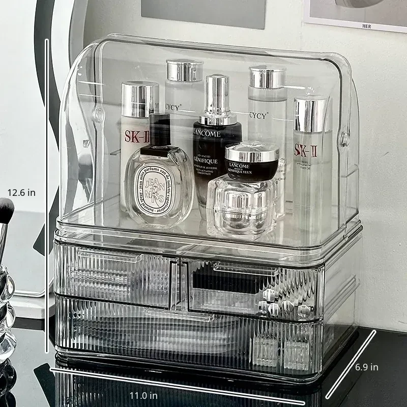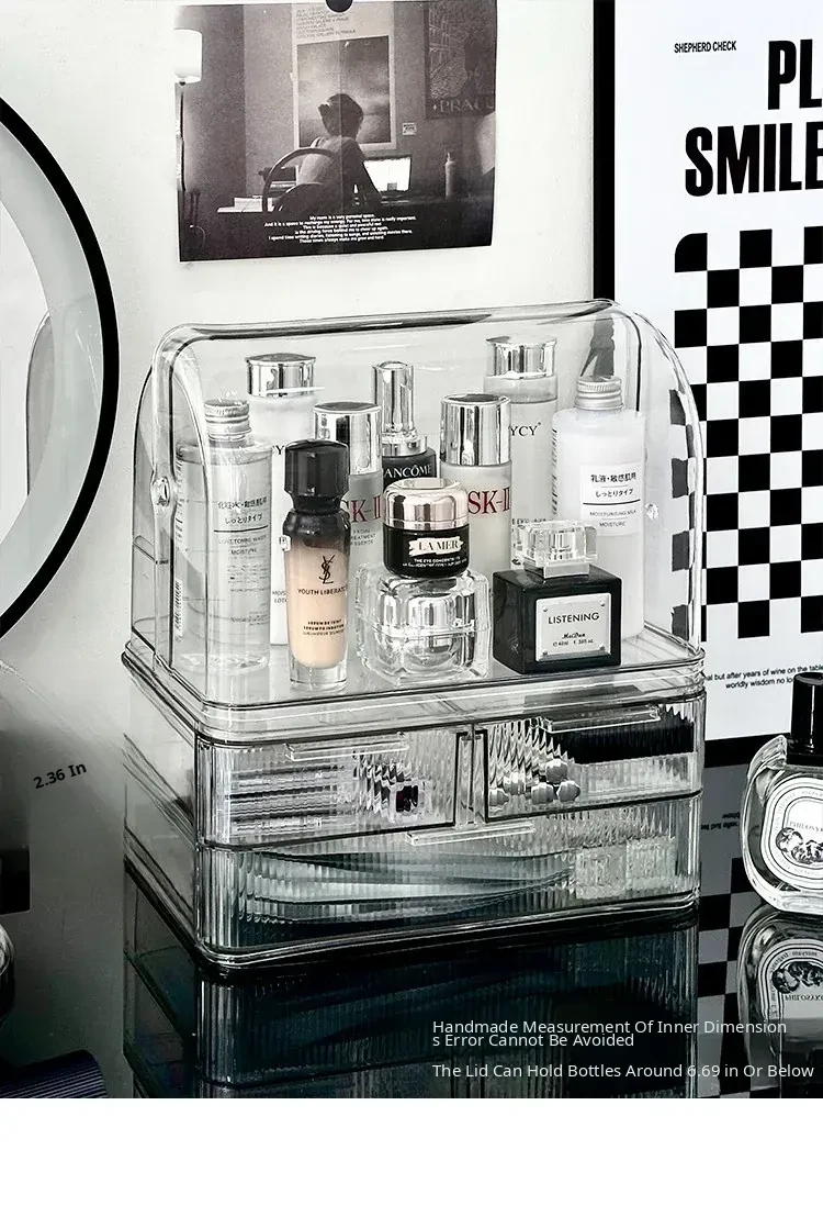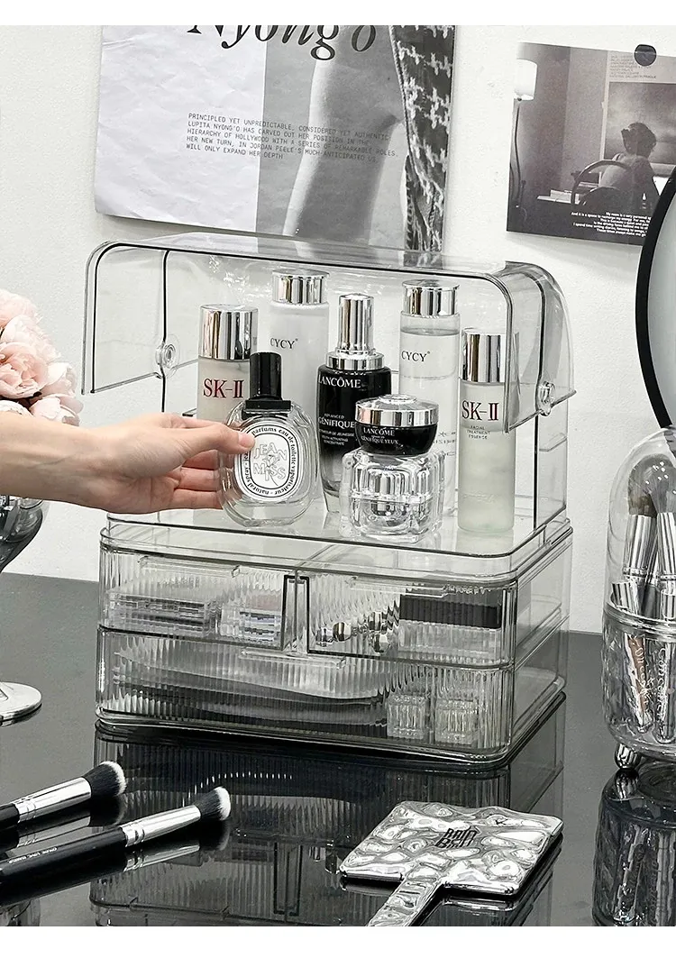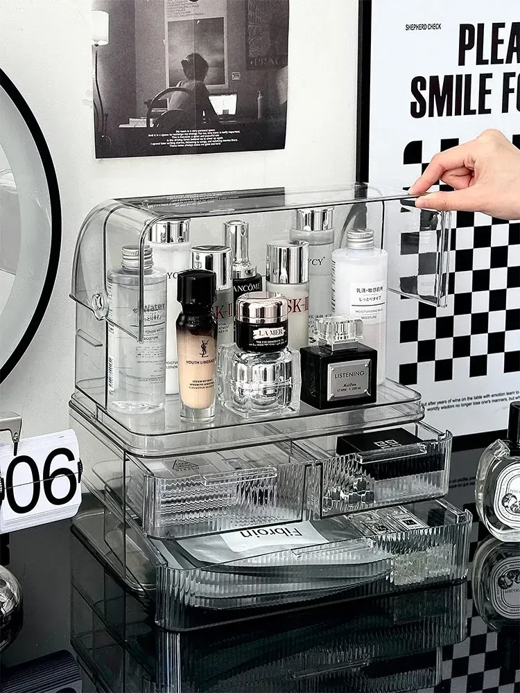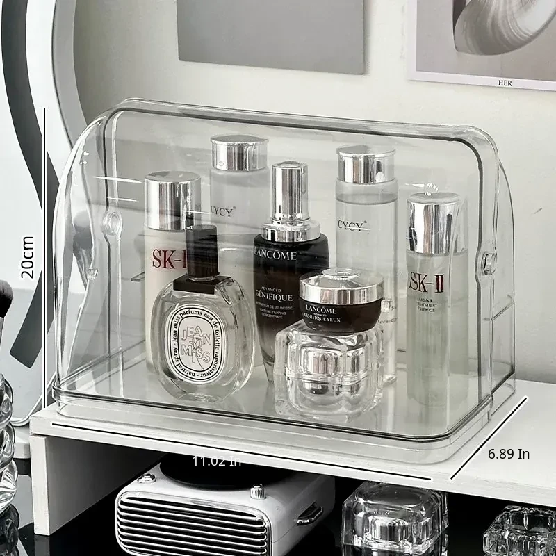 Acrylic Makeup Organizer Box - Stylish and Spacious Vanity Storage for Skincare Products - Dustproof and Elegant Design, Perfect for Your Dressing Table
