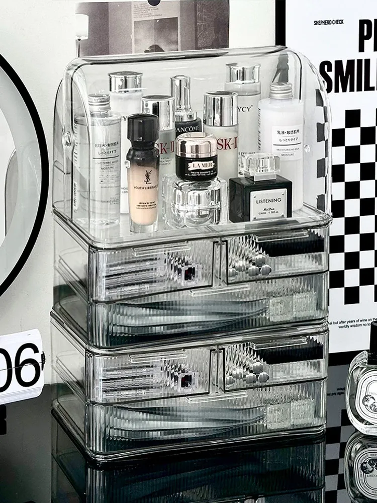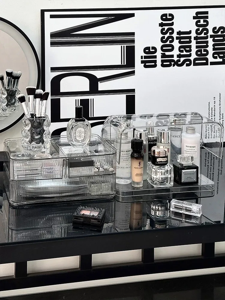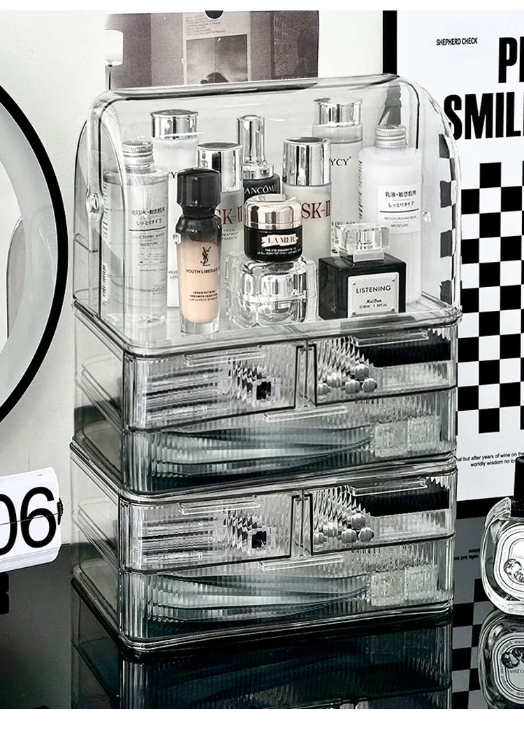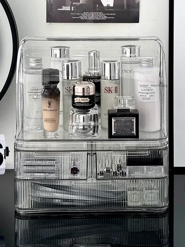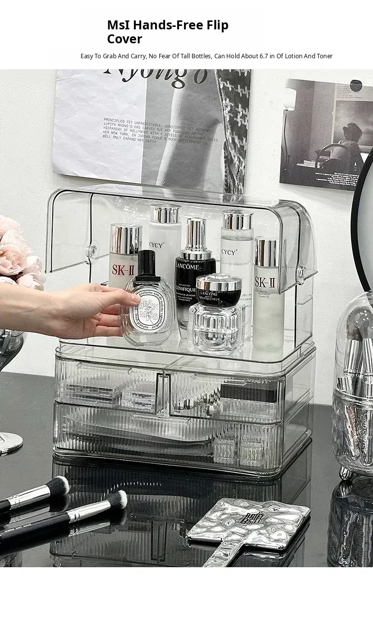 Acrylic Makeup Organizer Box - Stylish and Spacious Vanity Storage for Skincare Products - Dustproof and Elegant Design, Perfect for Your Dressing Table