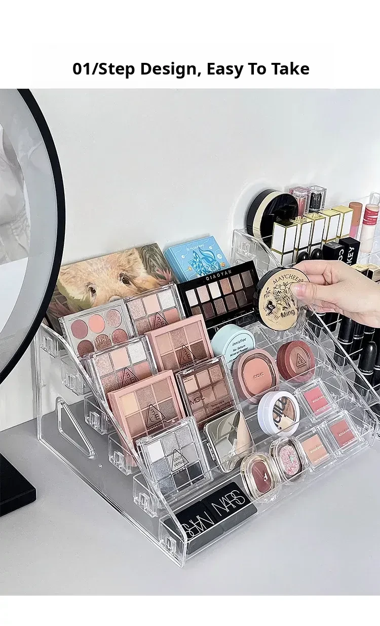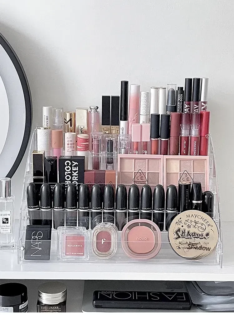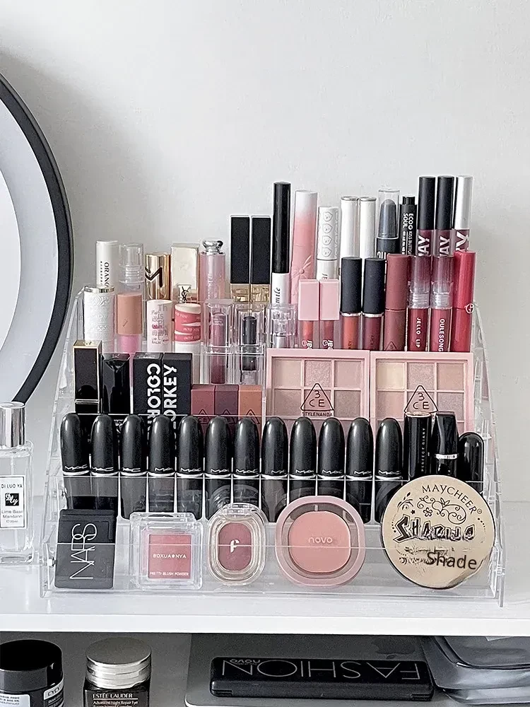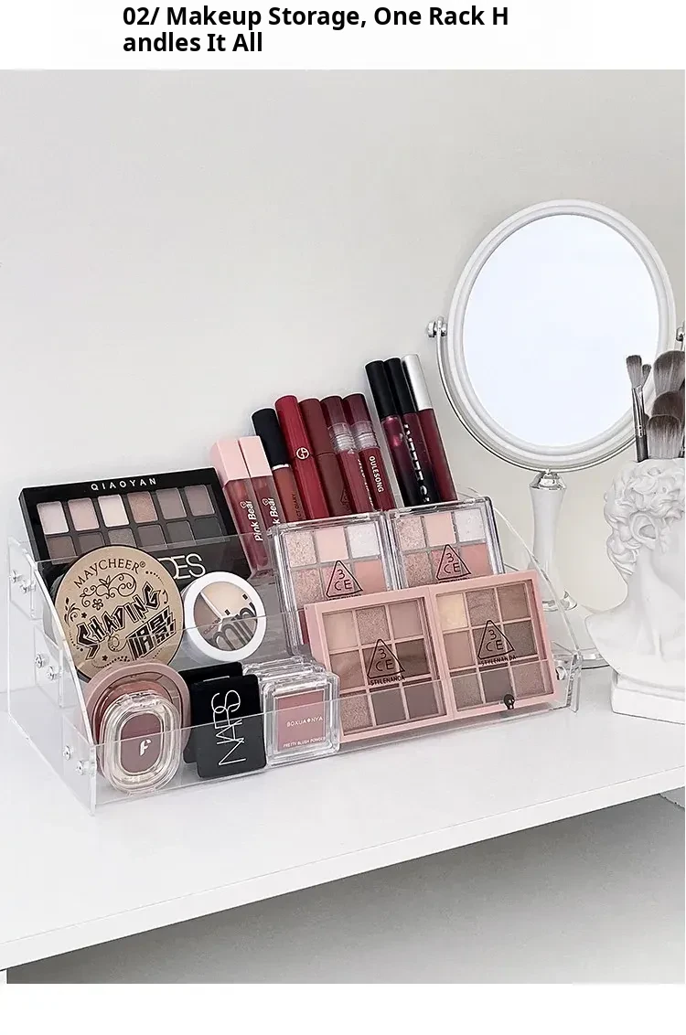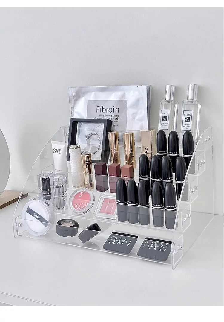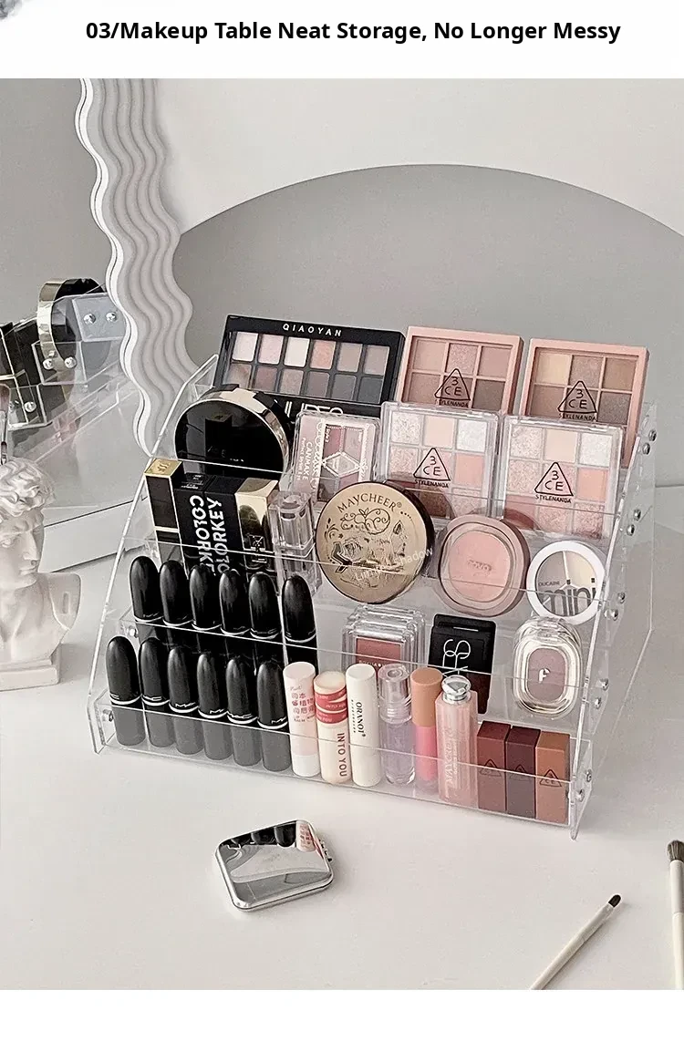 Acrylic Multi-Layer Makeup Organizer - Spacious Vanity Storage for Lipsticks, Eyeshadows, and Blushes - Perfect Display Rack for Beauty Enthusiasts