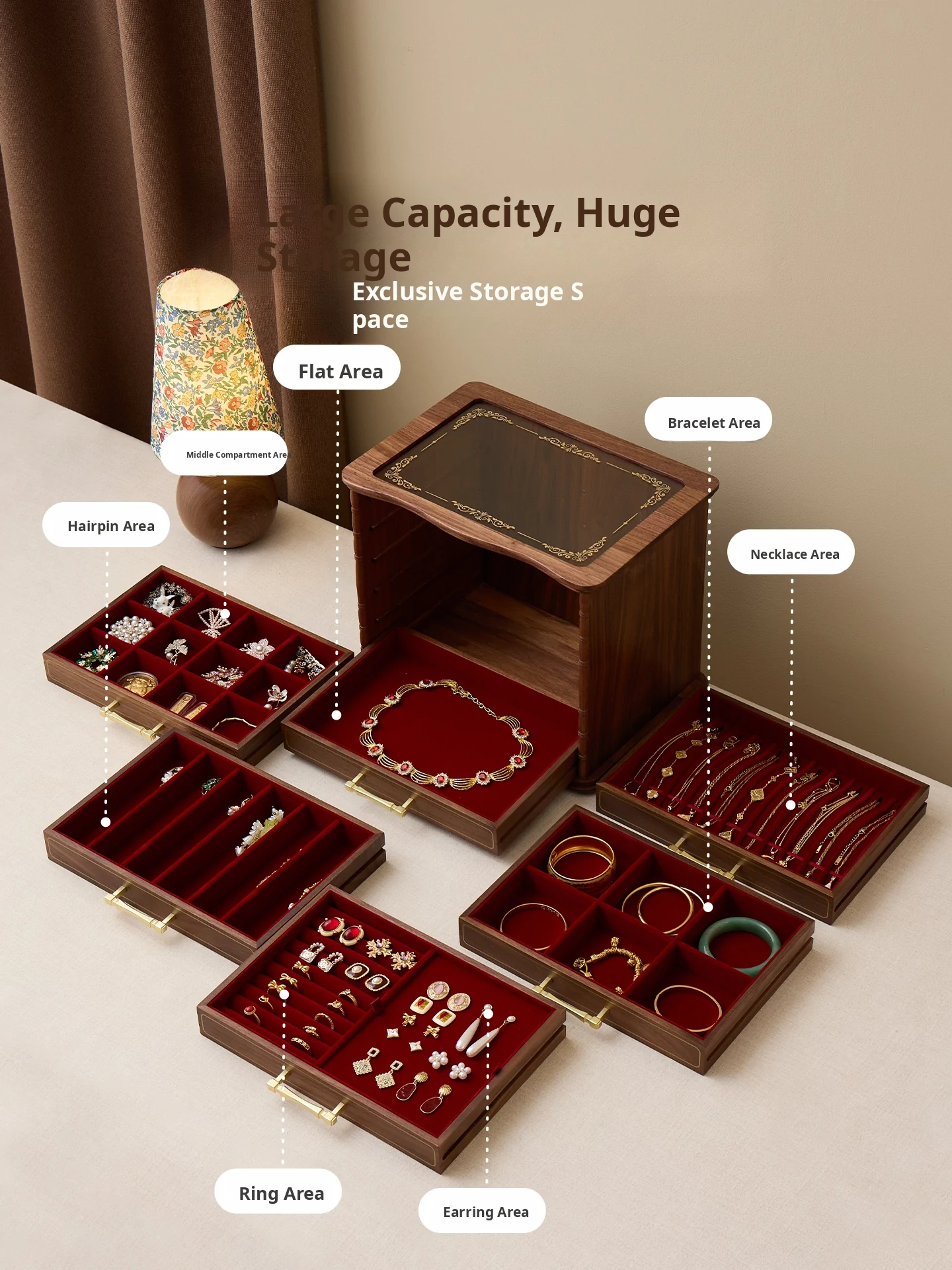 Elegant Black Walnut Jewelry Box - Regal Design for Weddings, New Year, and Valentine's Day Gifts - Premium Solid Wood Organizer for Precious Accessories
