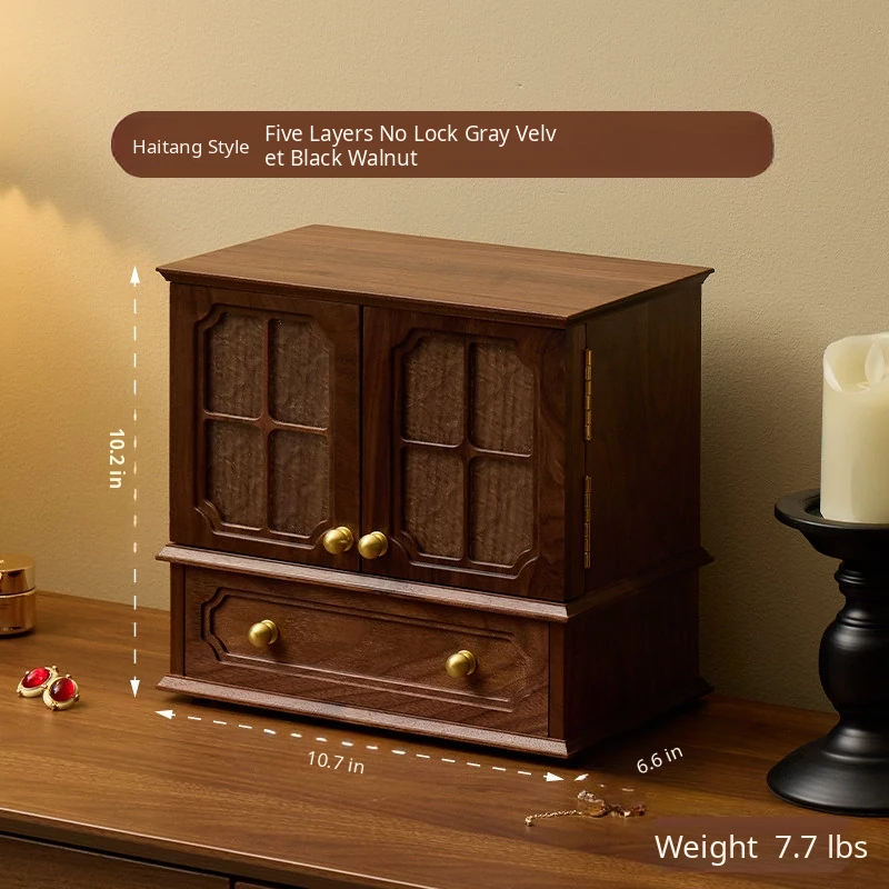 Shaohua Jewelry Box Window Grille Style North American Black Walnut [Simple Decoration]