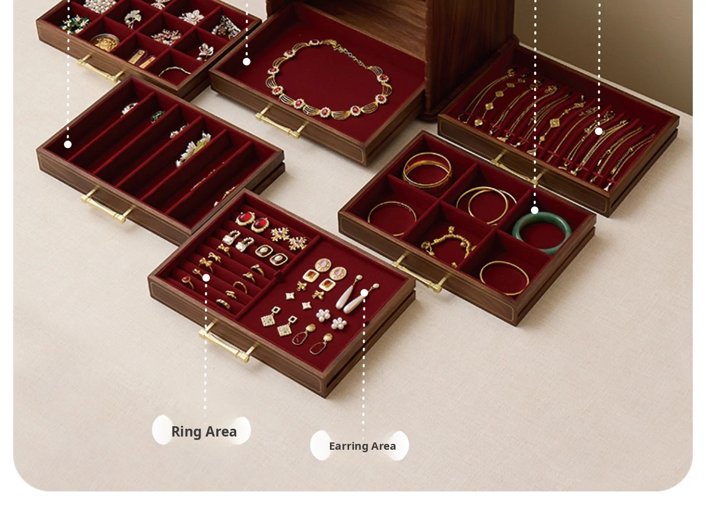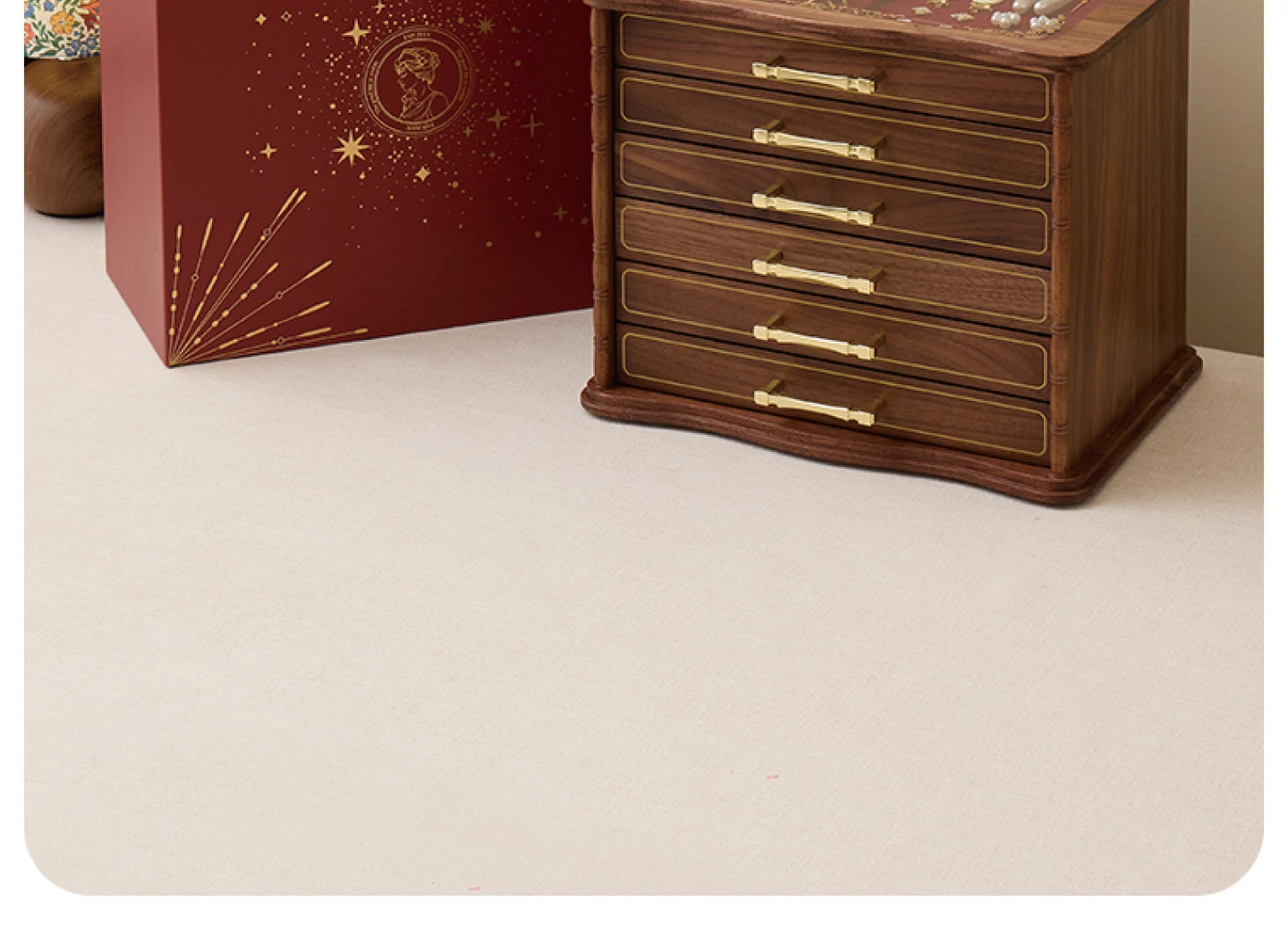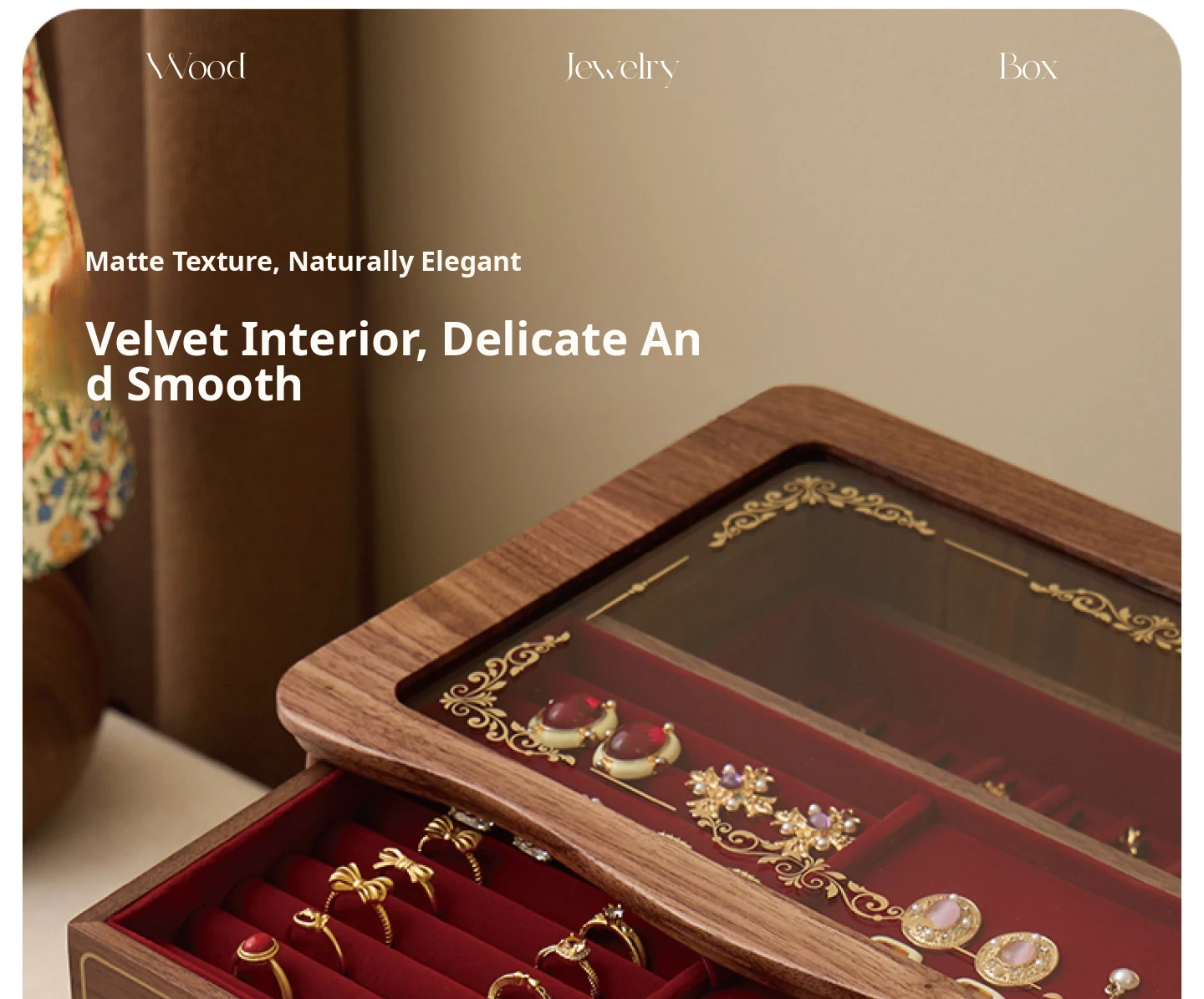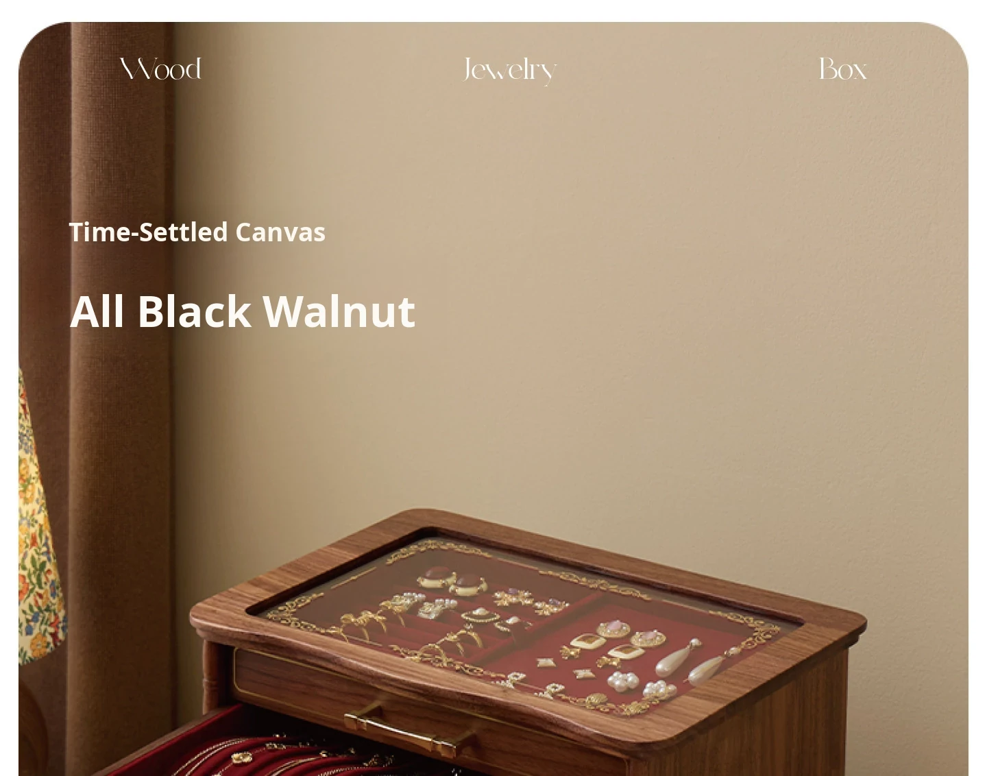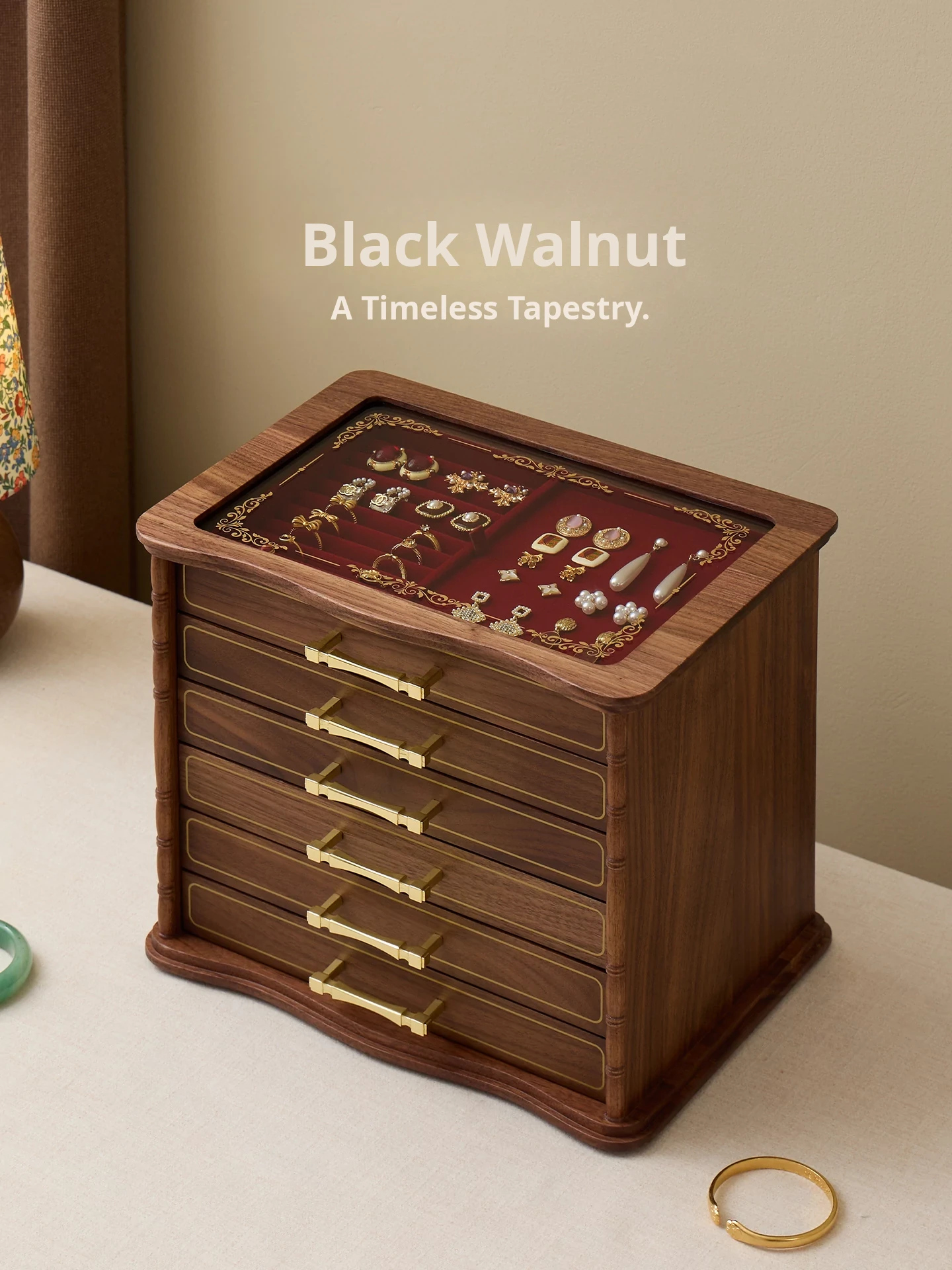 Shaohua Jewelry Box - Crabapple Design - North American Black Walnut [Minimalist Packaging]
