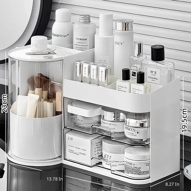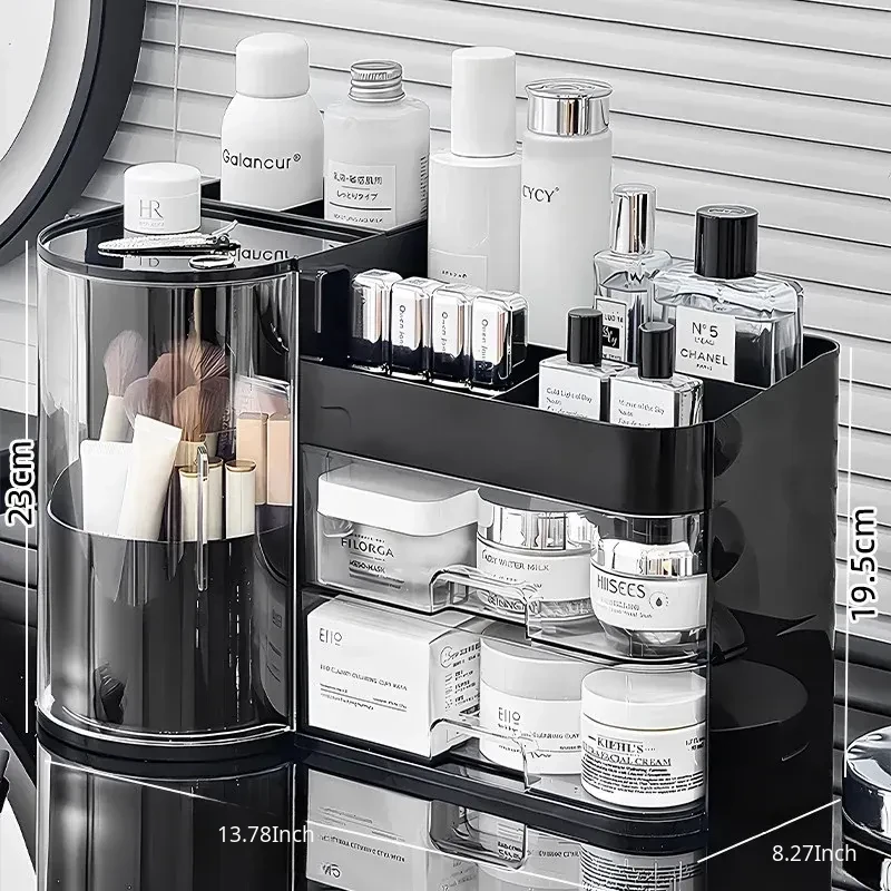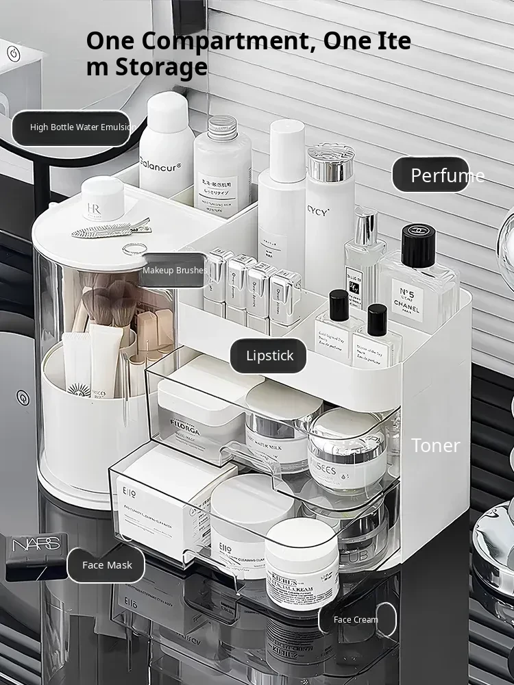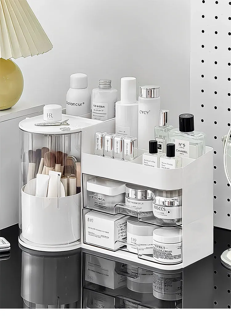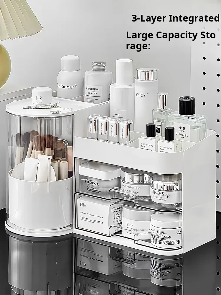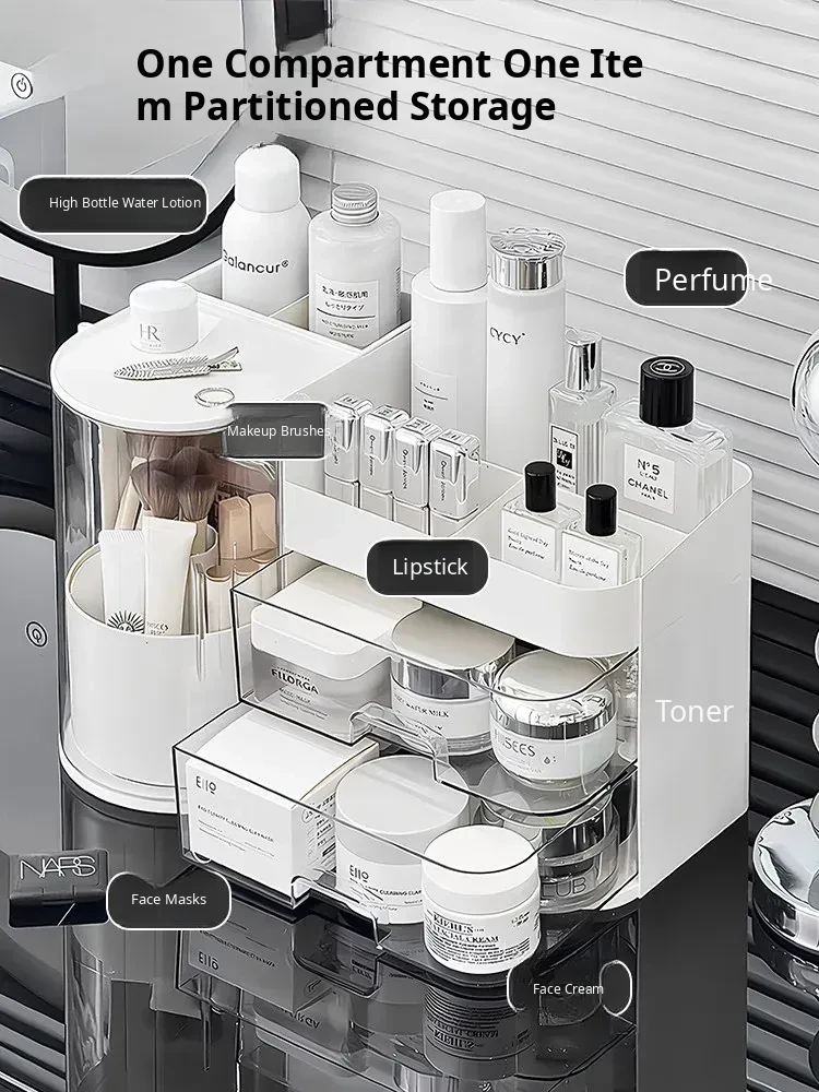 Elegant Makeup Organizer Box with Dustproof Drawers - Stylish Vanity Storage for Skincare Products and Makeup Brushes - Perfect for a Clutter-Free Makeup Station!