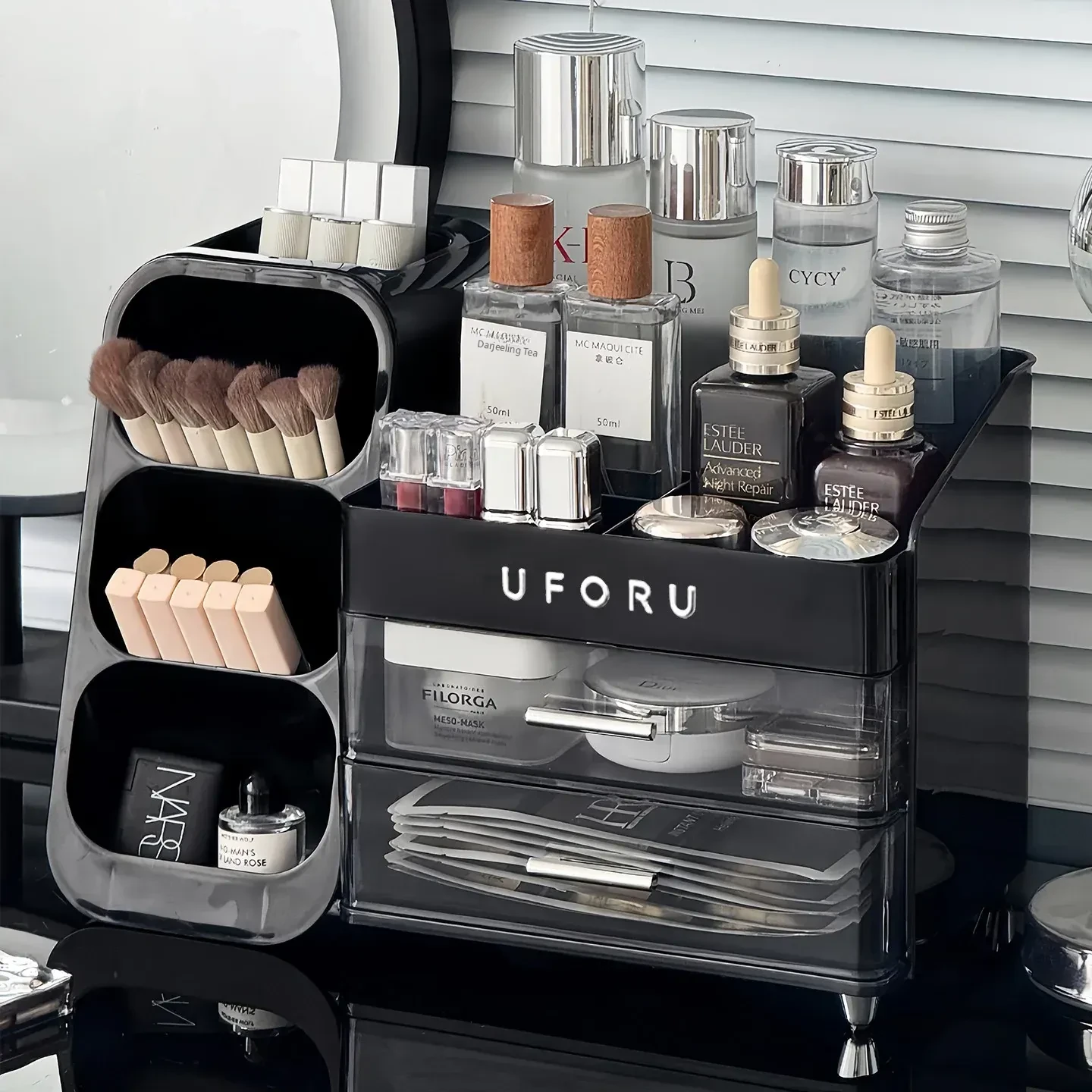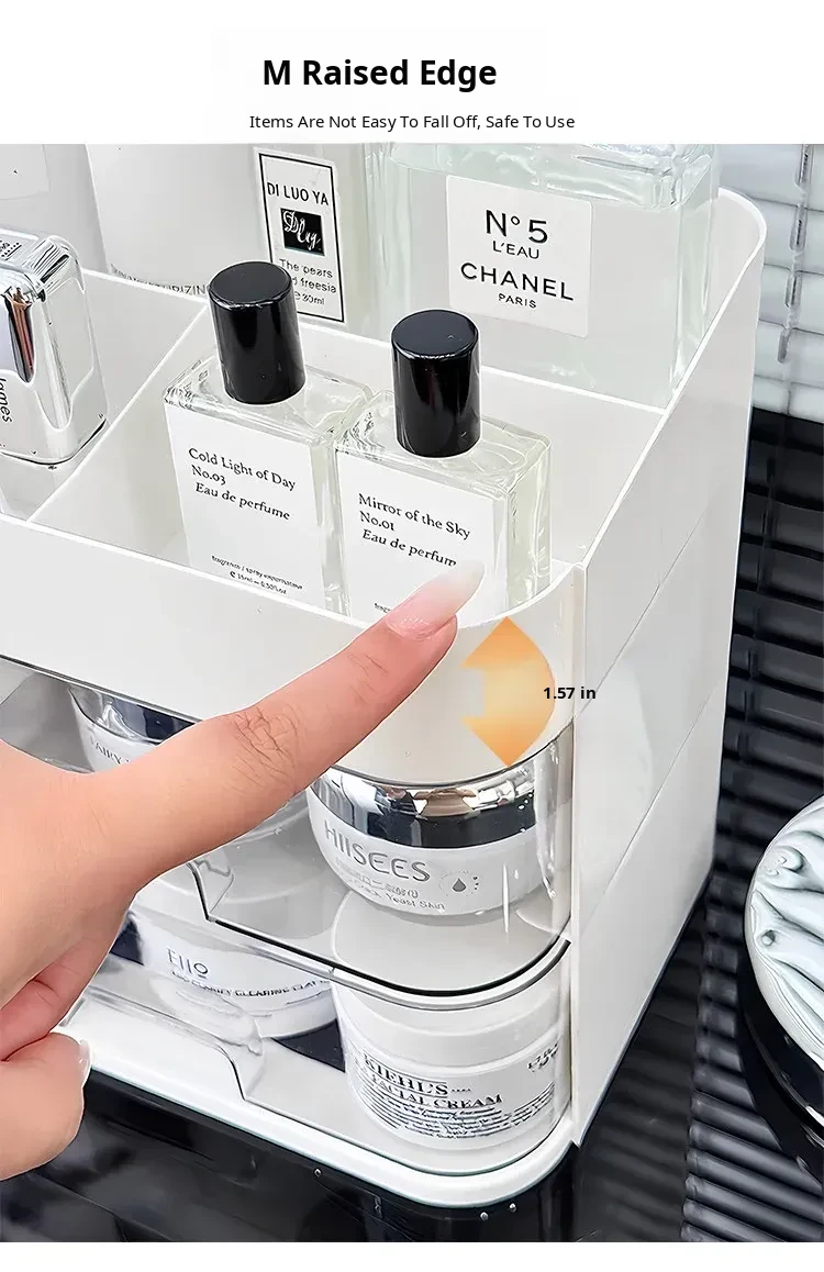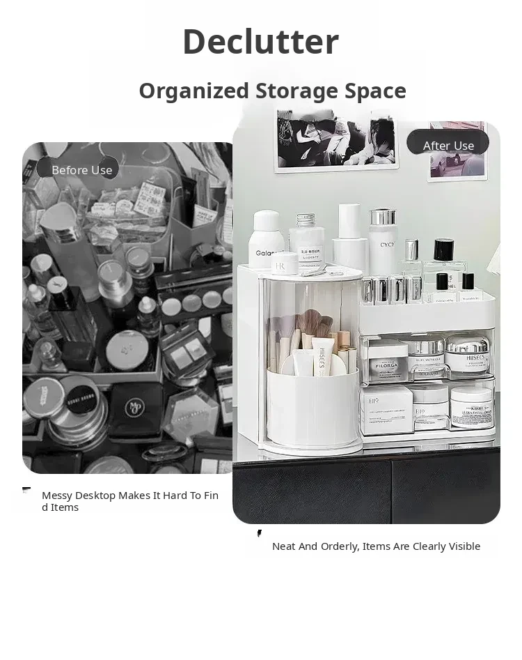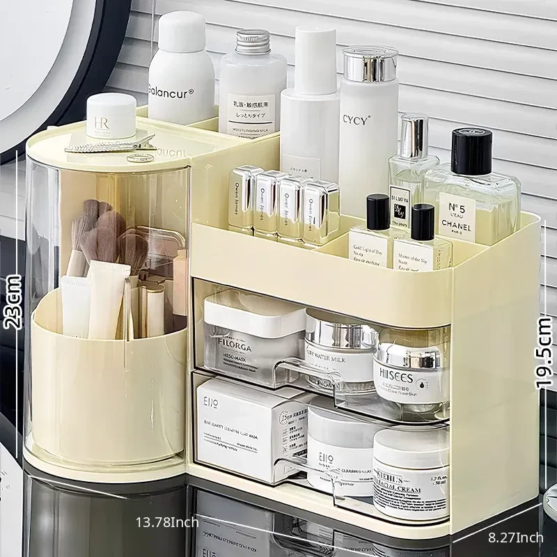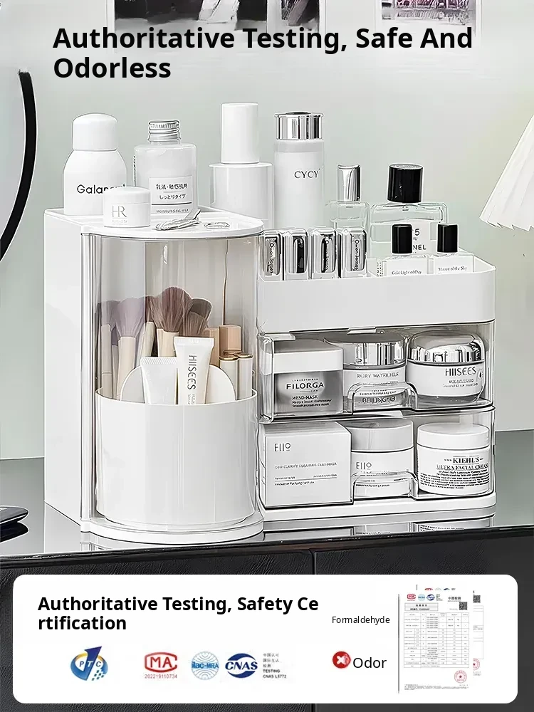 Elegant Makeup Organizer Box with Dustproof Drawers - Stylish Vanity Storage for Skincare Products and Makeup Brushes - Perfect for a Clutter-Free Makeup Station!