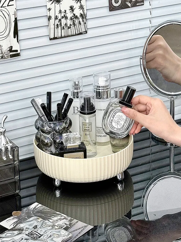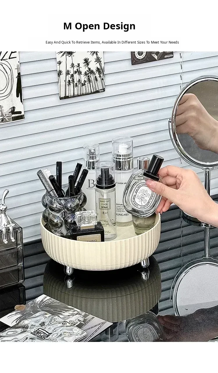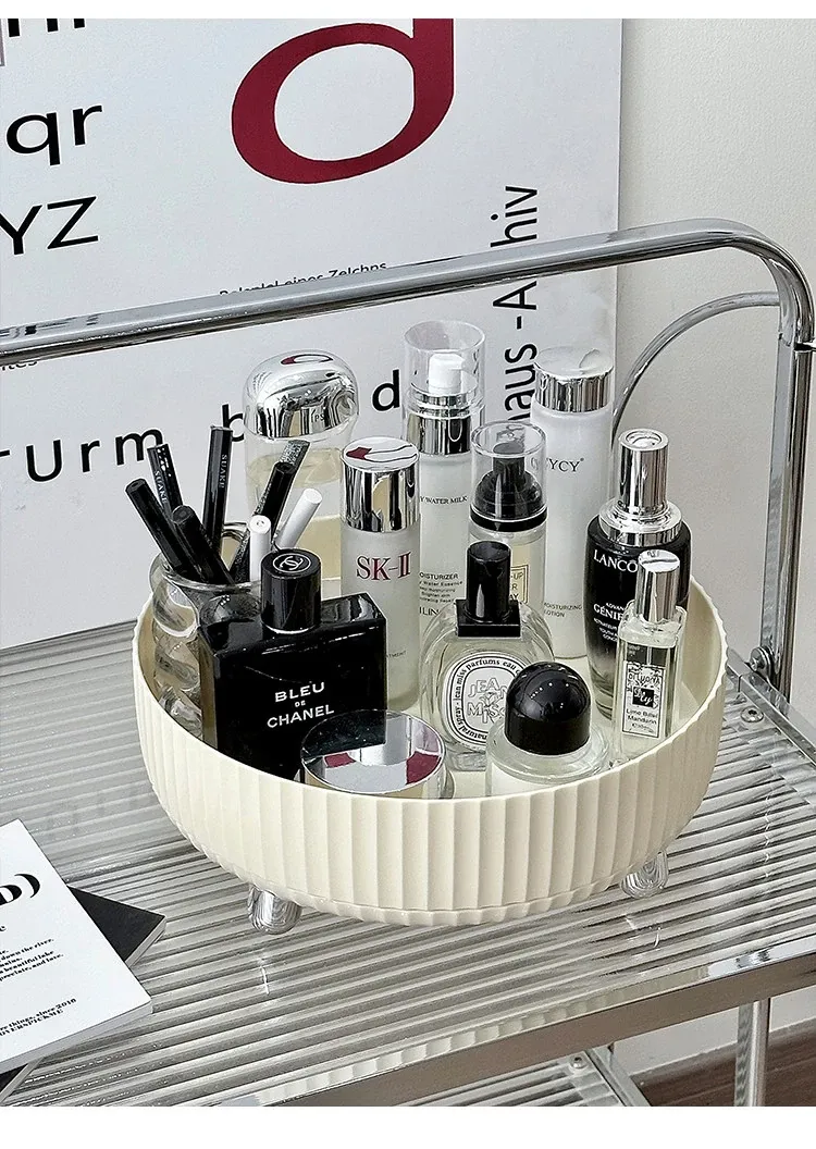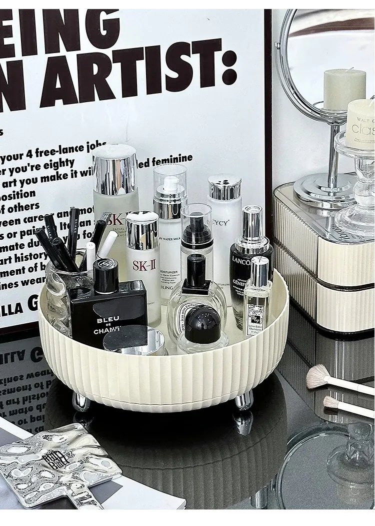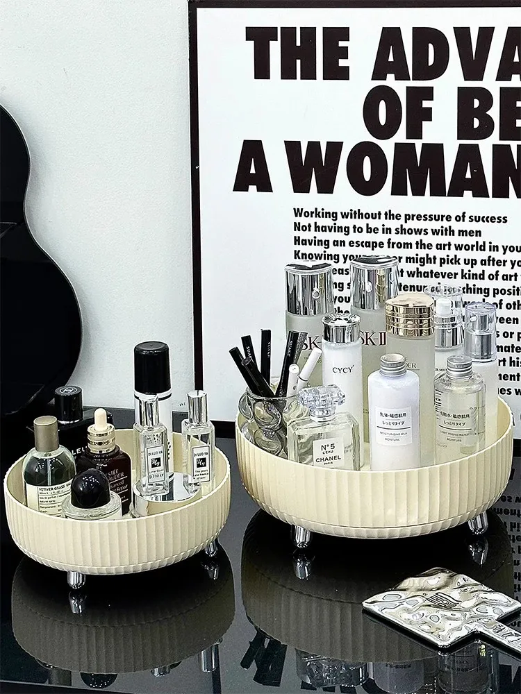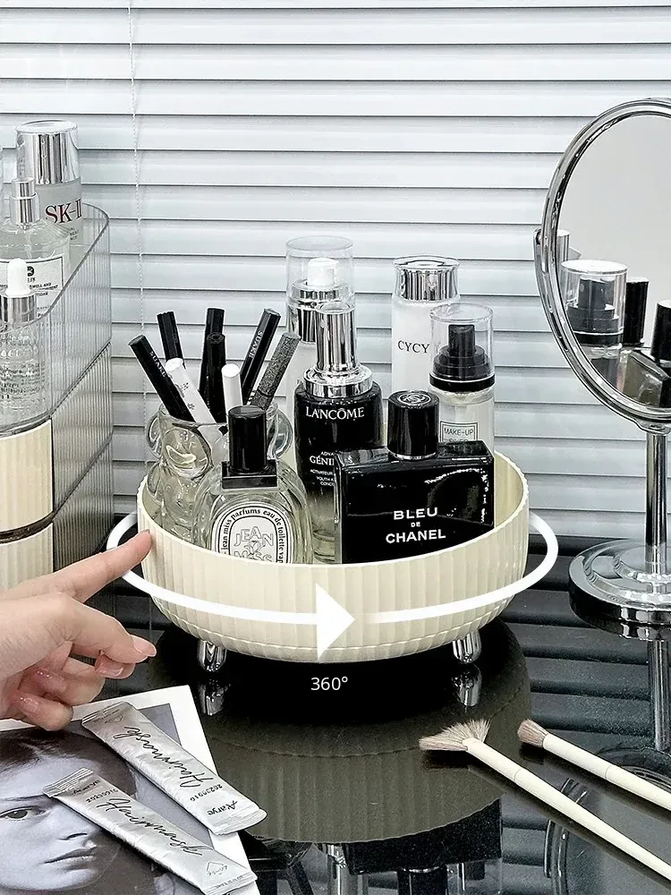 Elegant Rotating Cosmetic Organizer - Perfume Display Rack for Bedroom Vanity - Stylish Skincare Storage Box for a Clutter-Free Makeup Table