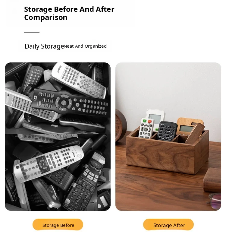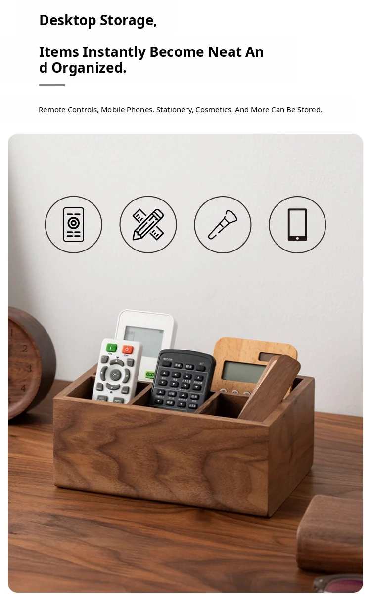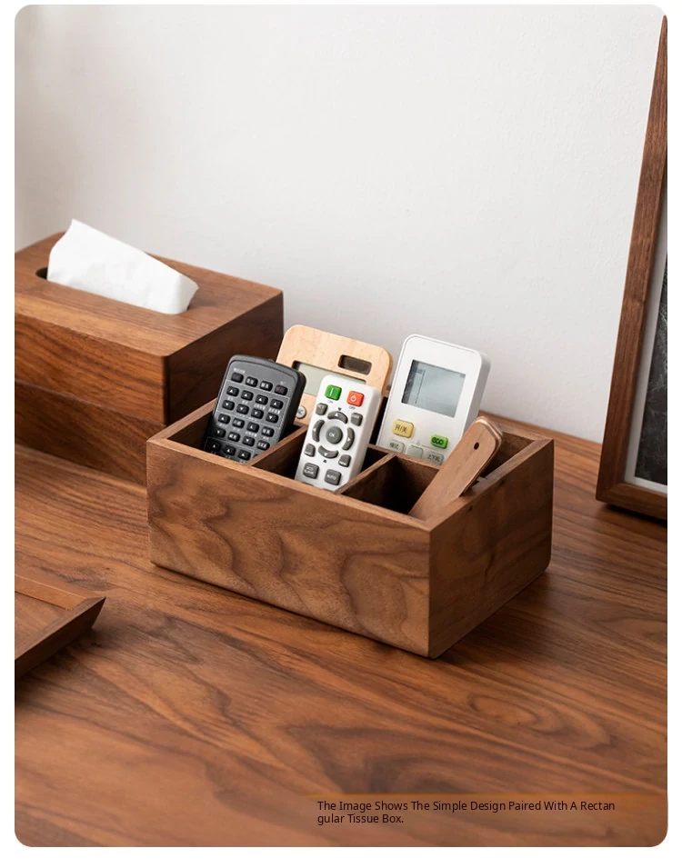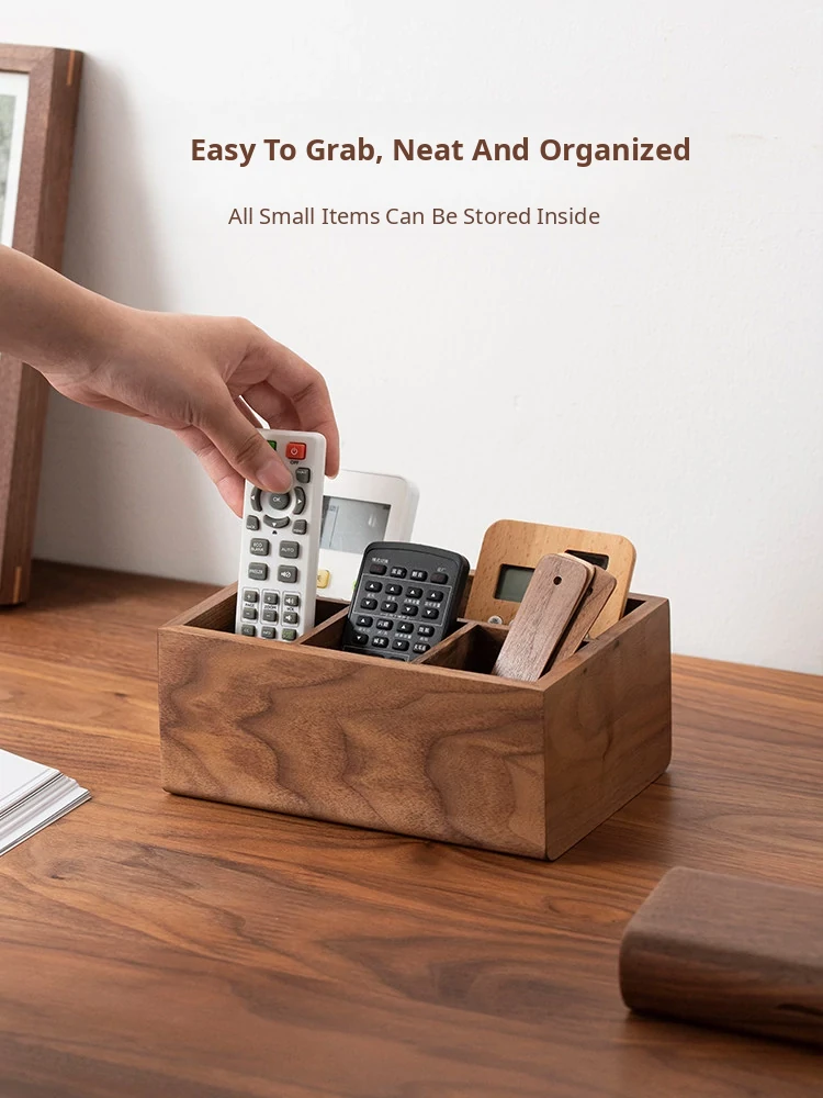 Elegant Solid Wood Remote Control Organizer - Stylish Storage Box for Living Room Coffee Table, TV, Air Conditioner Remotes, and Bedside Essentials. Perfect for Decluttering Your Space!