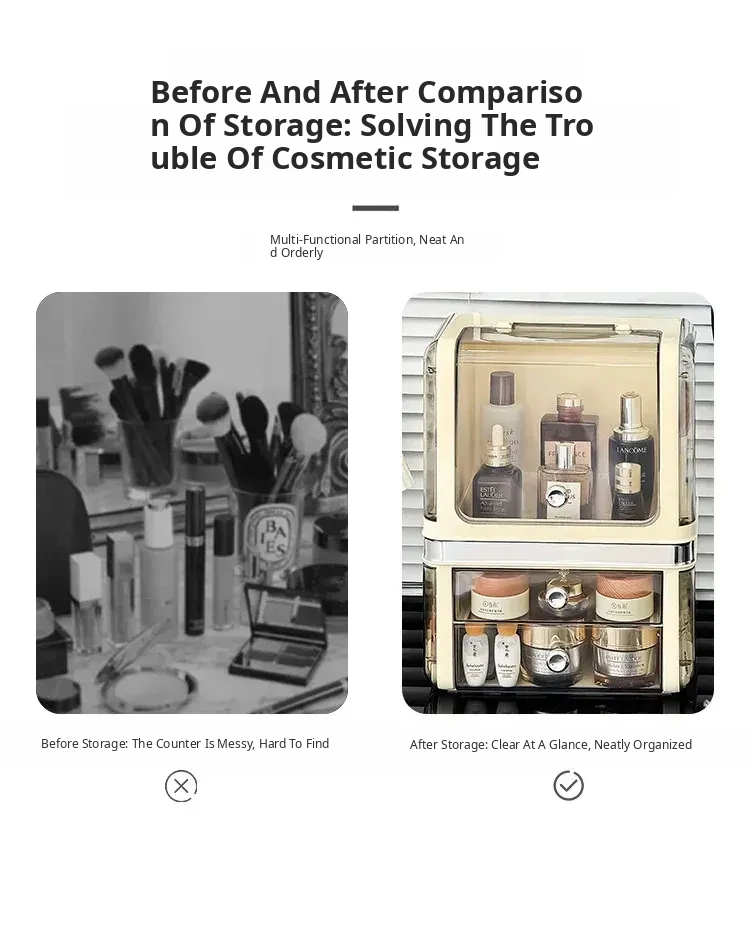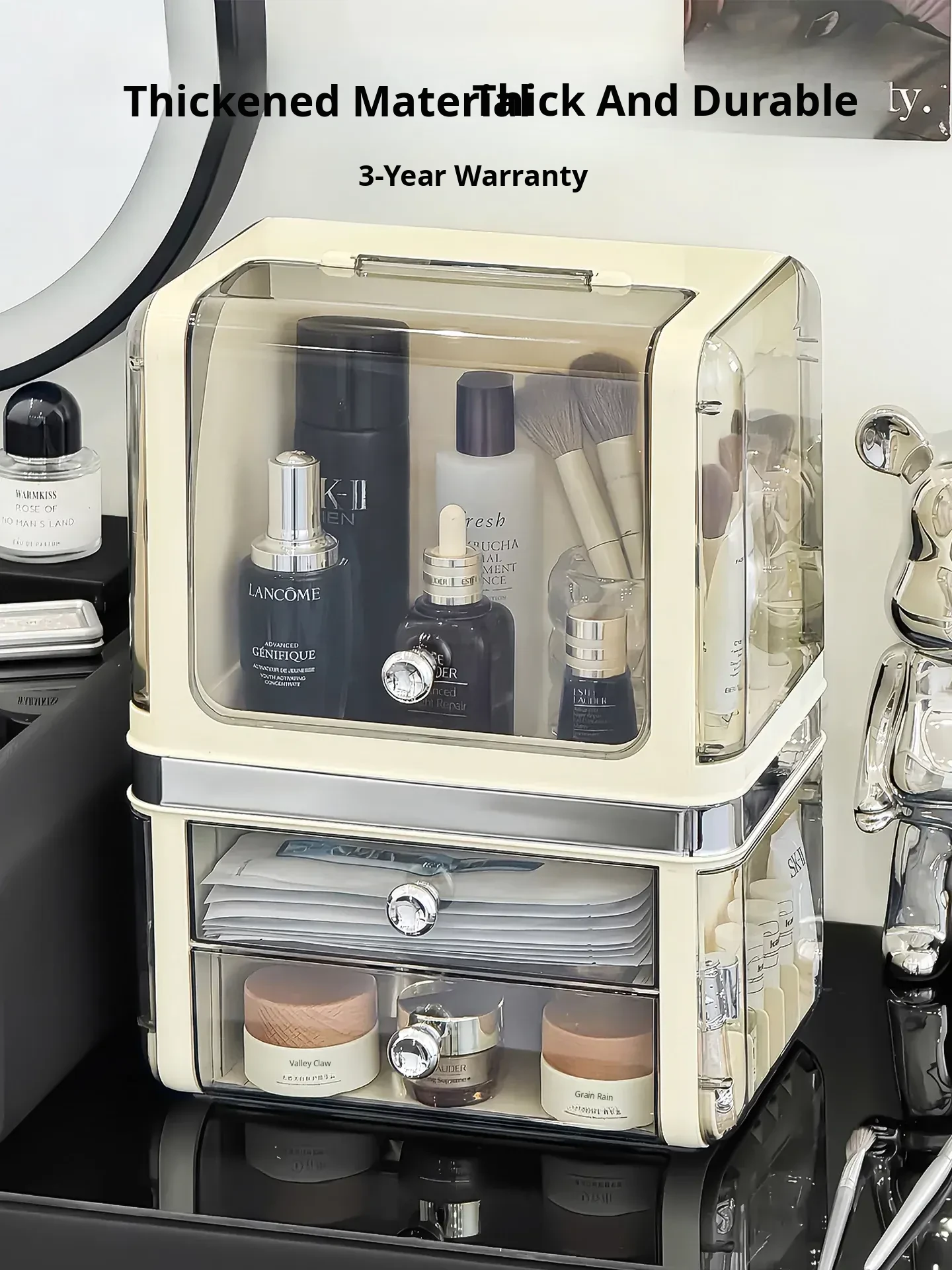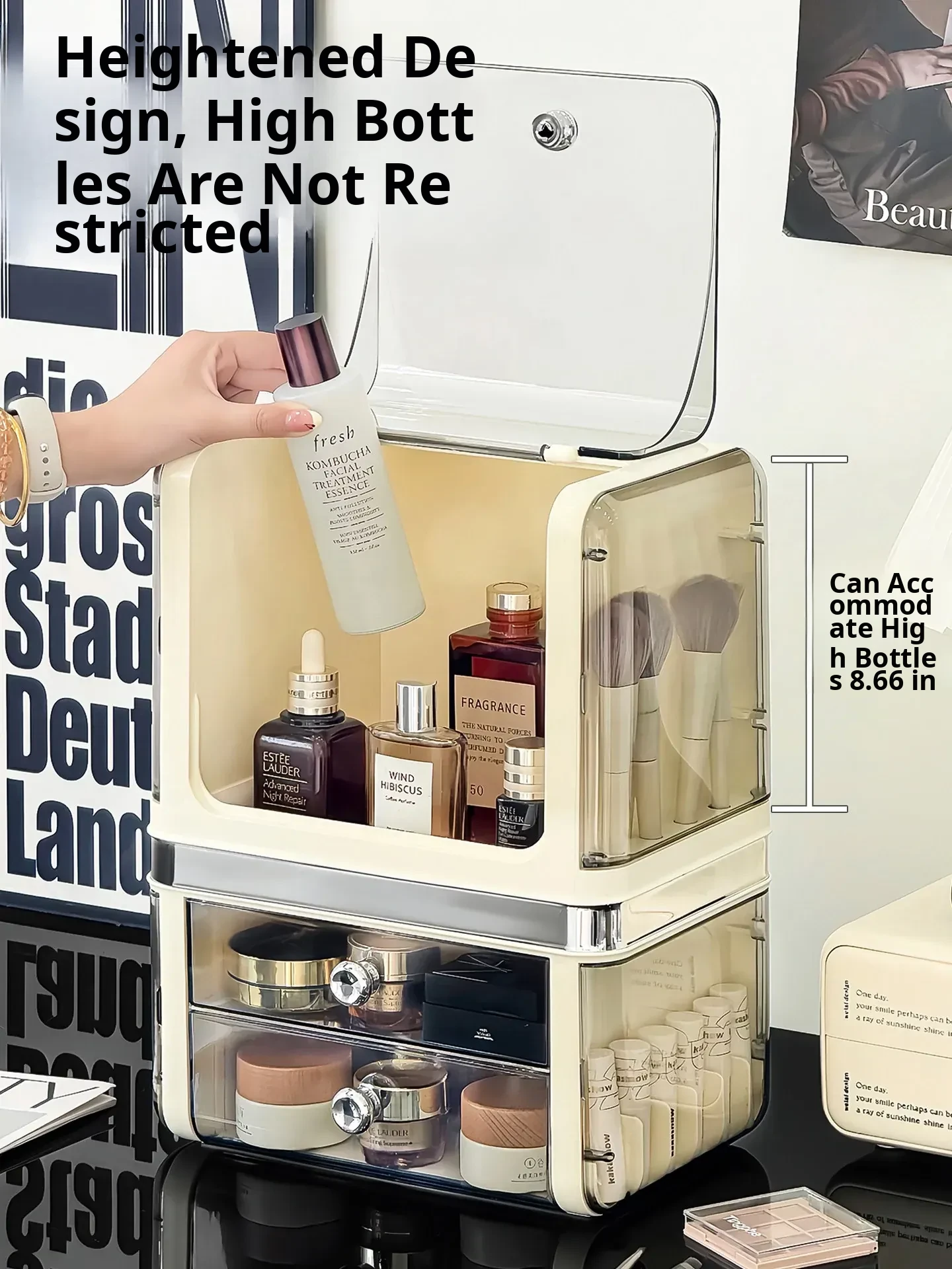 Elegant Transparent Makeup Organizer Box with Lid - Stylish Brush Holder and Drawer Storage for Your Vanity - Perfect for Keeping Your Cosmetics Neat and Accessible