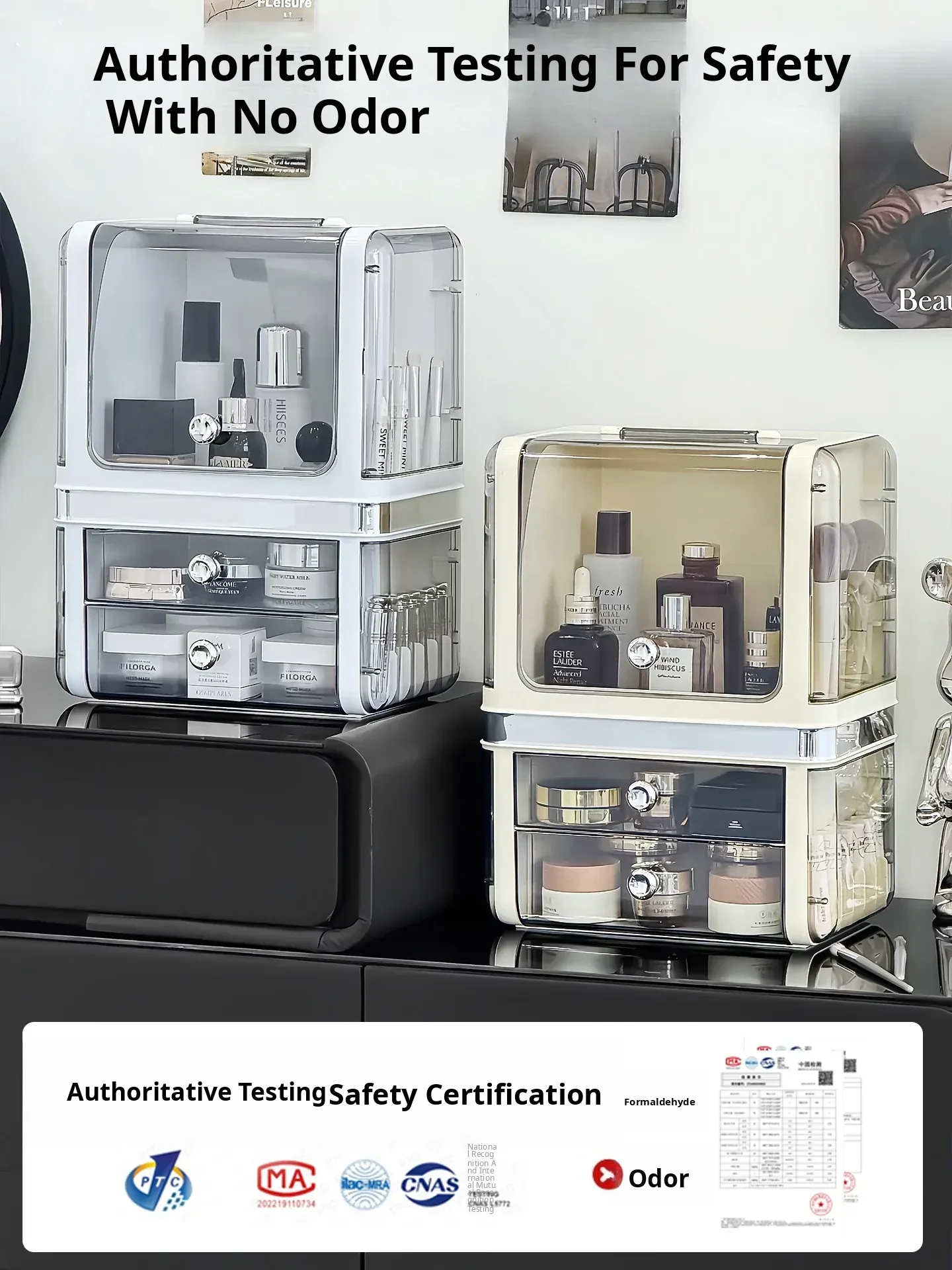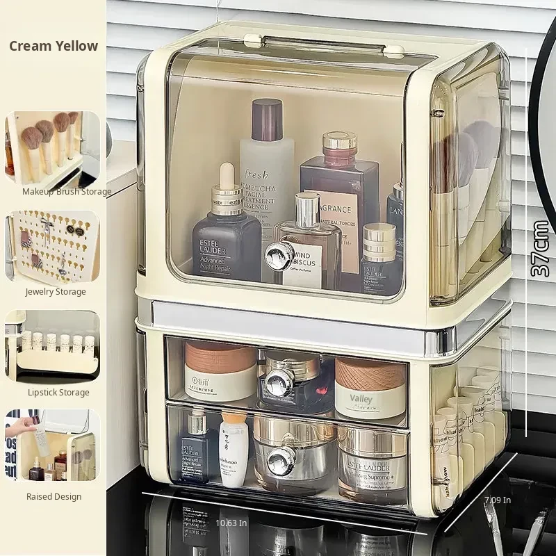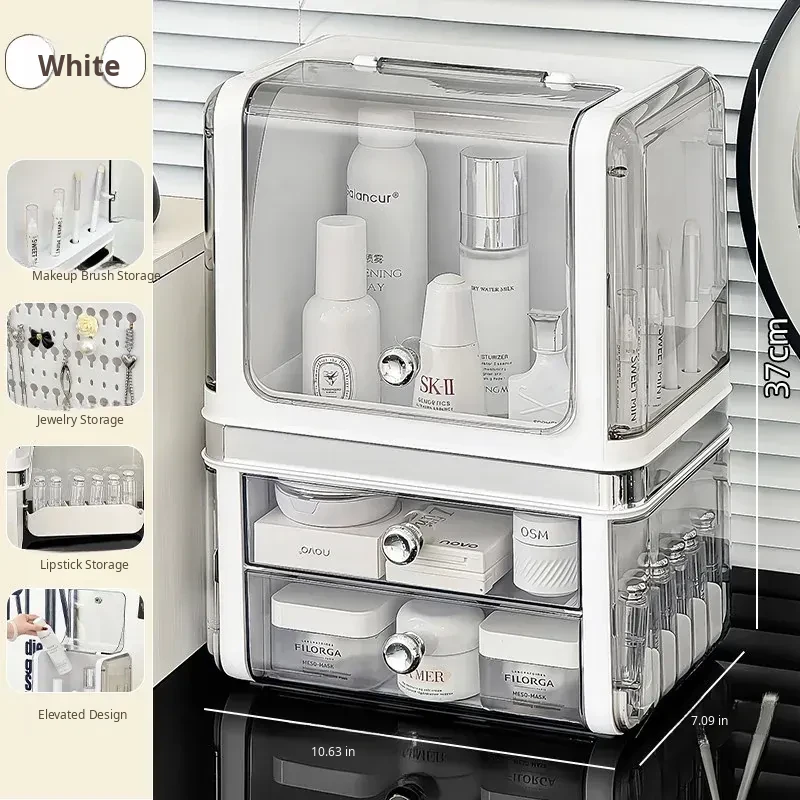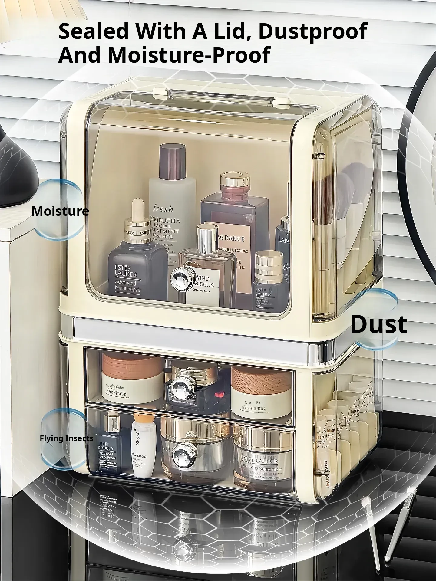 Elegant Transparent Makeup Organizer Box with Lid - Stylish Brush Holder and Drawer Storage for Your Vanity - Perfect for Keeping Your Cosmetics Neat and Accessible