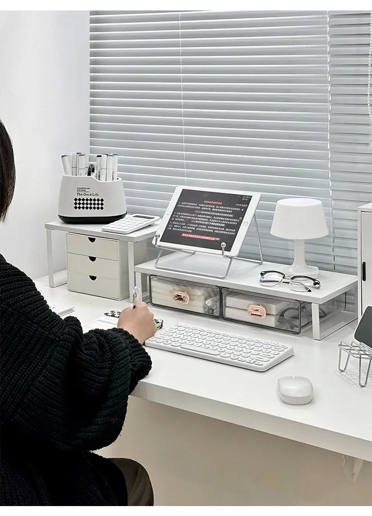 Laptop Stand Riser - Adjustable Monitor Elevation for Office Desk, Desktop Organizer for Stationery and Books, Perfect for a Tidy Workspace
