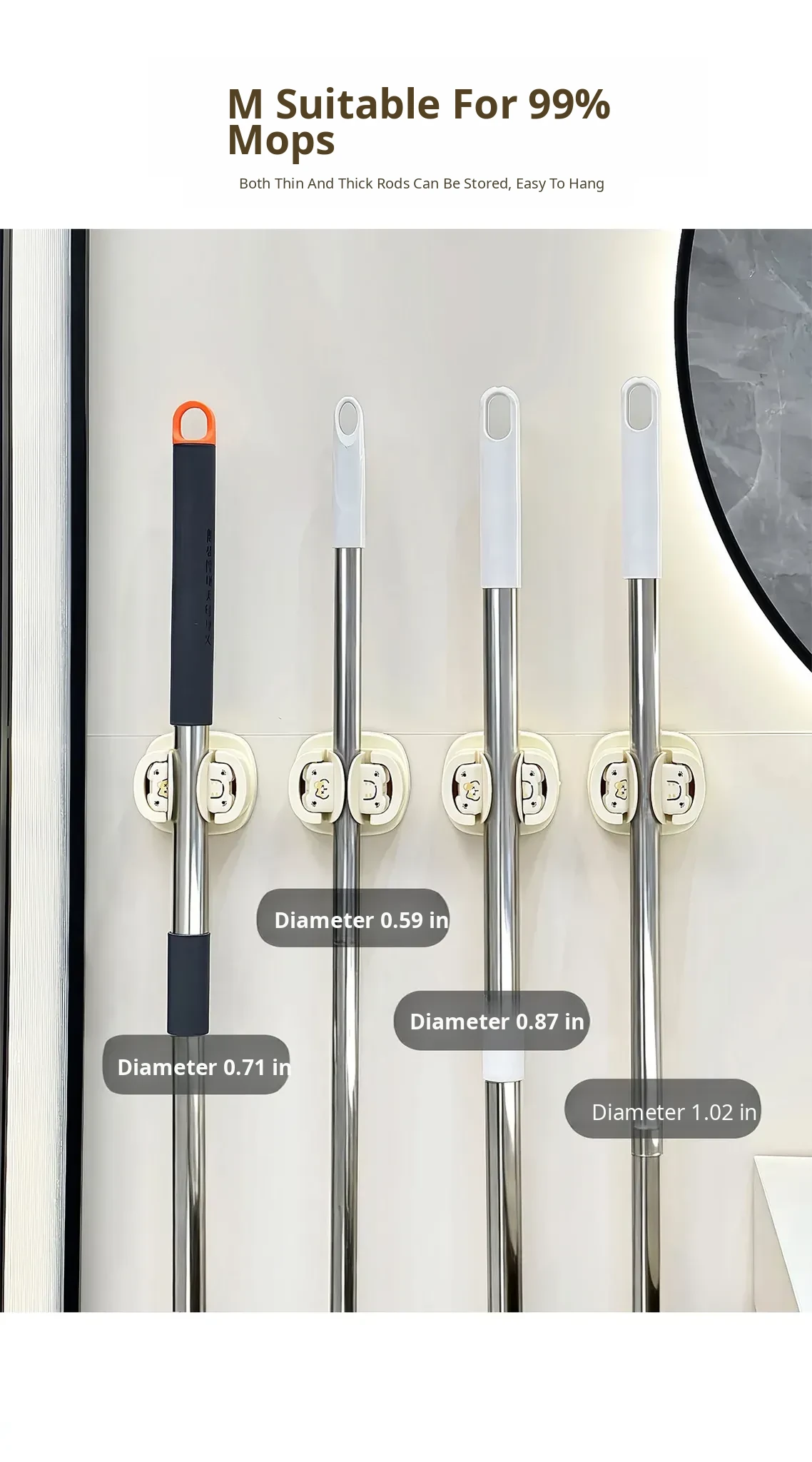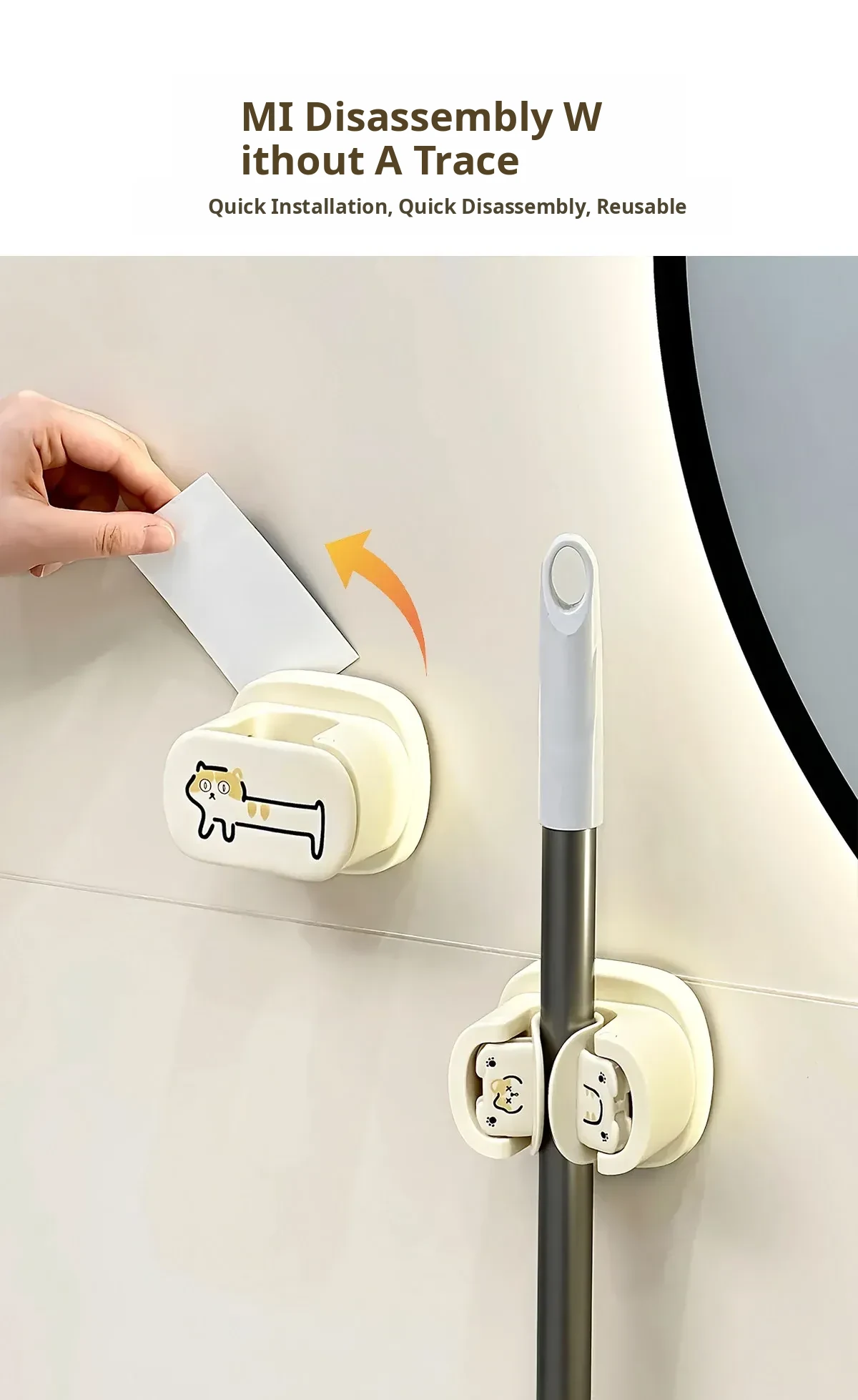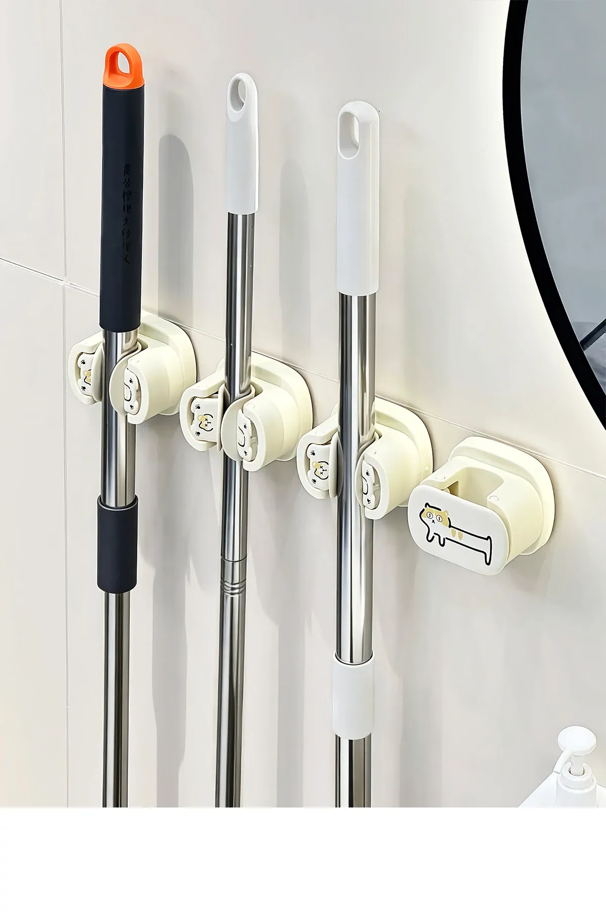 No-Drill Mop Wall Mount Holder - Suction Cup Hook for Bathroom - Strong Adhesive Broom Organizer - Space-Saving Cleaning Tool with Heavy-Duty Support