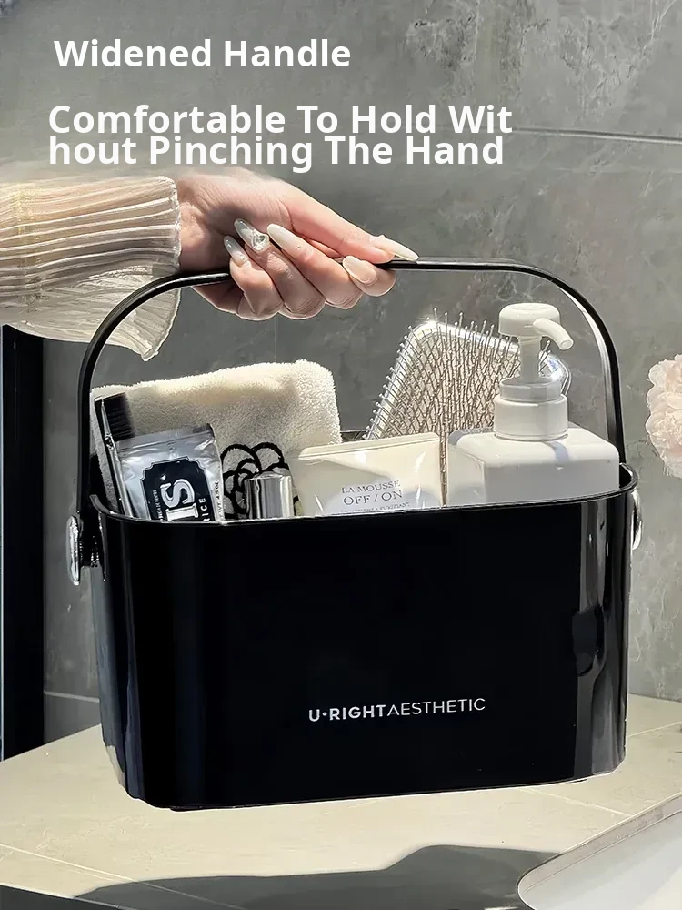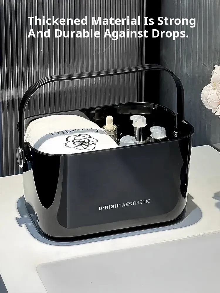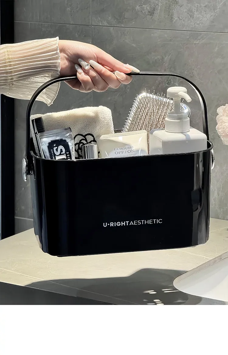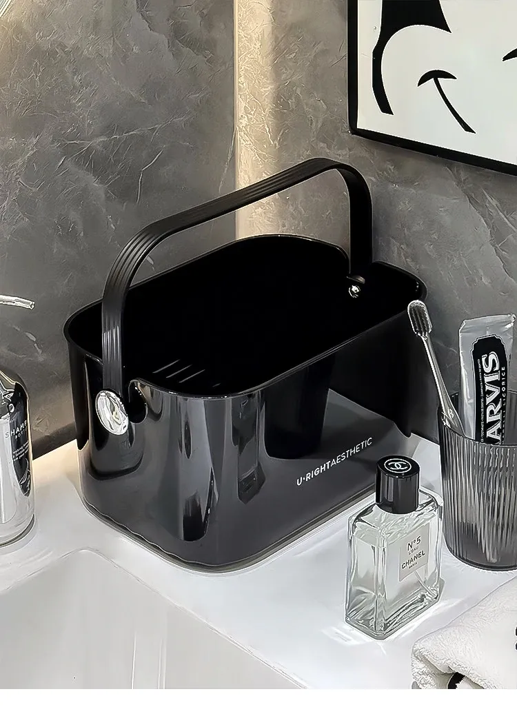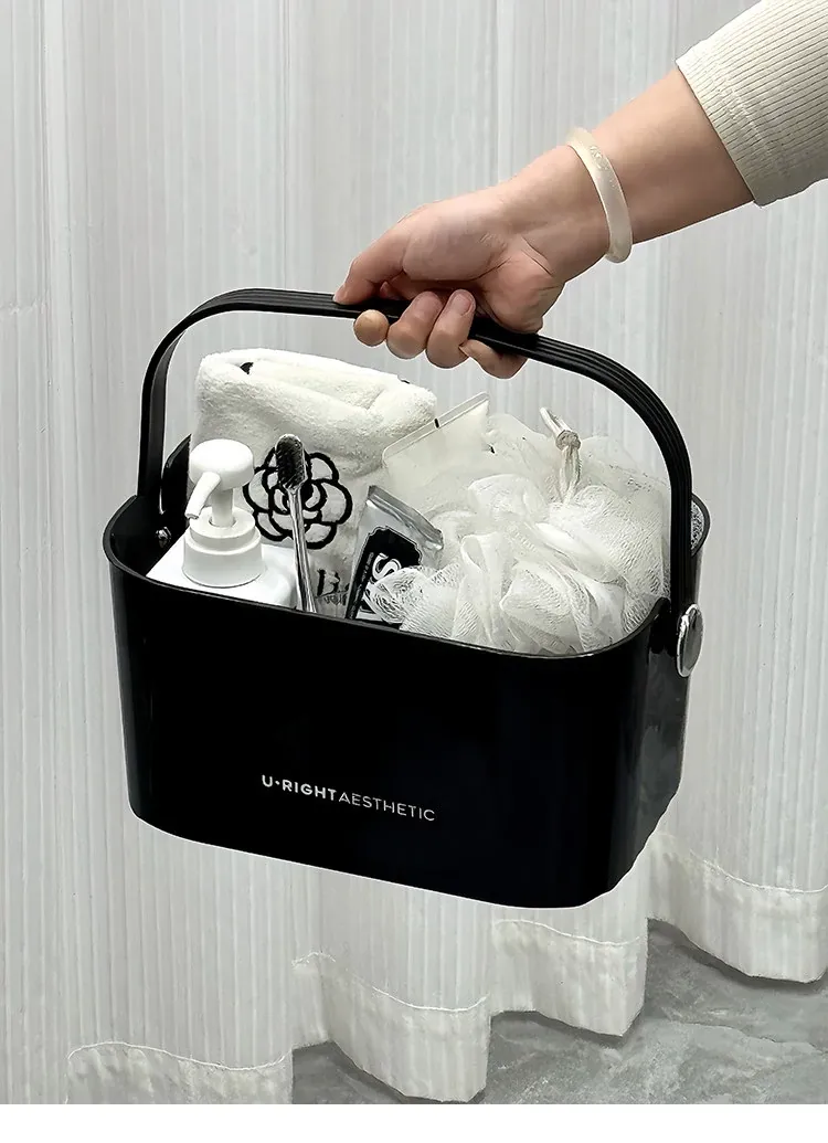 Portable Shower Caddy for Dorms - Stylish Plastic Storage Basket with Lid for Toiletries and Bath Essentials, Draining Design, Perfect for Home and Students
