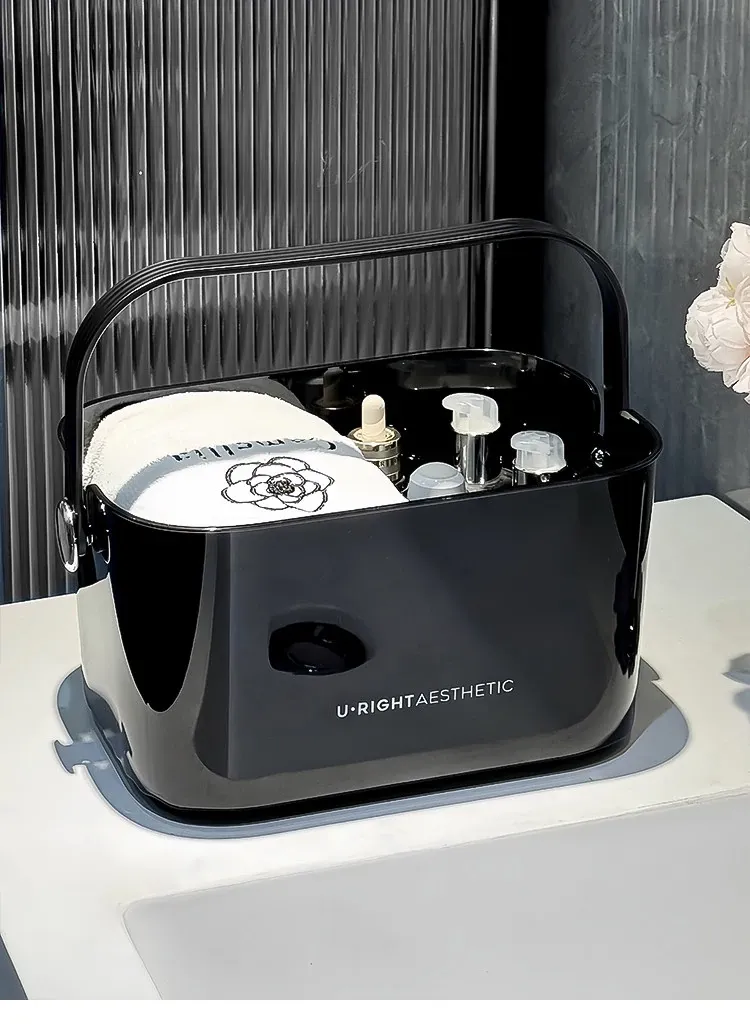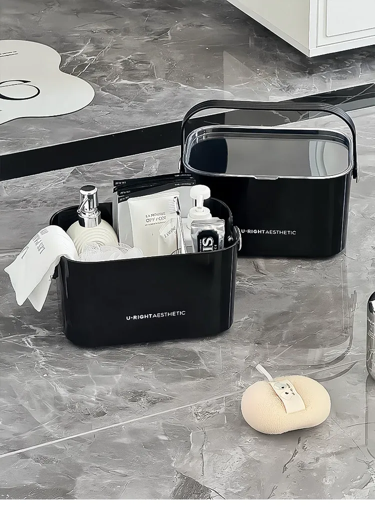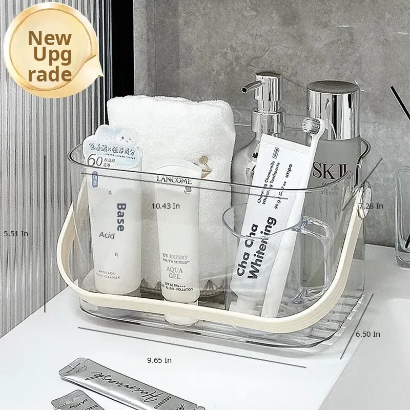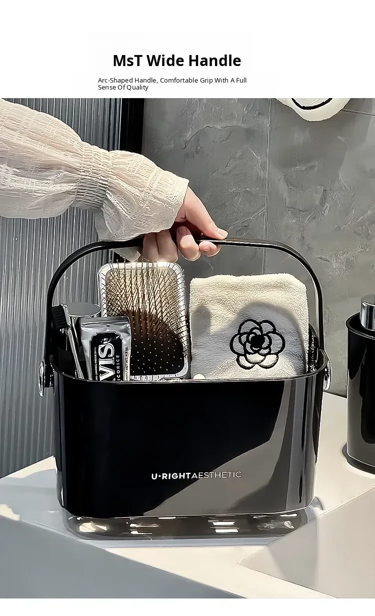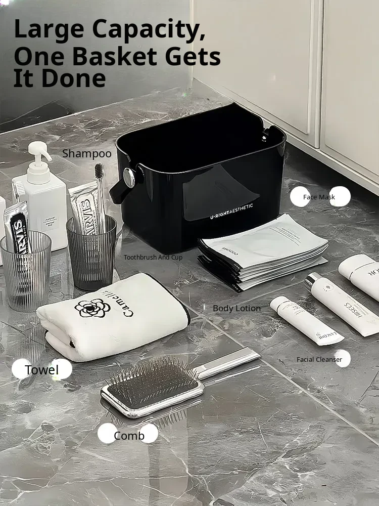 Portable Shower Caddy for Dorms - Stylish Plastic Storage Basket with Lid for Toiletries and Bath Essentials, Draining Design, Perfect for Home and Students
