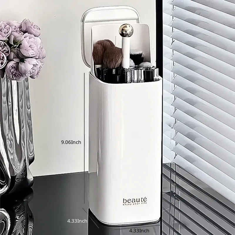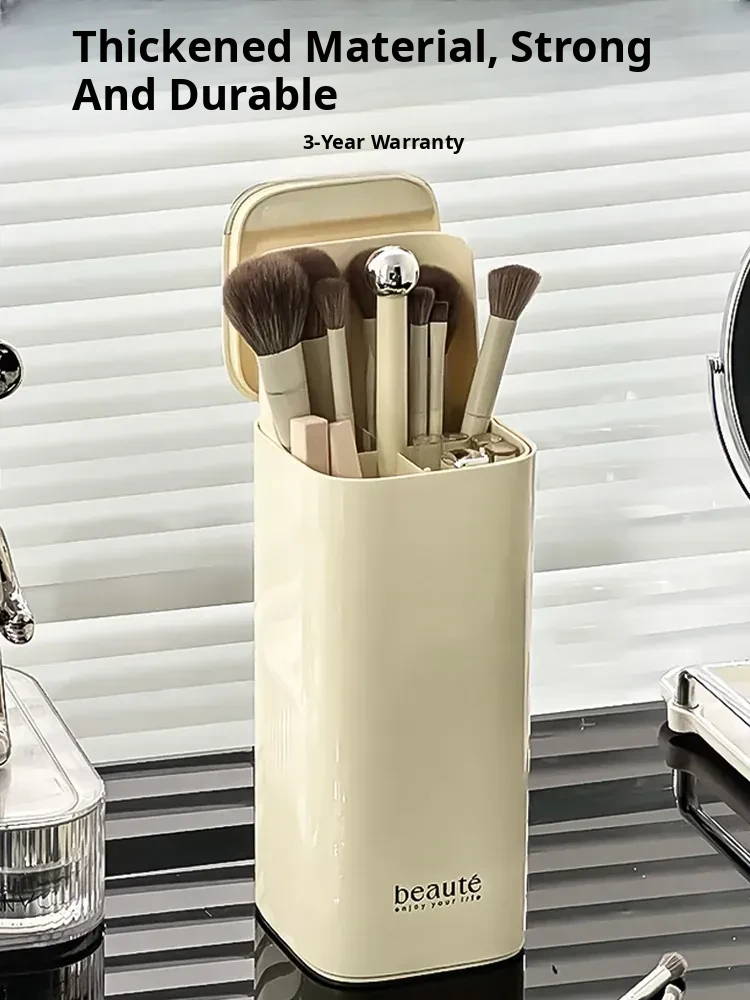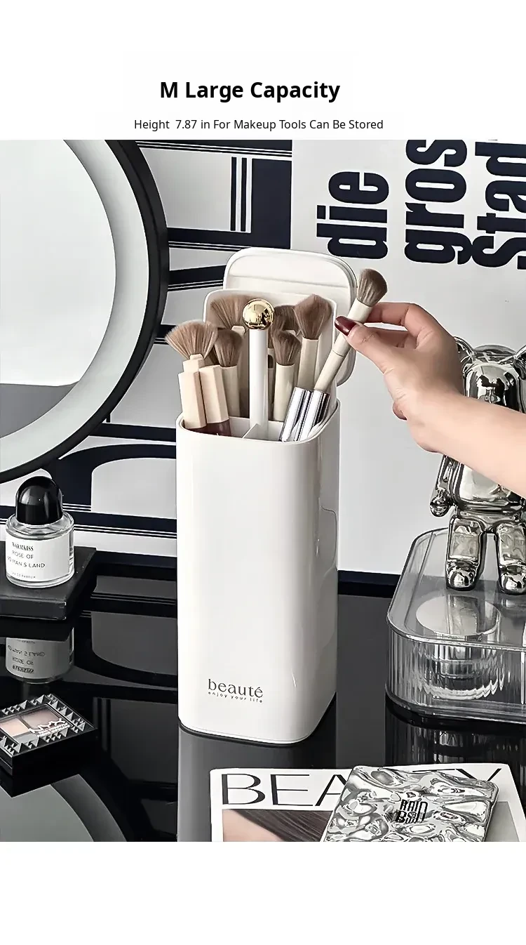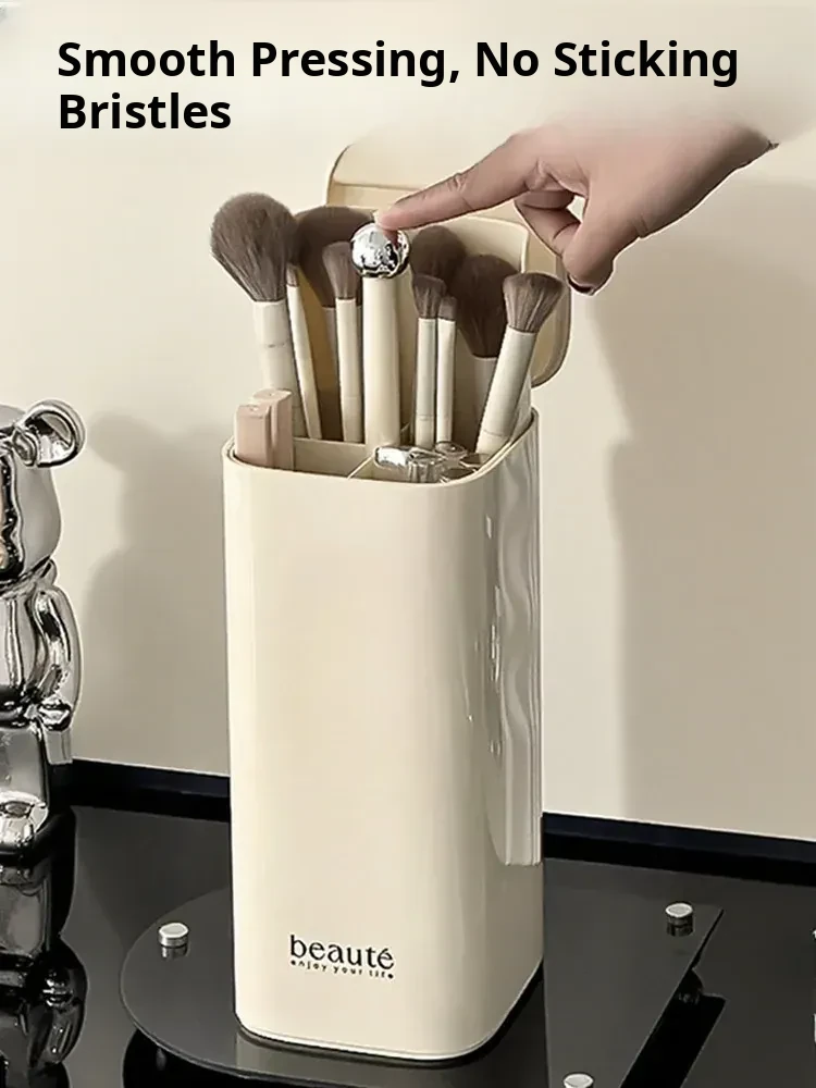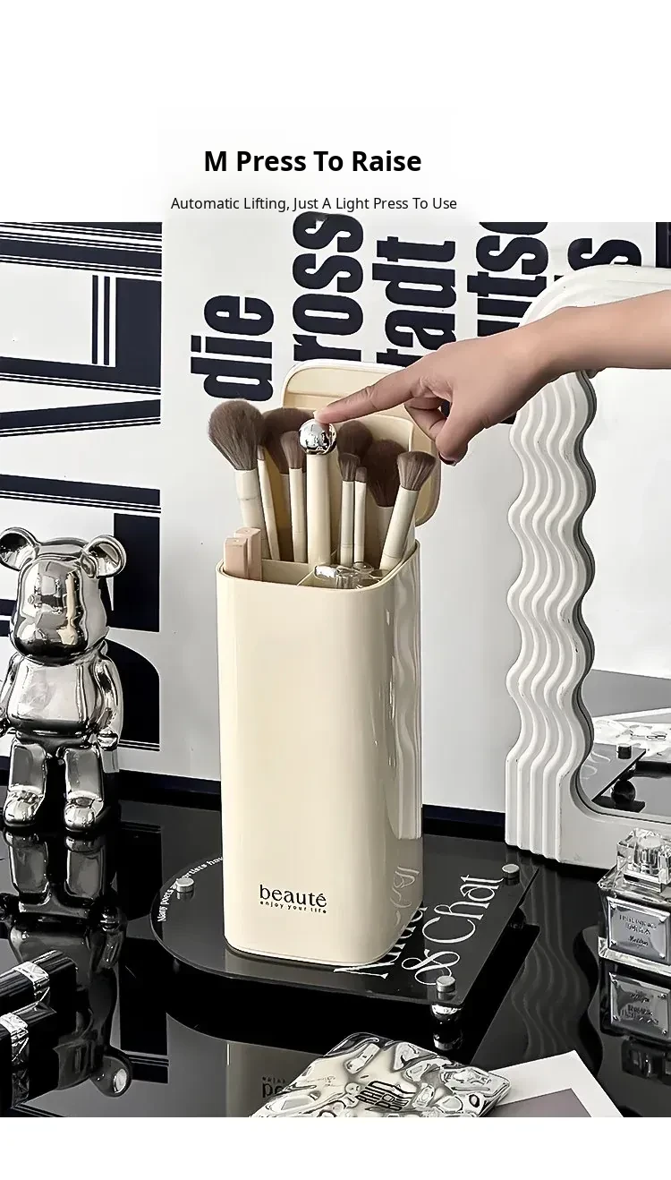 Premium Makeup Brush Organizer with Dust-Proof Design - Automatic Lifting Storage Cylinder for Brushes and Cosmetics, Perfect for a Stylish Desktop Setup
