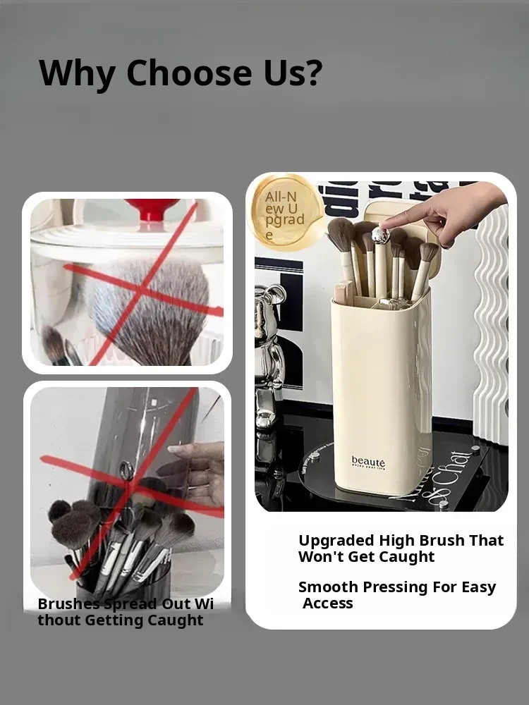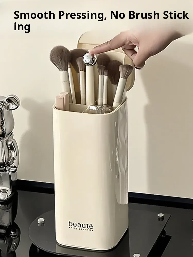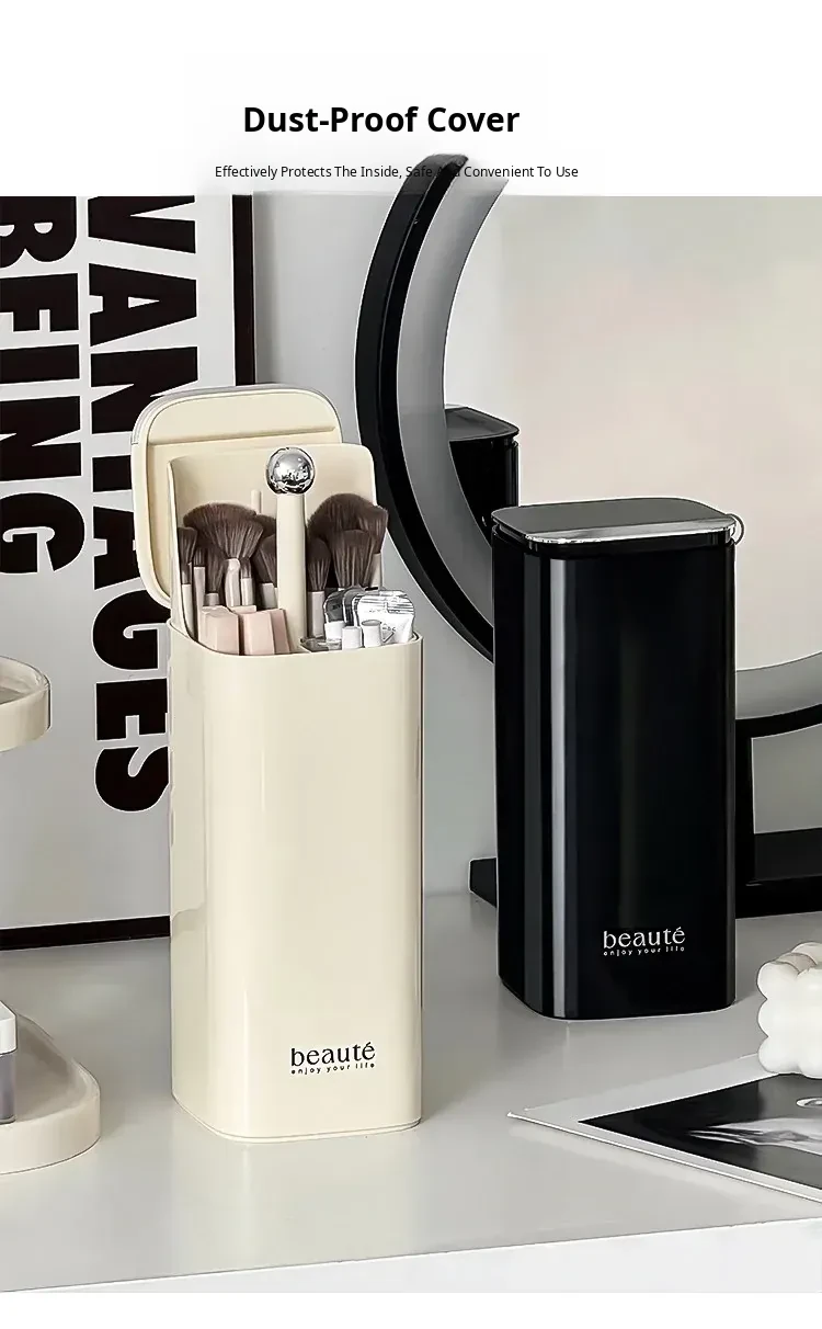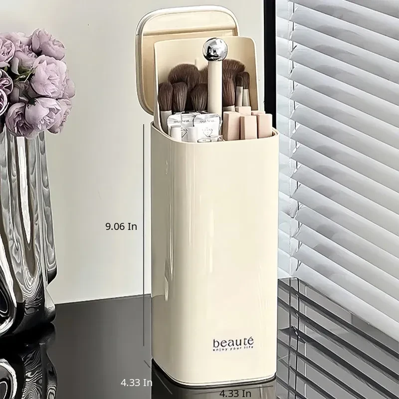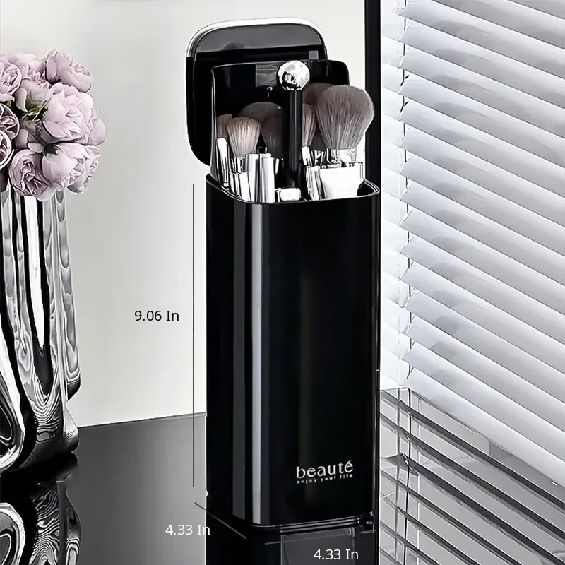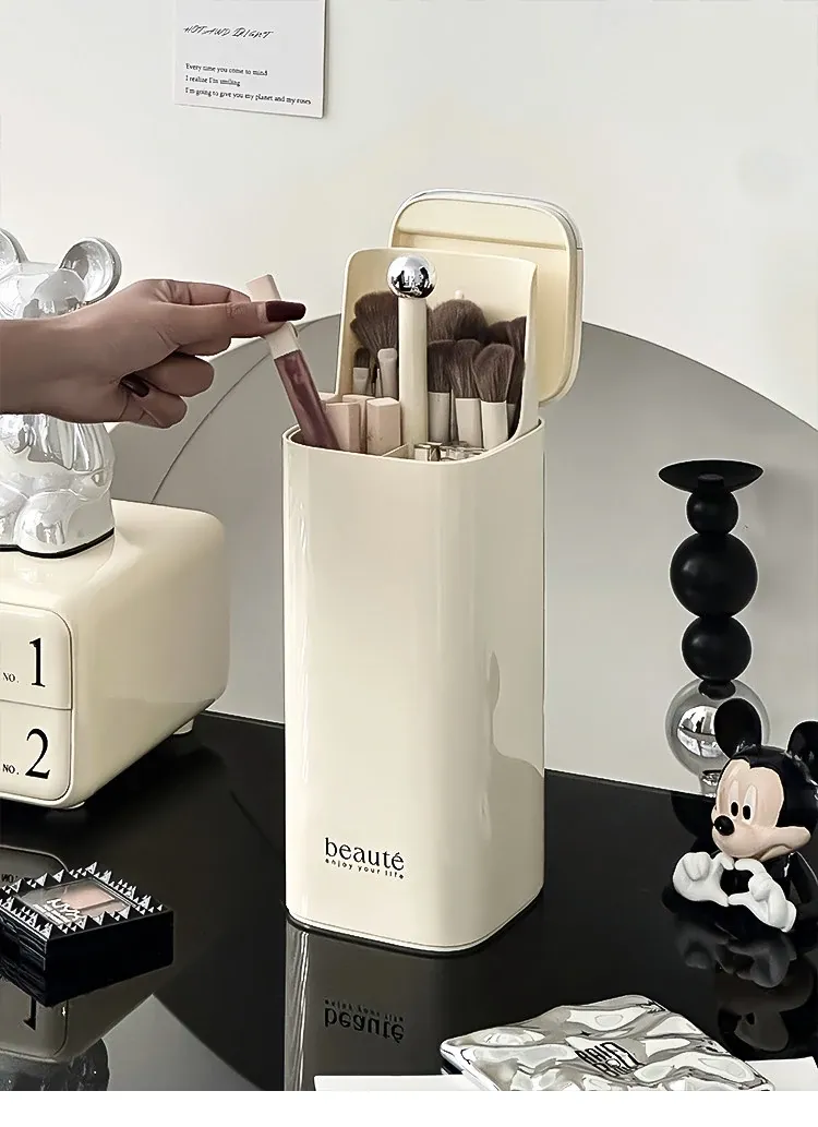 Premium Makeup Brush Organizer with Dust-Proof Design - Automatic Lifting Storage Cylinder for Brushes and Cosmetics, Perfect for a Stylish Desktop Setup