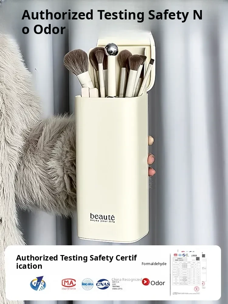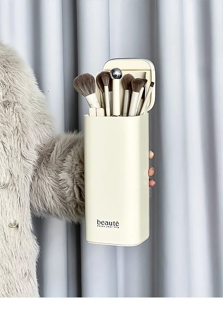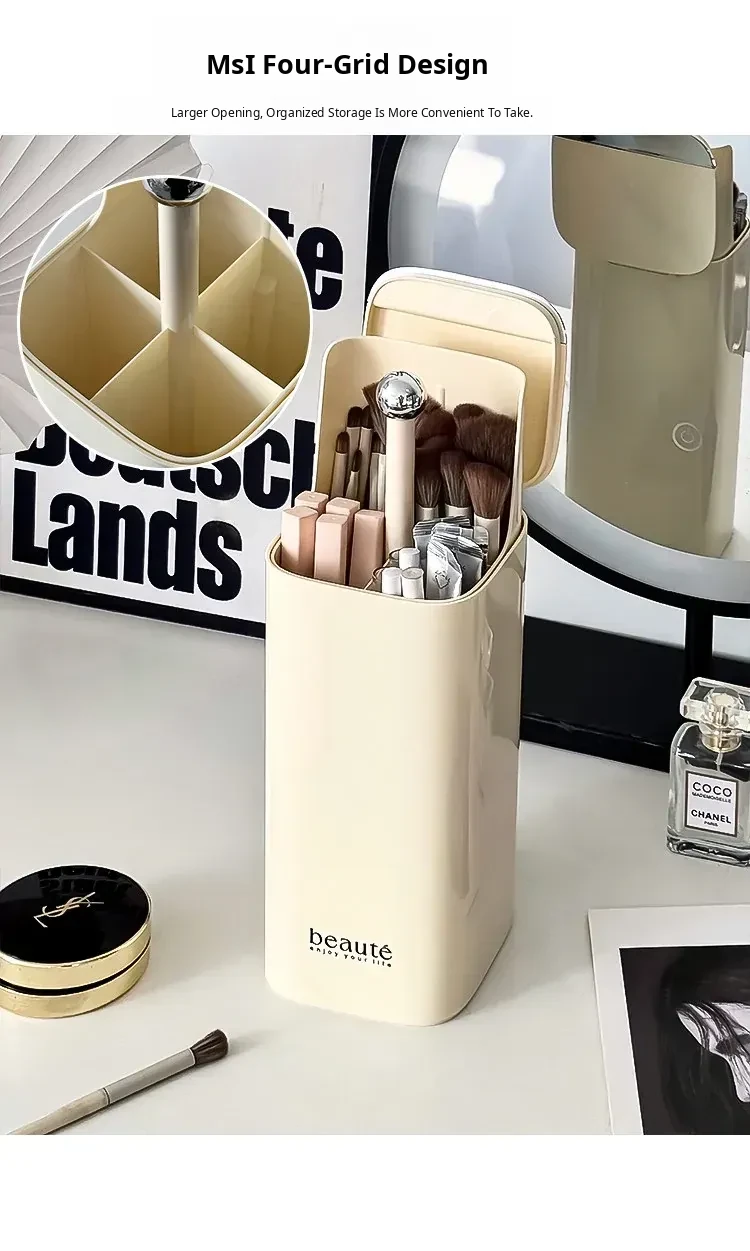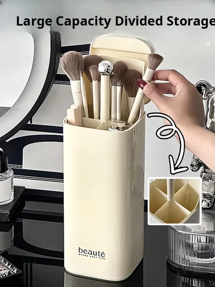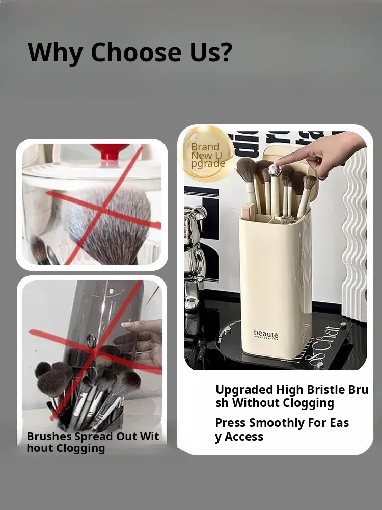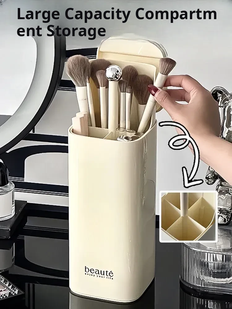 Premium Makeup Brush Organizer with Dust-Proof Design - Automatic Lifting Storage Cylinder for Brushes and Cosmetics, Perfect for a Stylish Desktop Setup