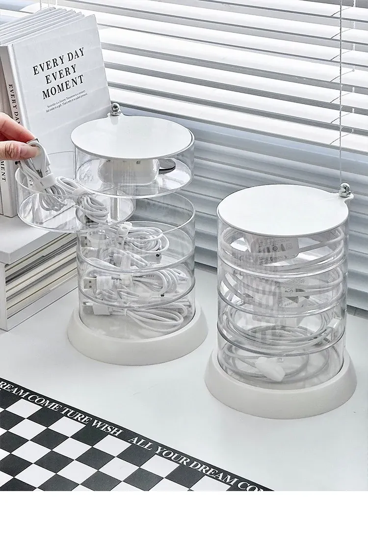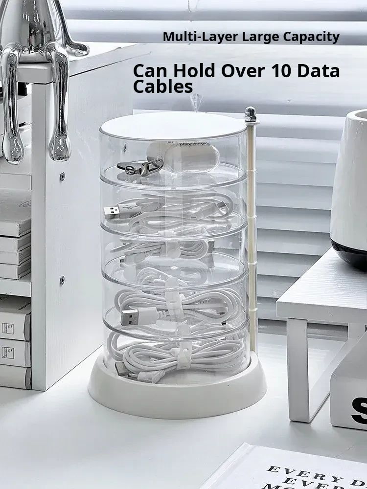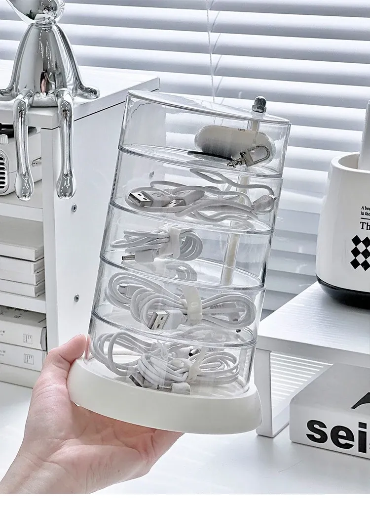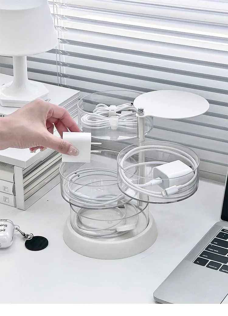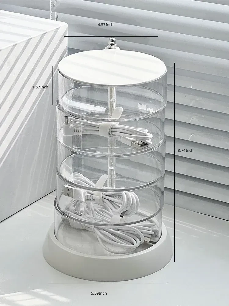 Rotating Cable Organizer Box for Data and Charging Cords - Tangle-free Desktop Solution for Phone Charging and Power Supply Management
