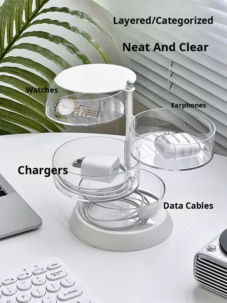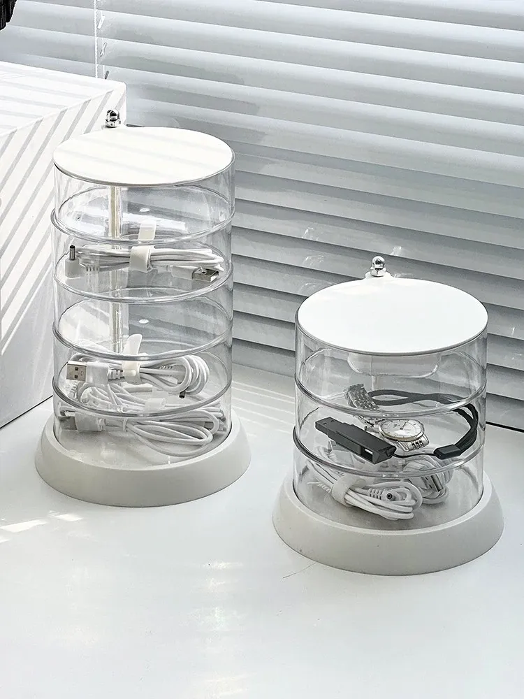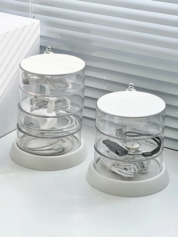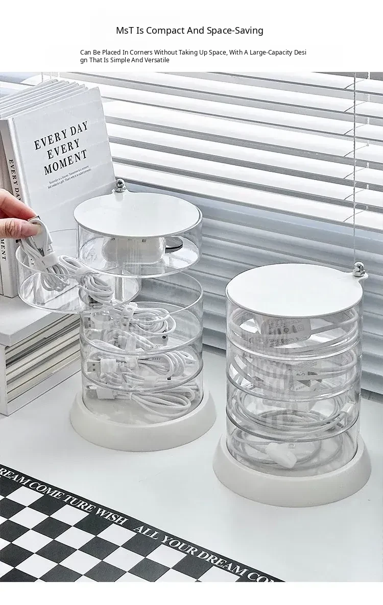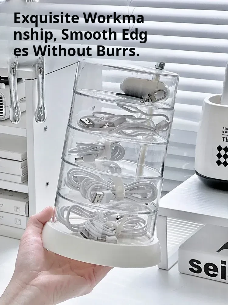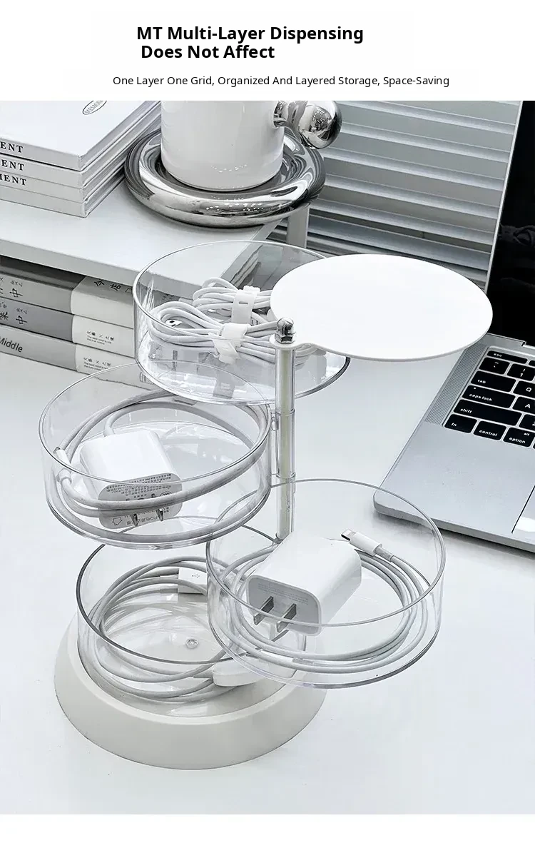 Rotating Cable Organizer Box for Data and Charging Cords - Tangle-free Desktop Solution for Phone Charging and Power Supply Management