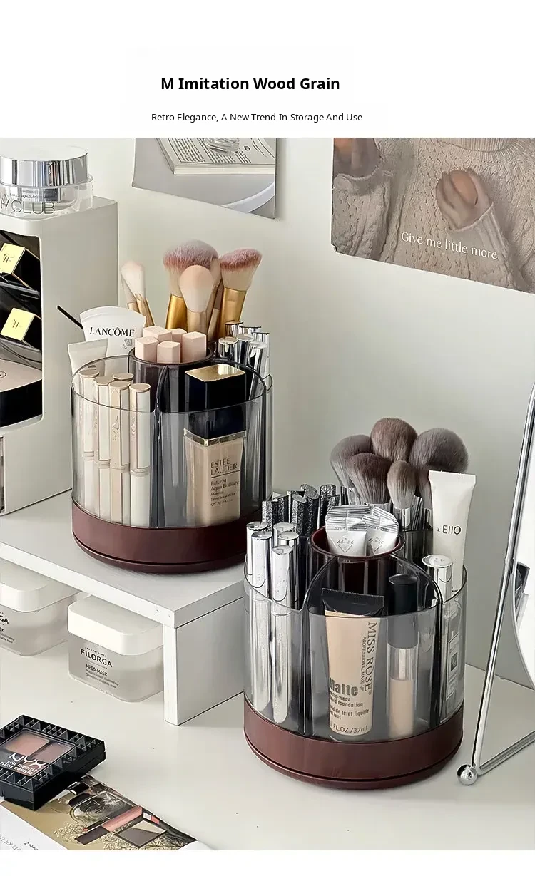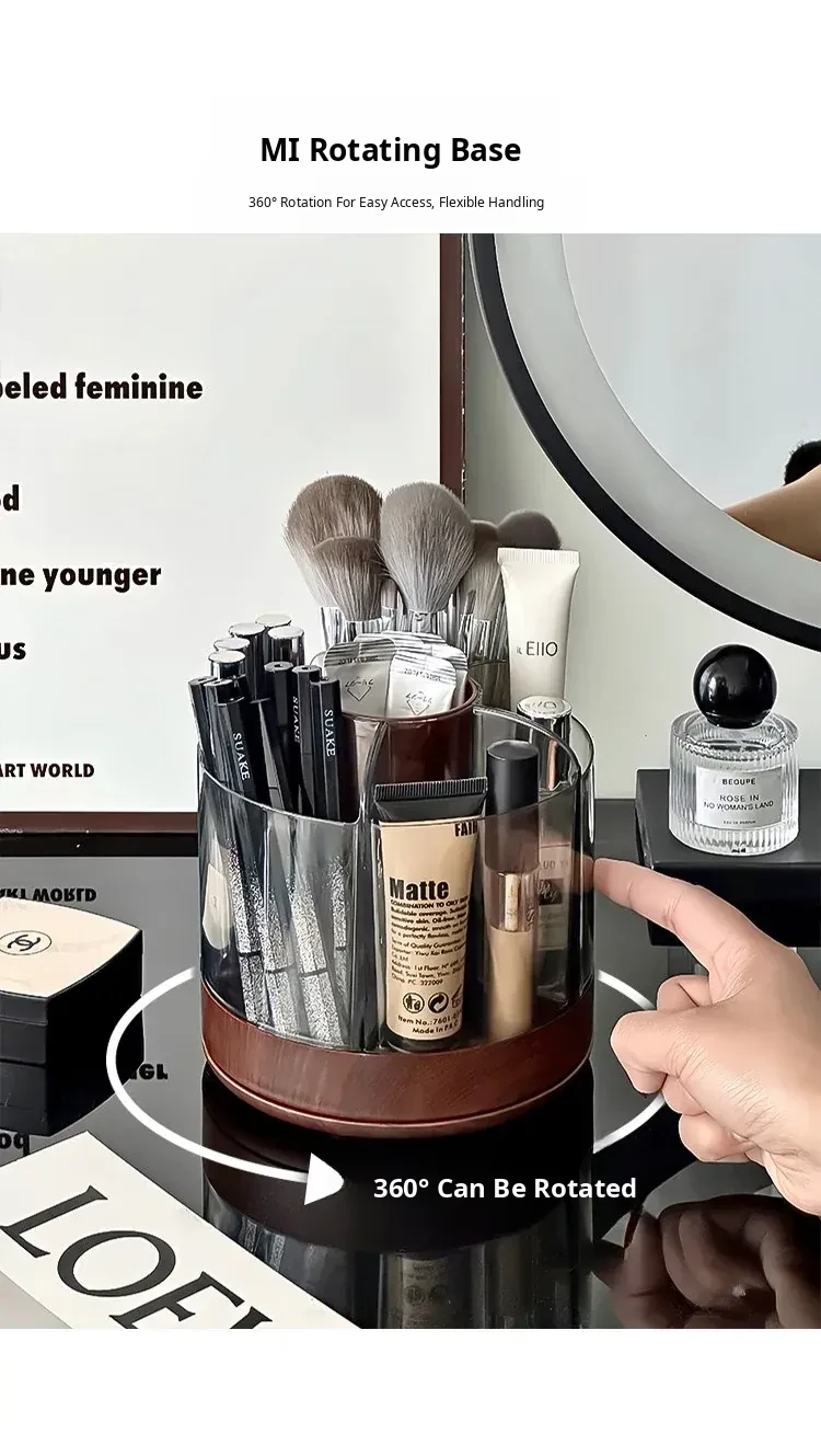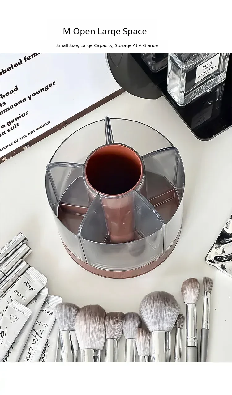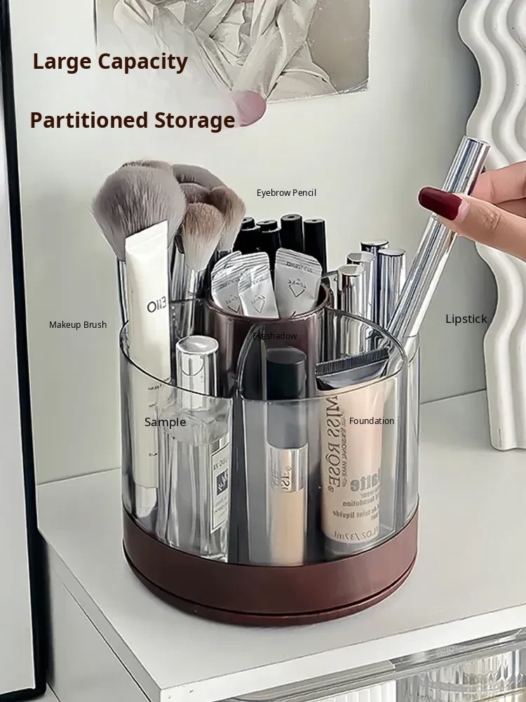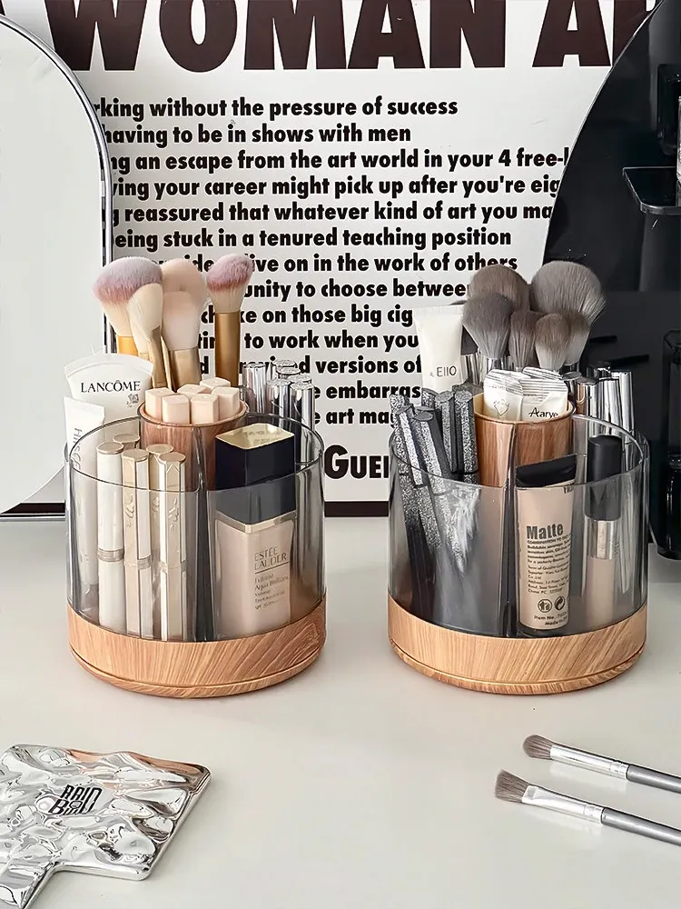 Rotating Makeup Brush Organizer - Large Capacity Cosmetic Storage Cylinder for Vanity Table, Perfect for Lipsticks, Eyeshadow Brushes, and More!