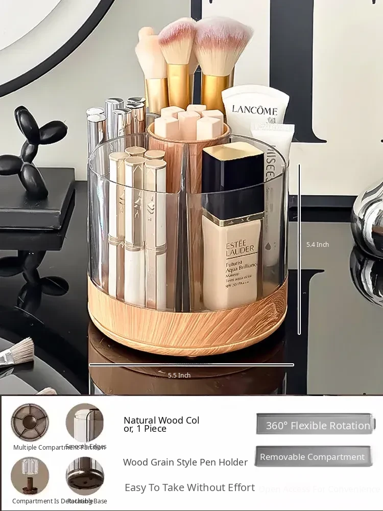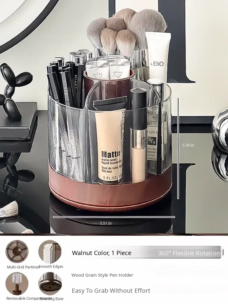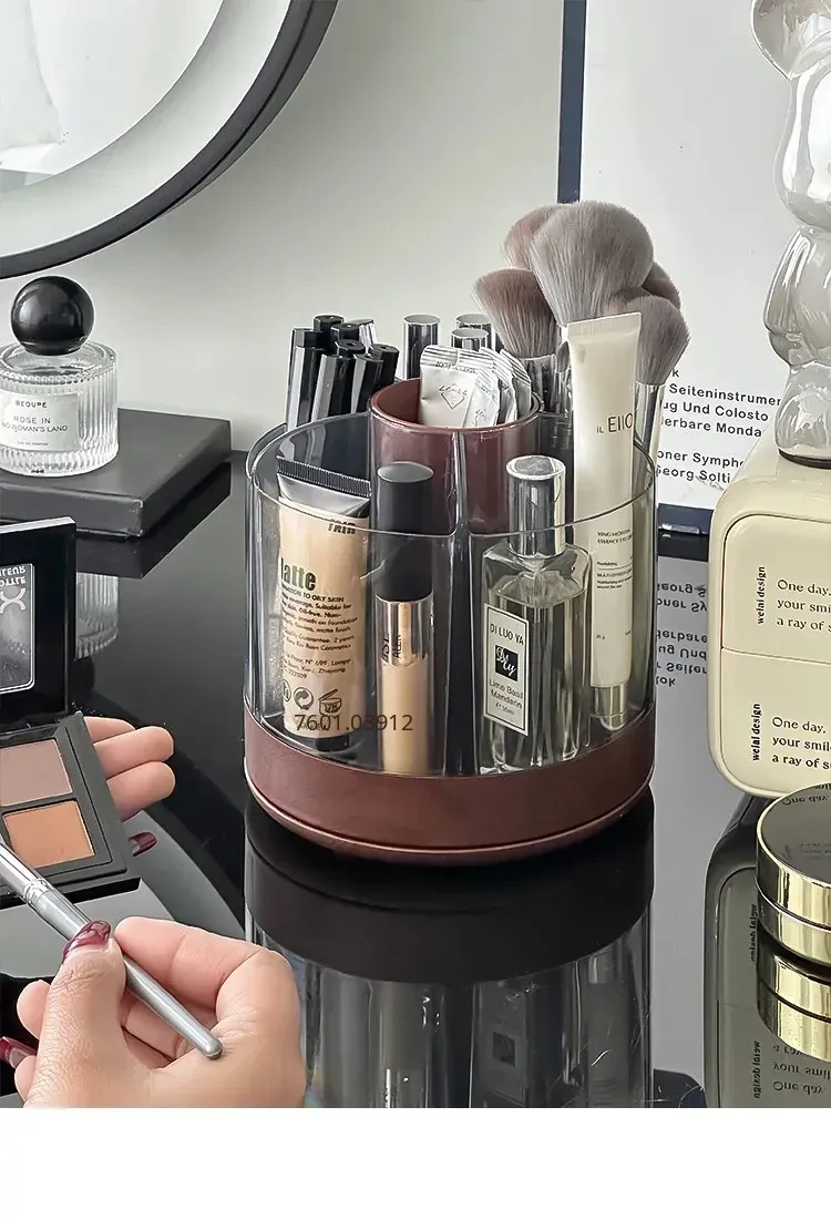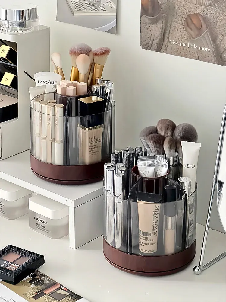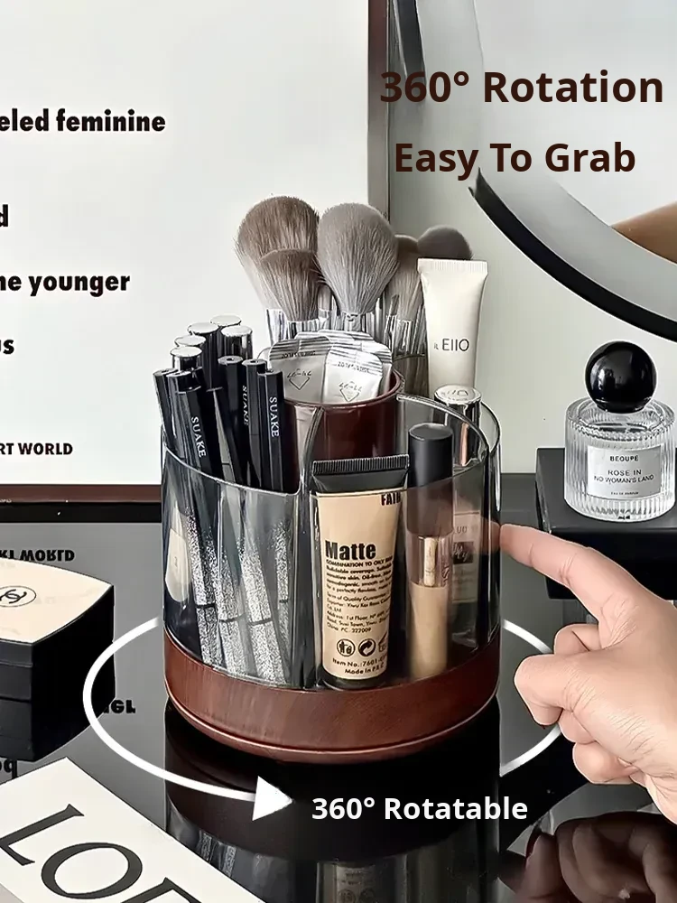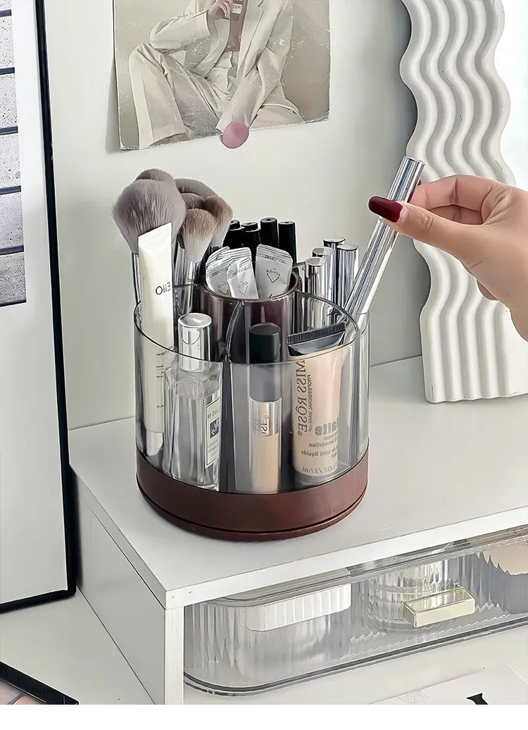 Rotating Makeup Brush Organizer - Large Capacity Cosmetic Storage Cylinder for Vanity Table, Perfect for Lipsticks, Eyeshadow Brushes, and More!