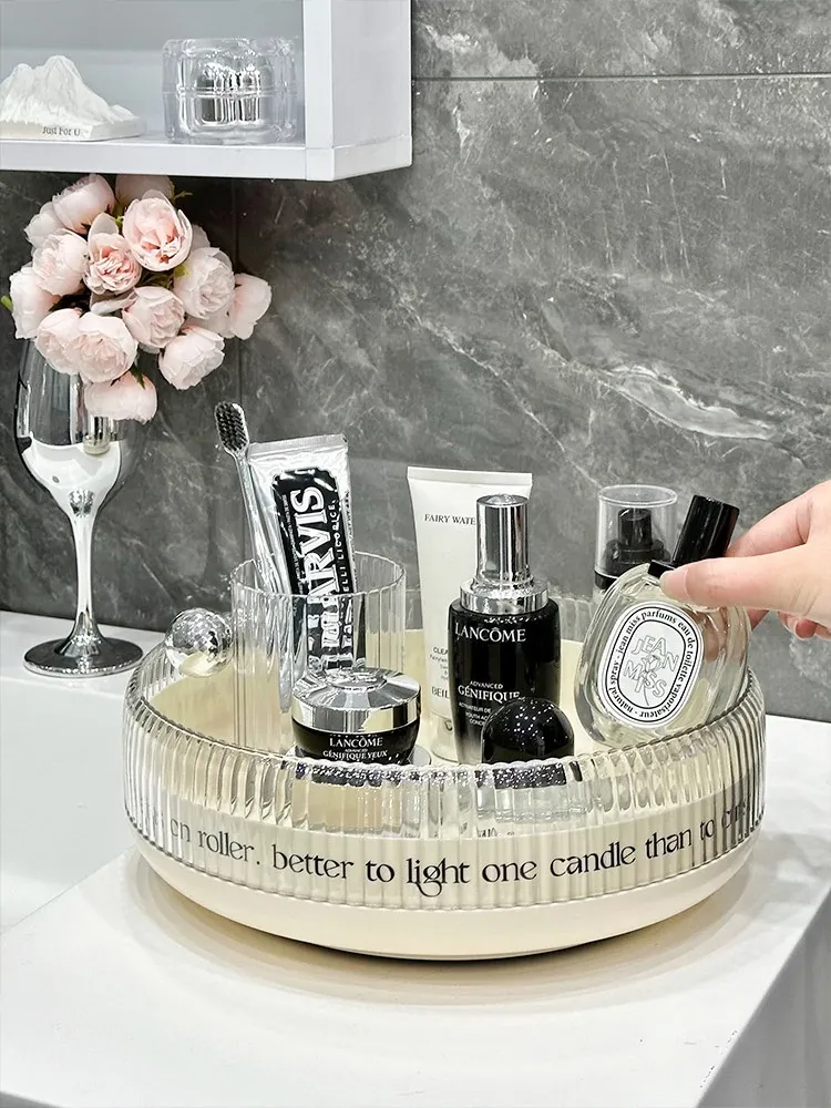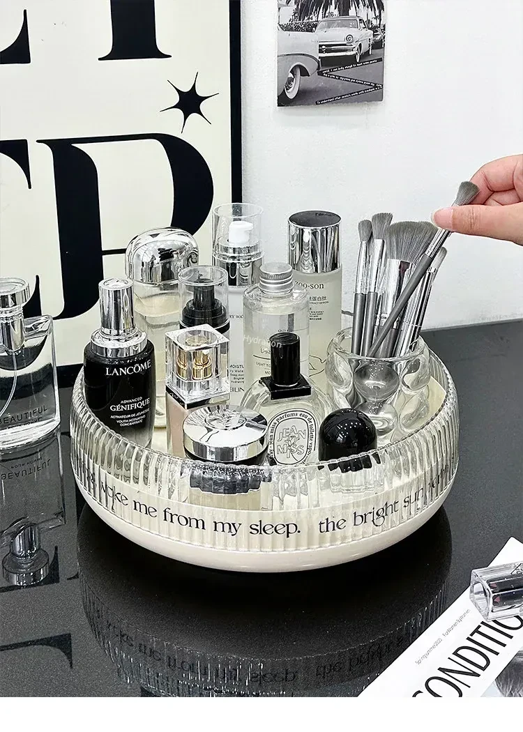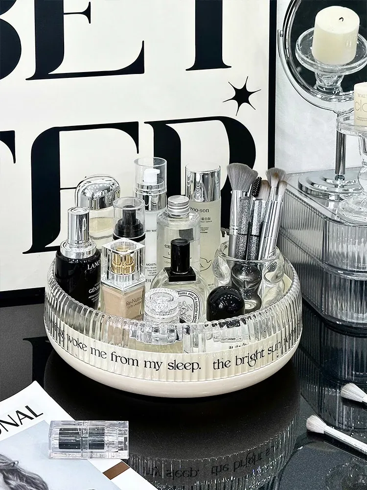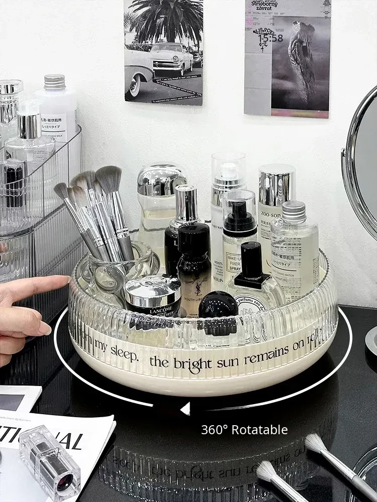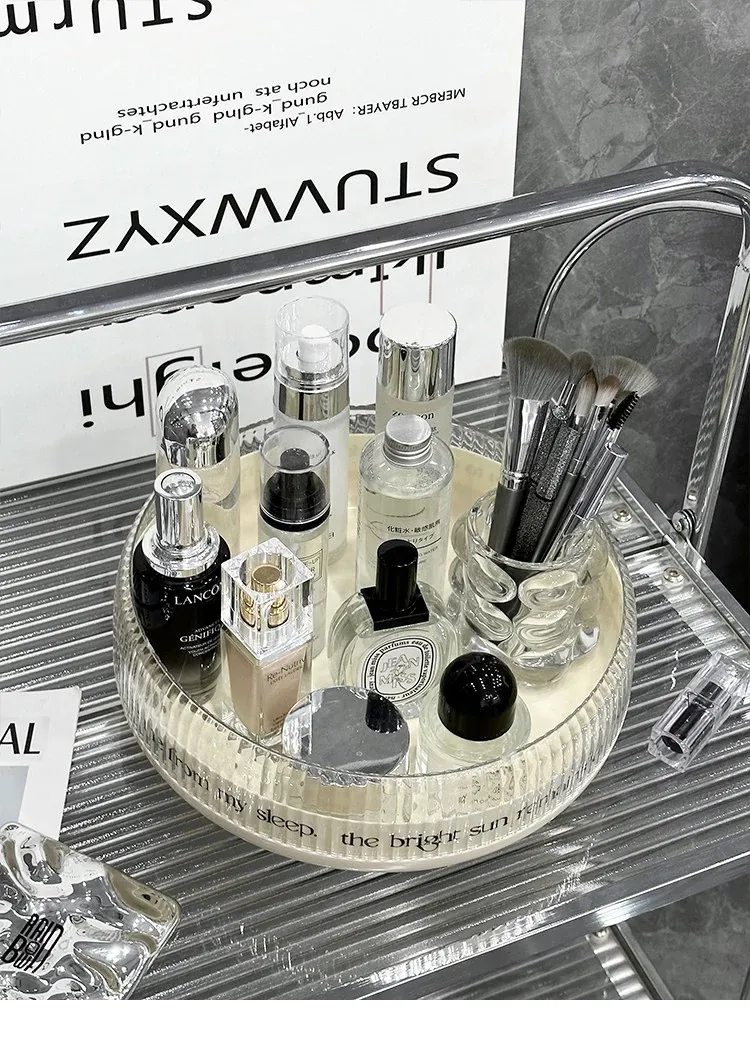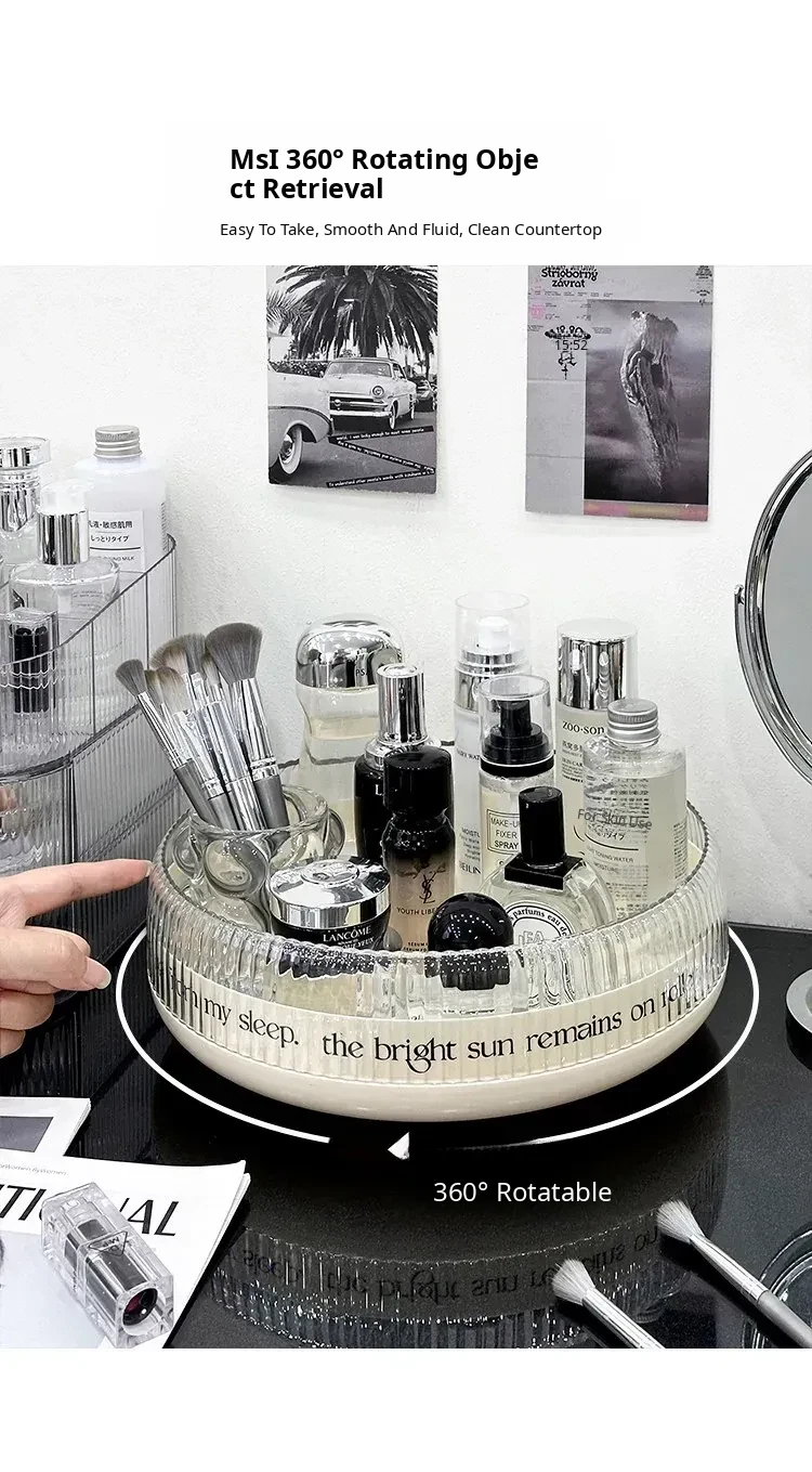 Rotating Makeup Organizer - Acrylic Transparent Storage Rack for Desktop Vanity, Perfumes, Lipsticks & Skincare Products - Stylish and Functional Beauty Station