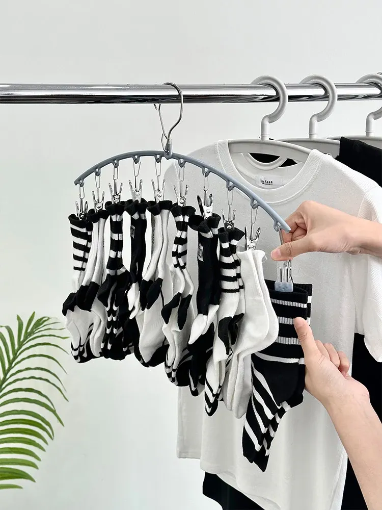 Stainless Steel Sock Drying Rack - Multi-Clip Sock Drying Solution for Home Use, Windproof Multi-Functional Hanger for Underwear and Pants