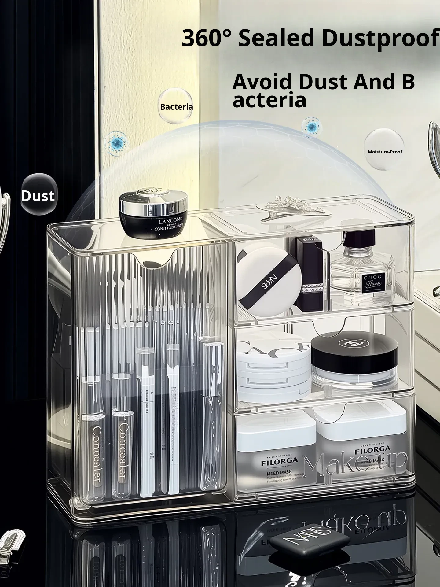Transparent Acrylic Makeup Organizer - Dustproof Skincare Storage Box for Vanity - Perfect for Face Masks and Lipstick - Keep Your Beauty Essentials Neat and Accessible!
