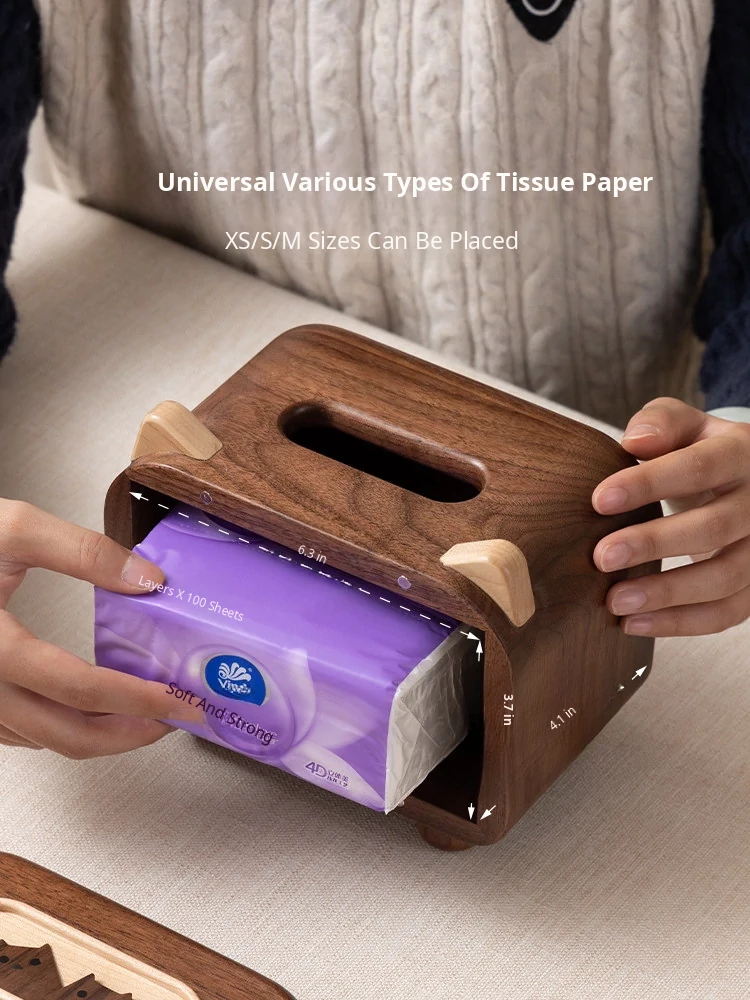 Vanhan Cute Solid Wood Tissue Box - Stylish and Functional Napkin Holder for Living Room and Dining Table, Creamy Aesthetic Design for Home Decor