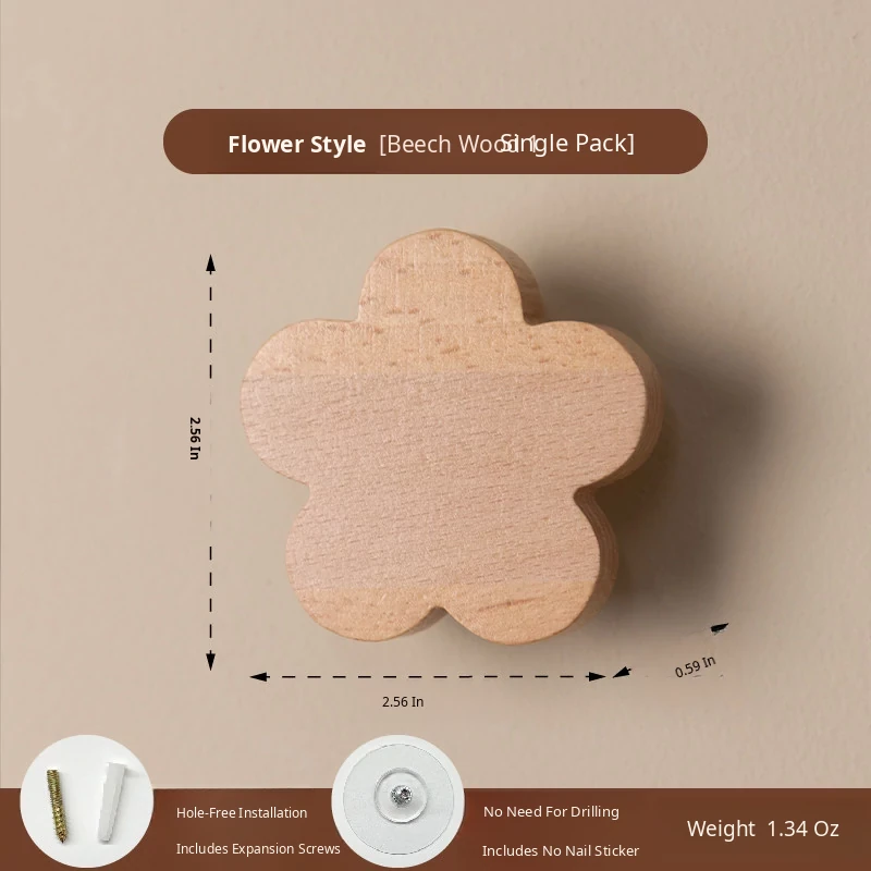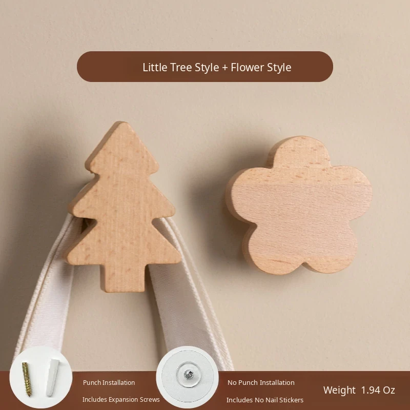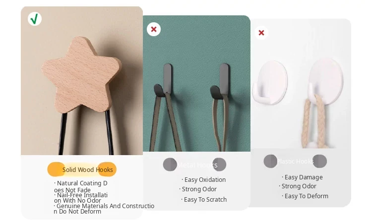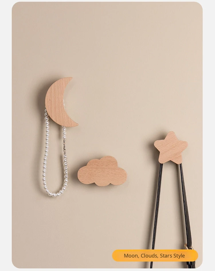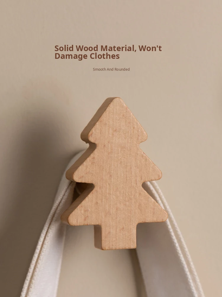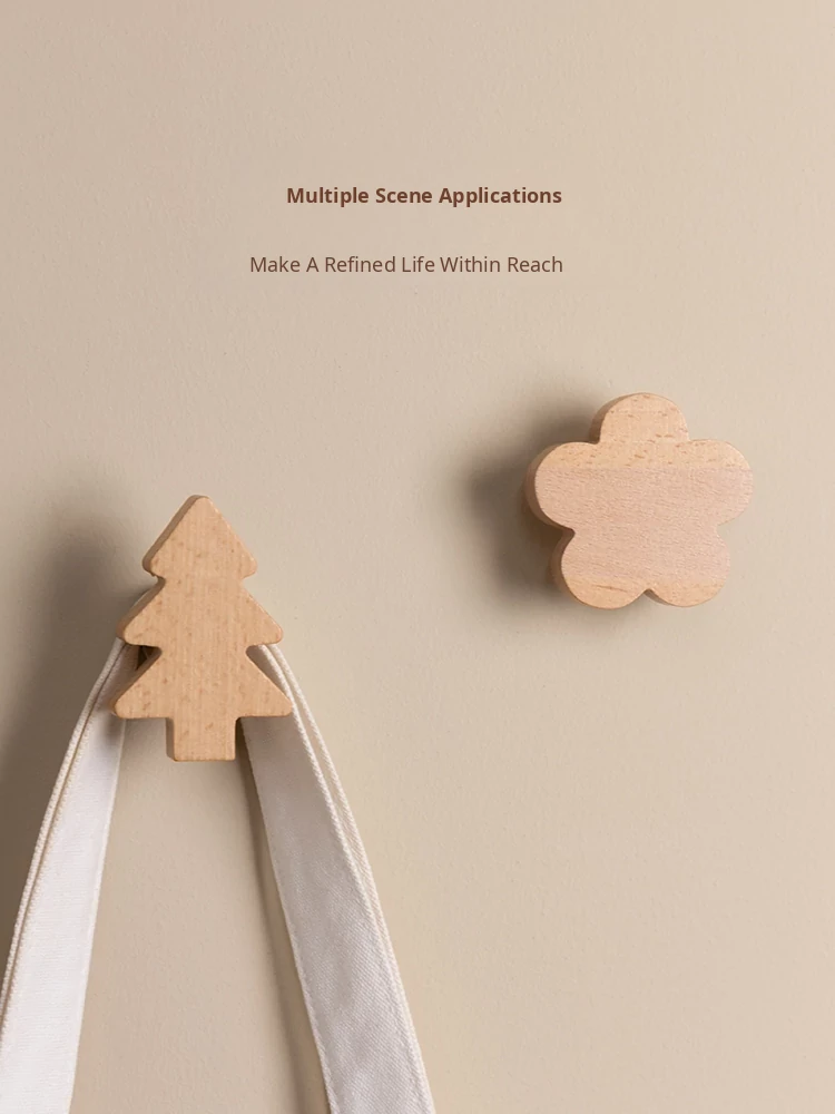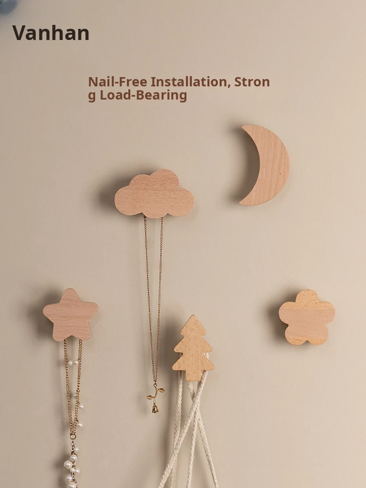 VANHAN Cute Wooden Wall Hooks - No Drill, Adhesive Coat Rack for Hats and Clothes, Perfect for Entryway and Door Back, Stylish and Functional Design