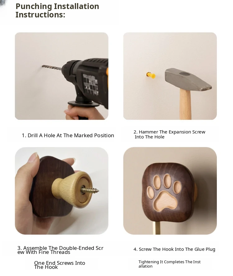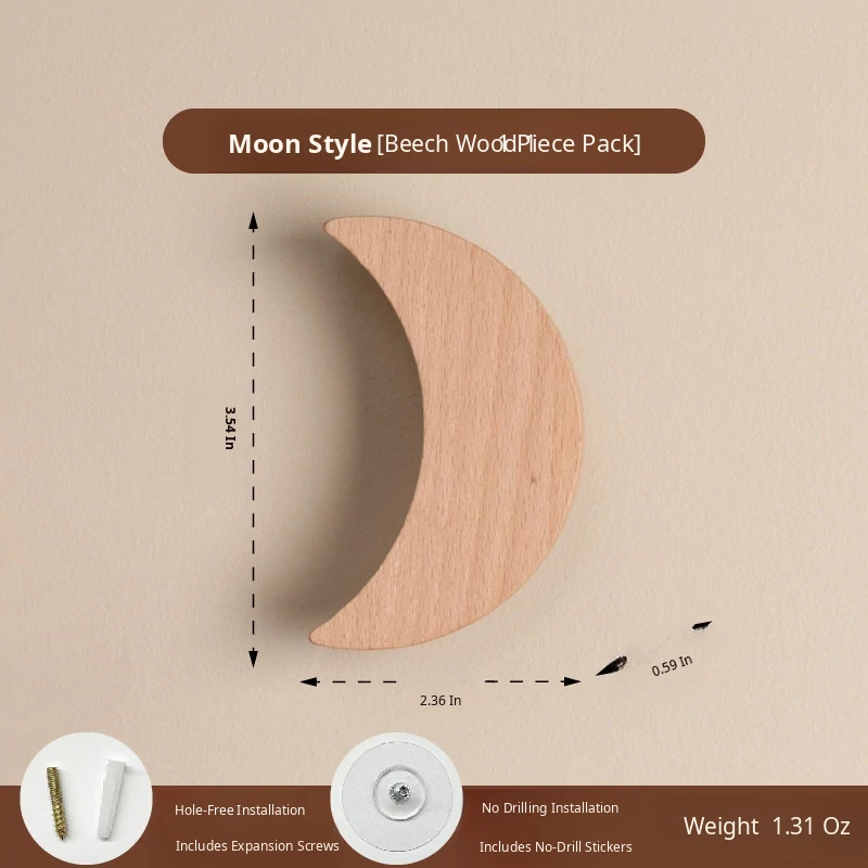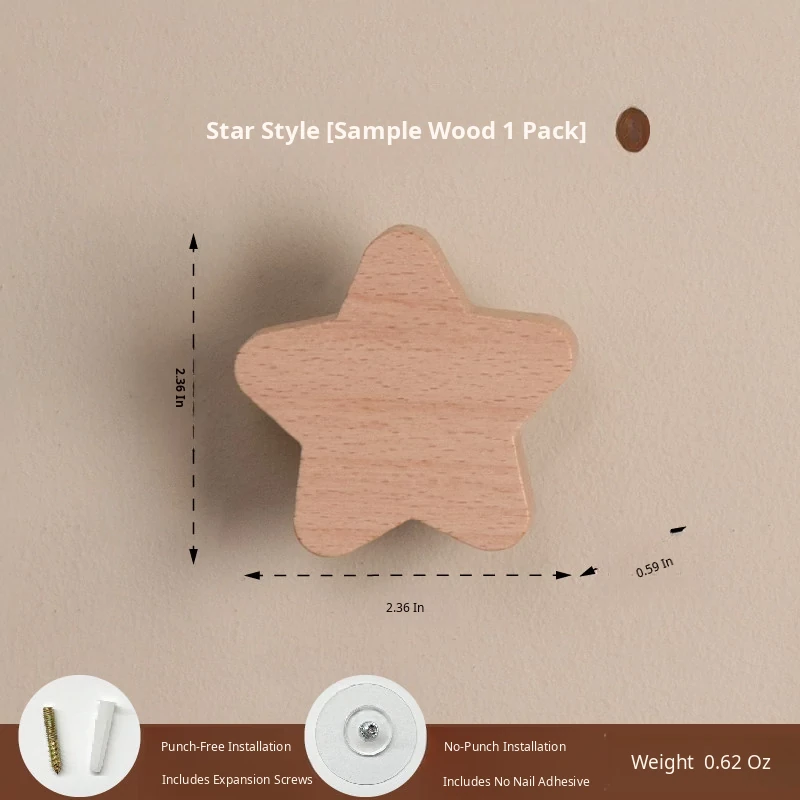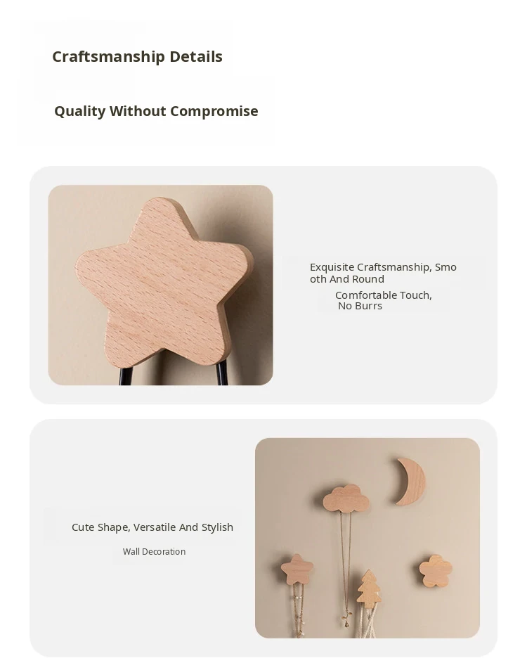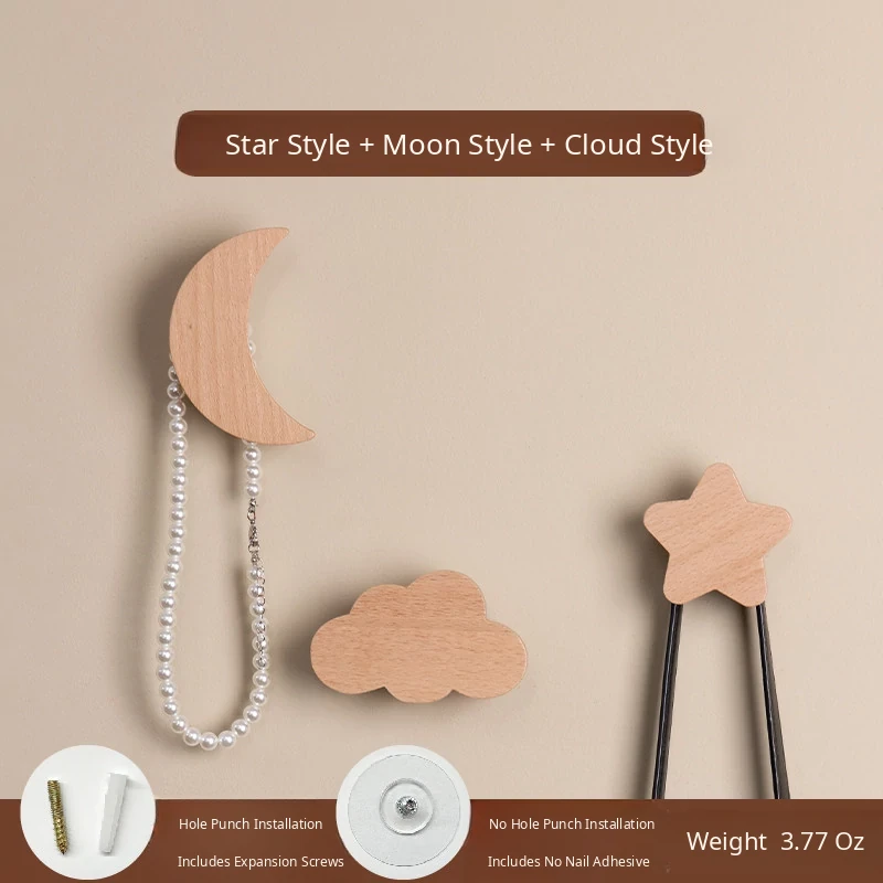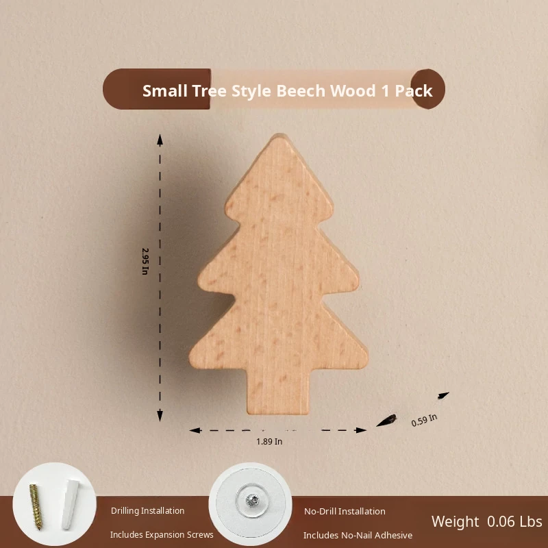 VANHAN Cute Wooden Wall Hooks - No Drill, Adhesive Coat Rack for Hats and Clothes, Perfect for Entryway and Door Back, Stylish and Functional Design