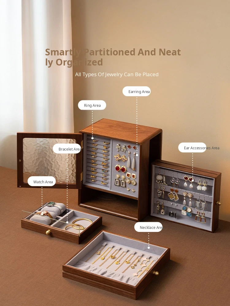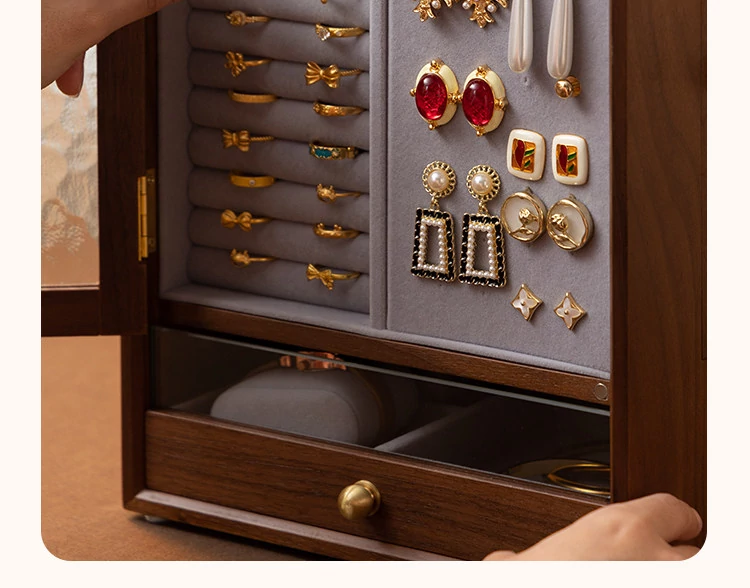 Vanhan Drawer Jewelry Organizer Box - Elegant and Luxurious New Year Gift for Necklaces, Rings, and Earrings - Stylish Wooden Jewelry Storage Solution