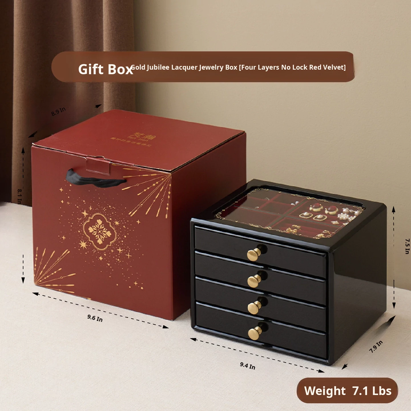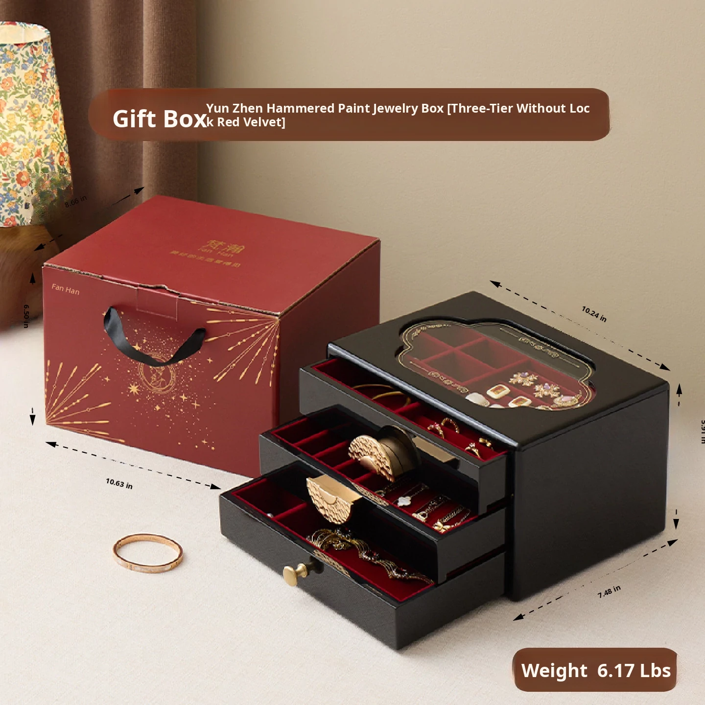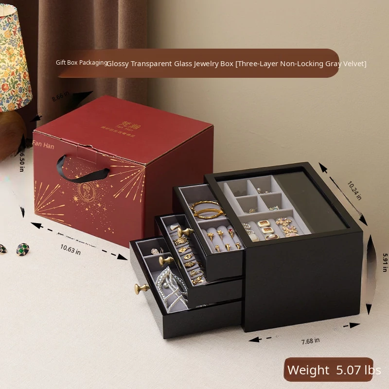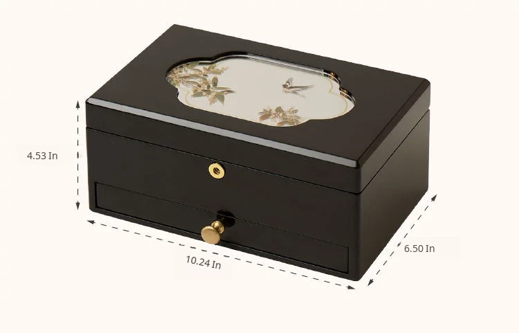 Painted Jewelry Box, Glass Type, Red Velvet, Gift Box