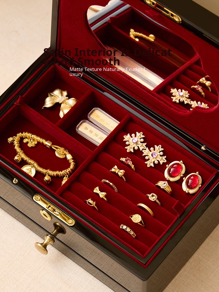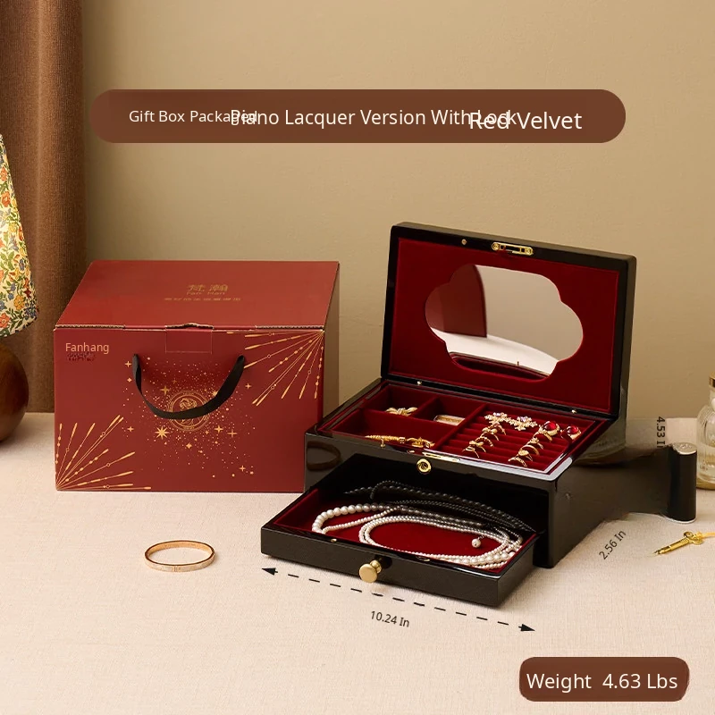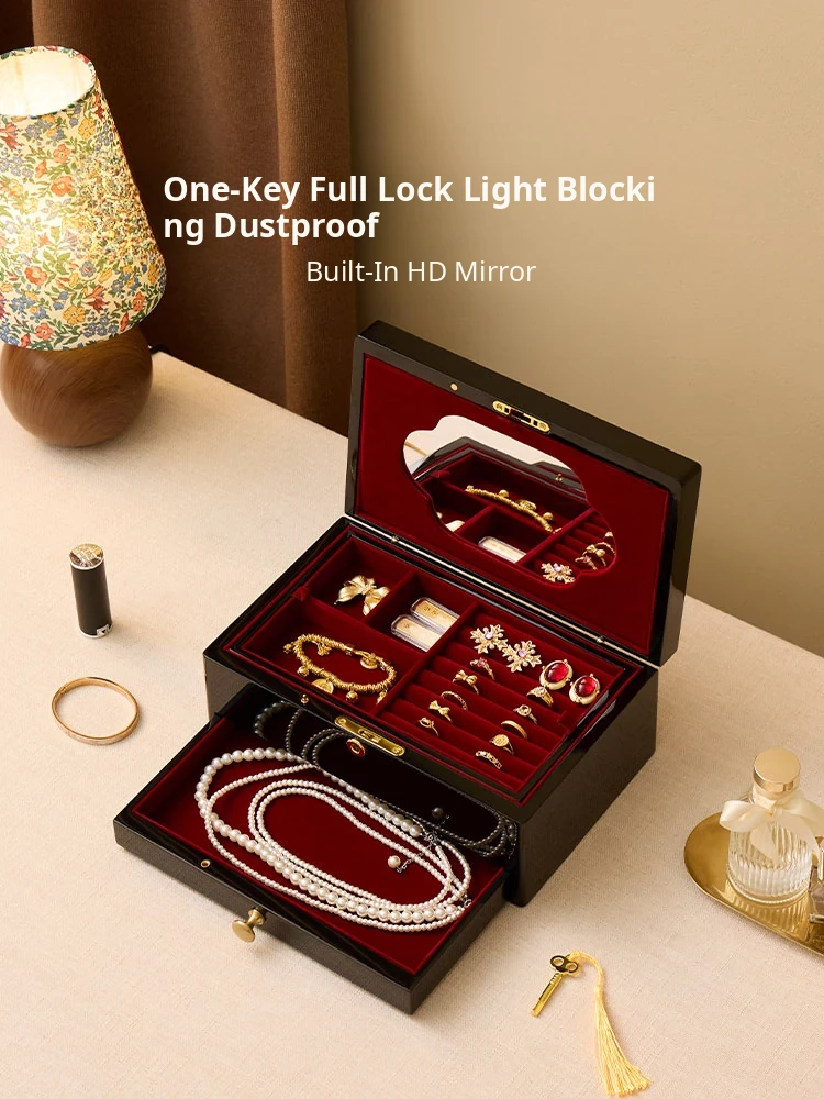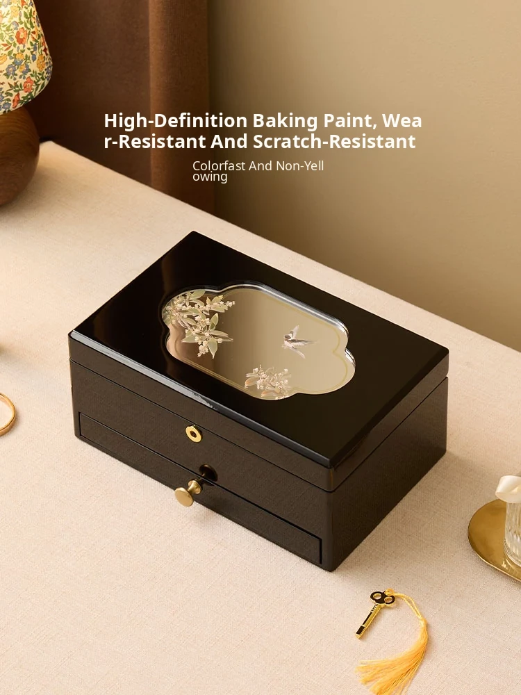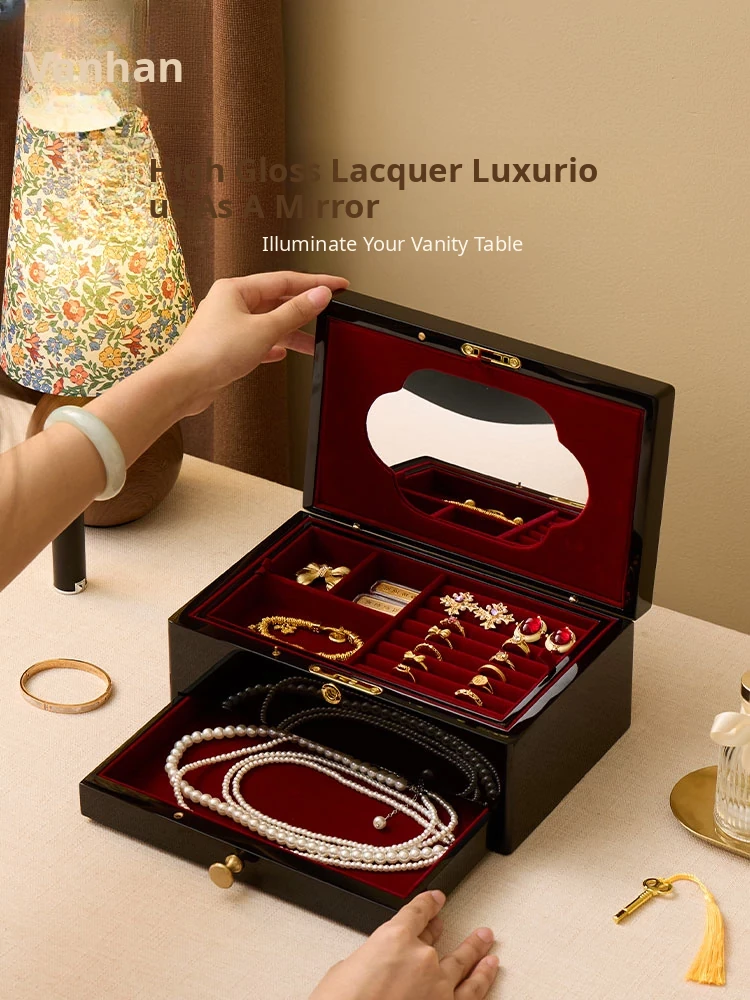 Vanhan Luxury Jewelry Box with Lock and Mirror - Elegant Painted Finish, Perfect for Weddings, New Year, and Valentine's Day Gifts for Jewelry and Accessories.