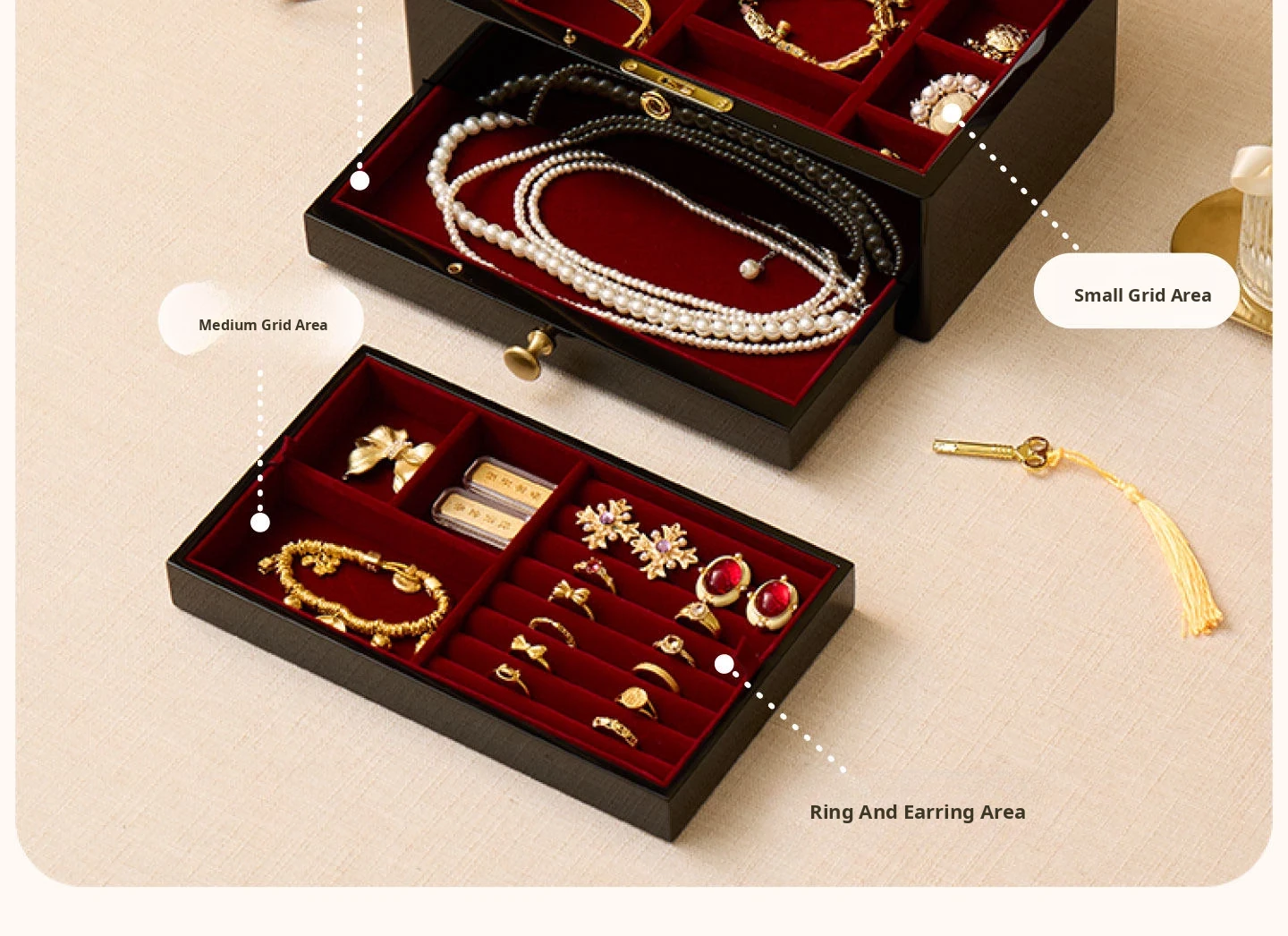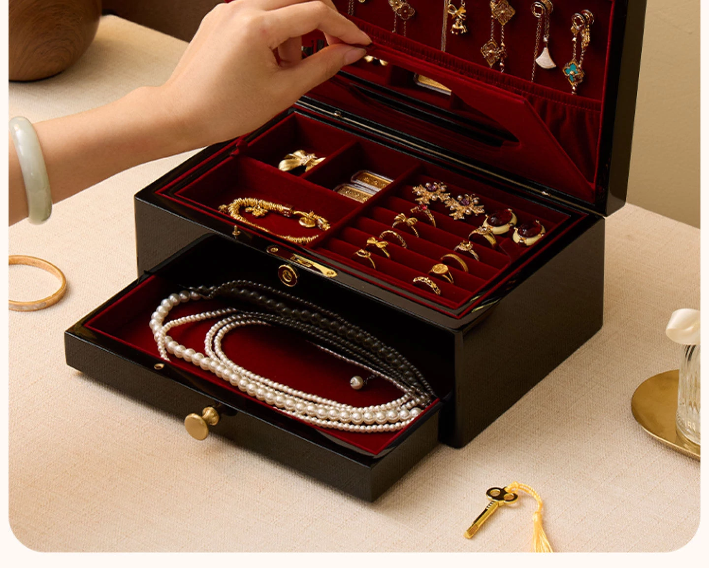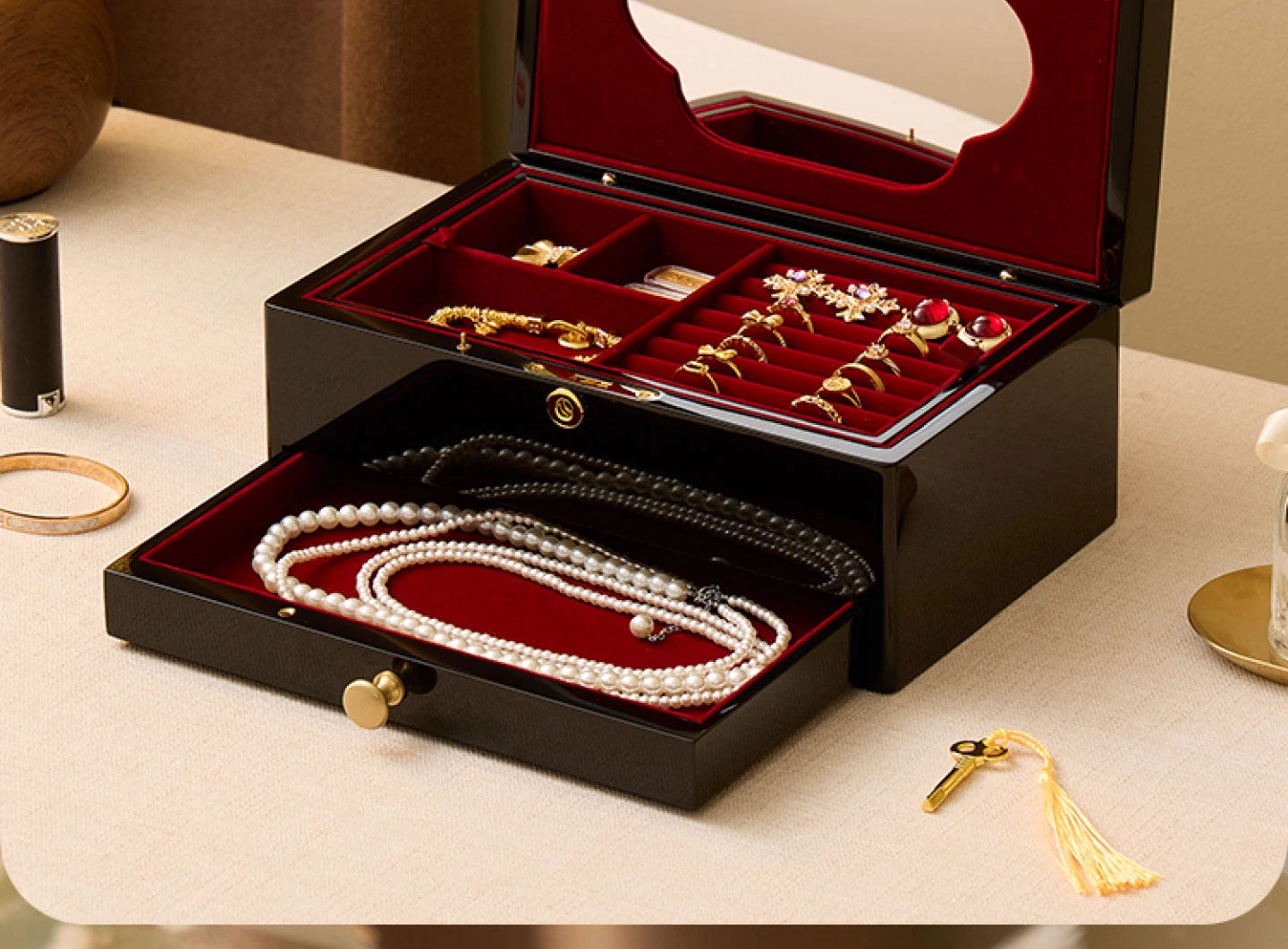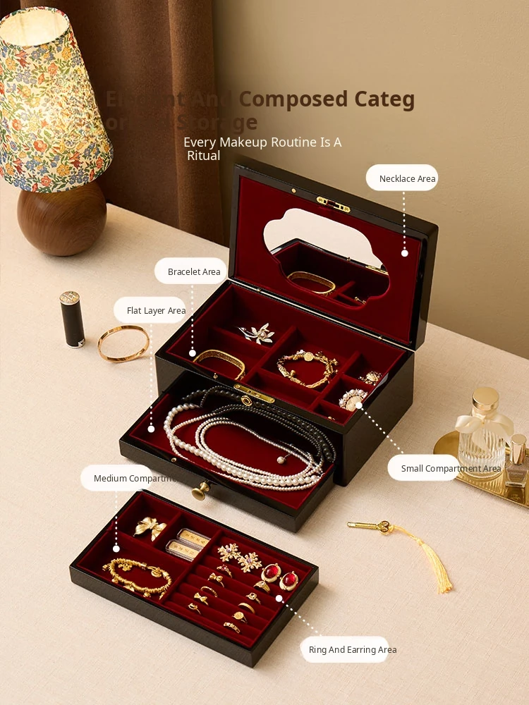 Vanhan Luxury Jewelry Box with Lock and Mirror - Elegant Painted Finish, Perfect for Weddings, New Year, and Valentine's Day Gifts for Jewelry and Accessories.