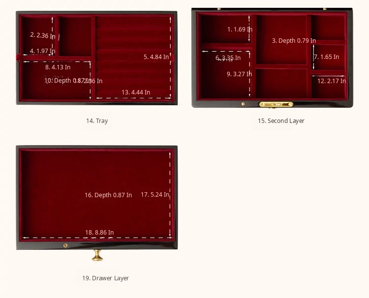 Painted Jewelry Box, Window Grille Style, Red Velvet, Gift Box