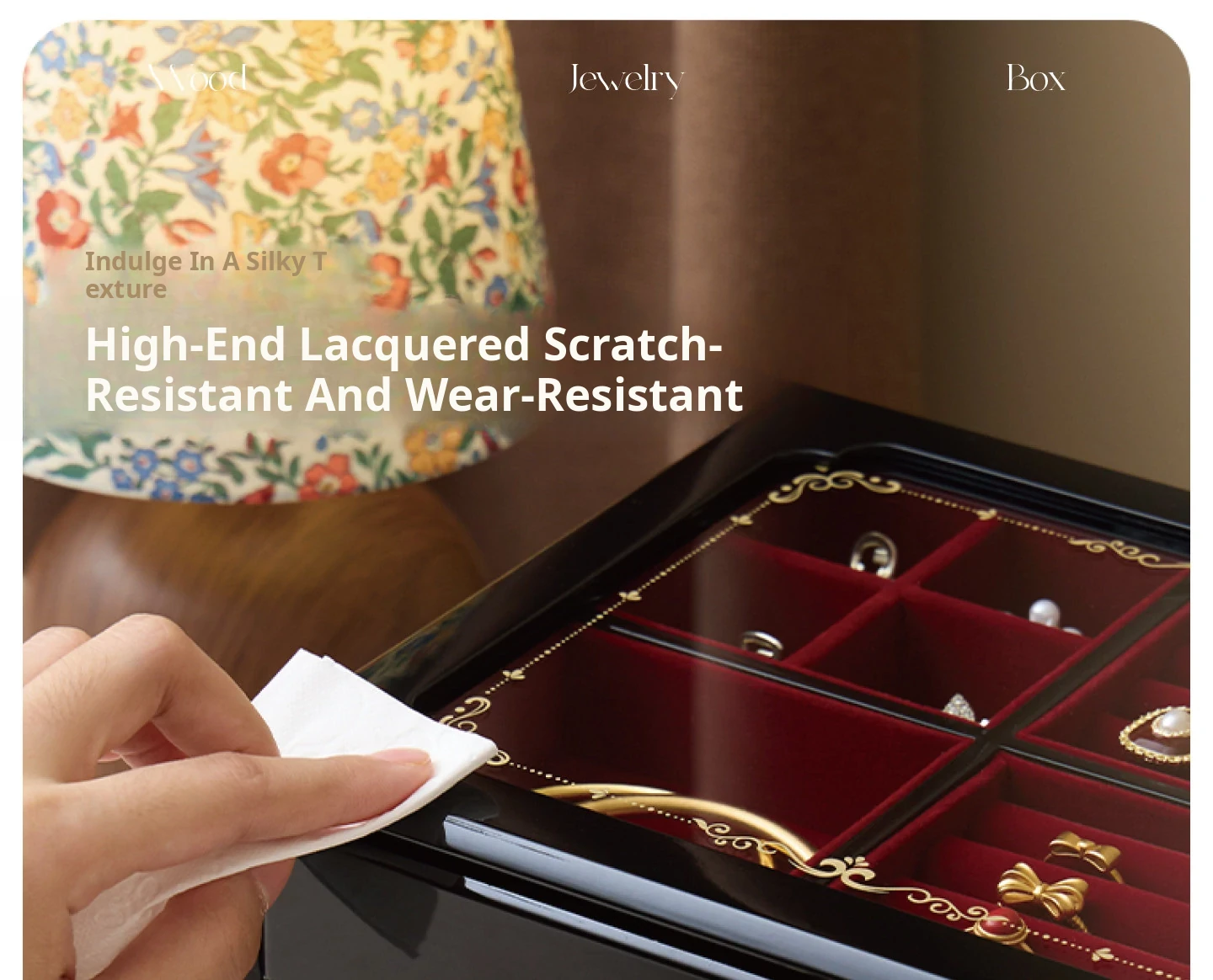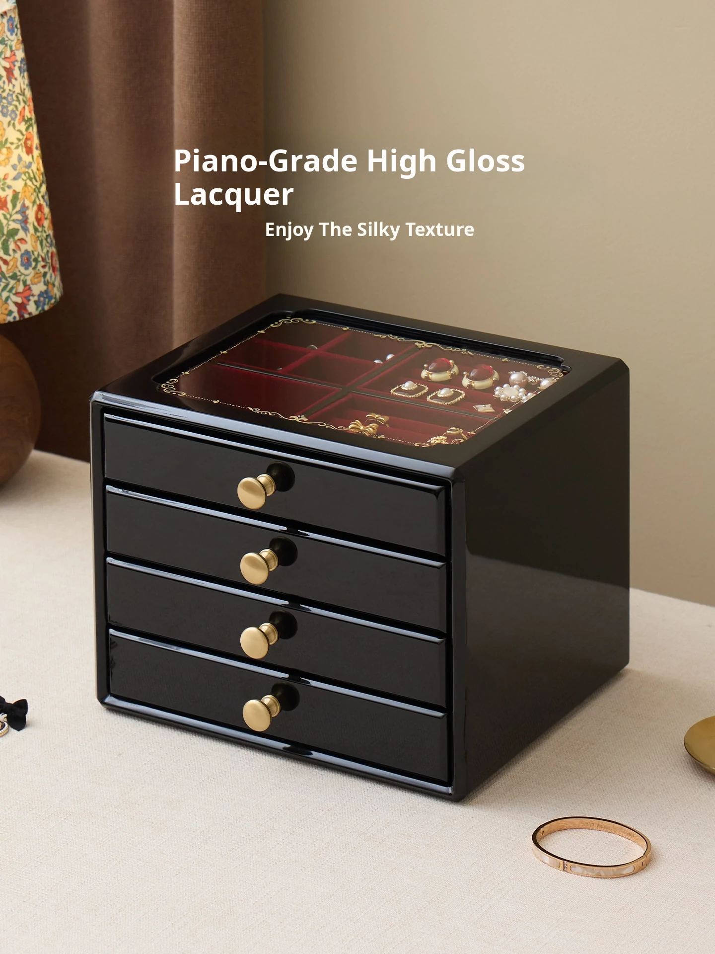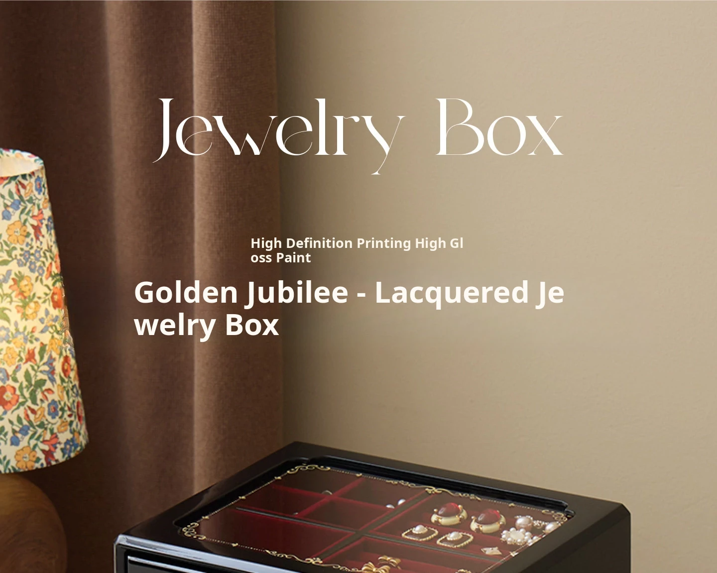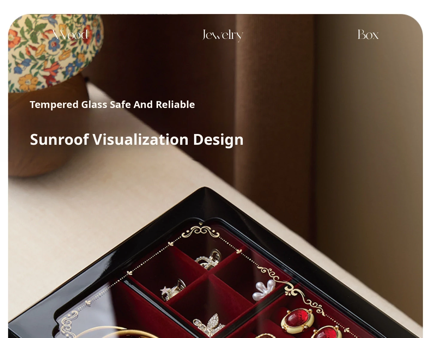 Painted Jewelry Box, Glass Type, Red Velvet, Gift Box