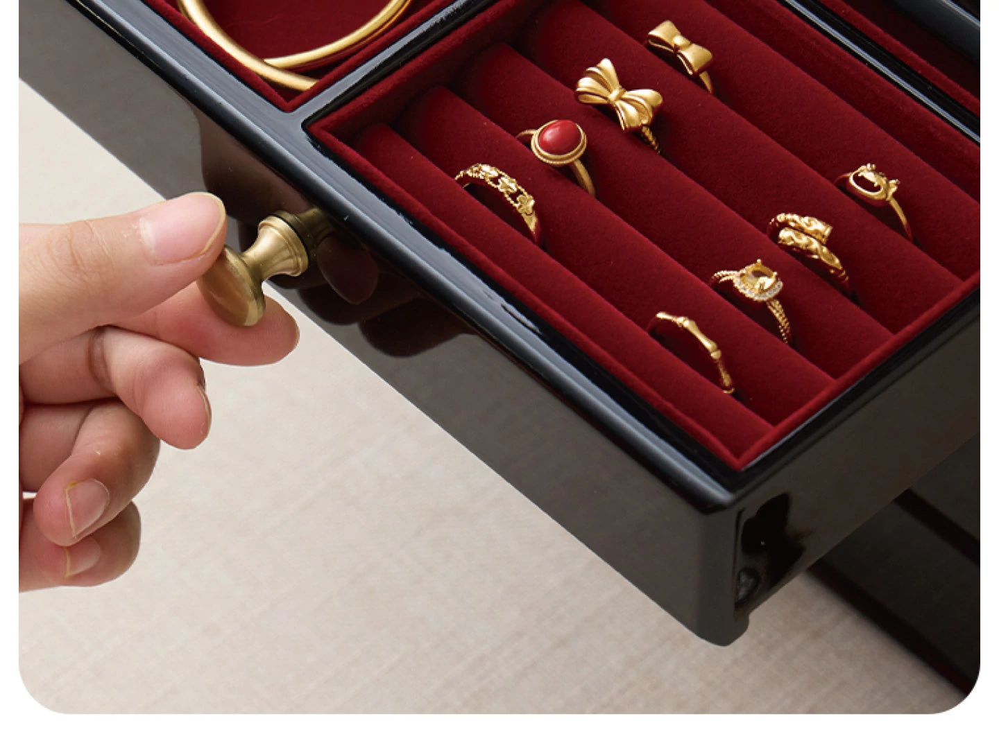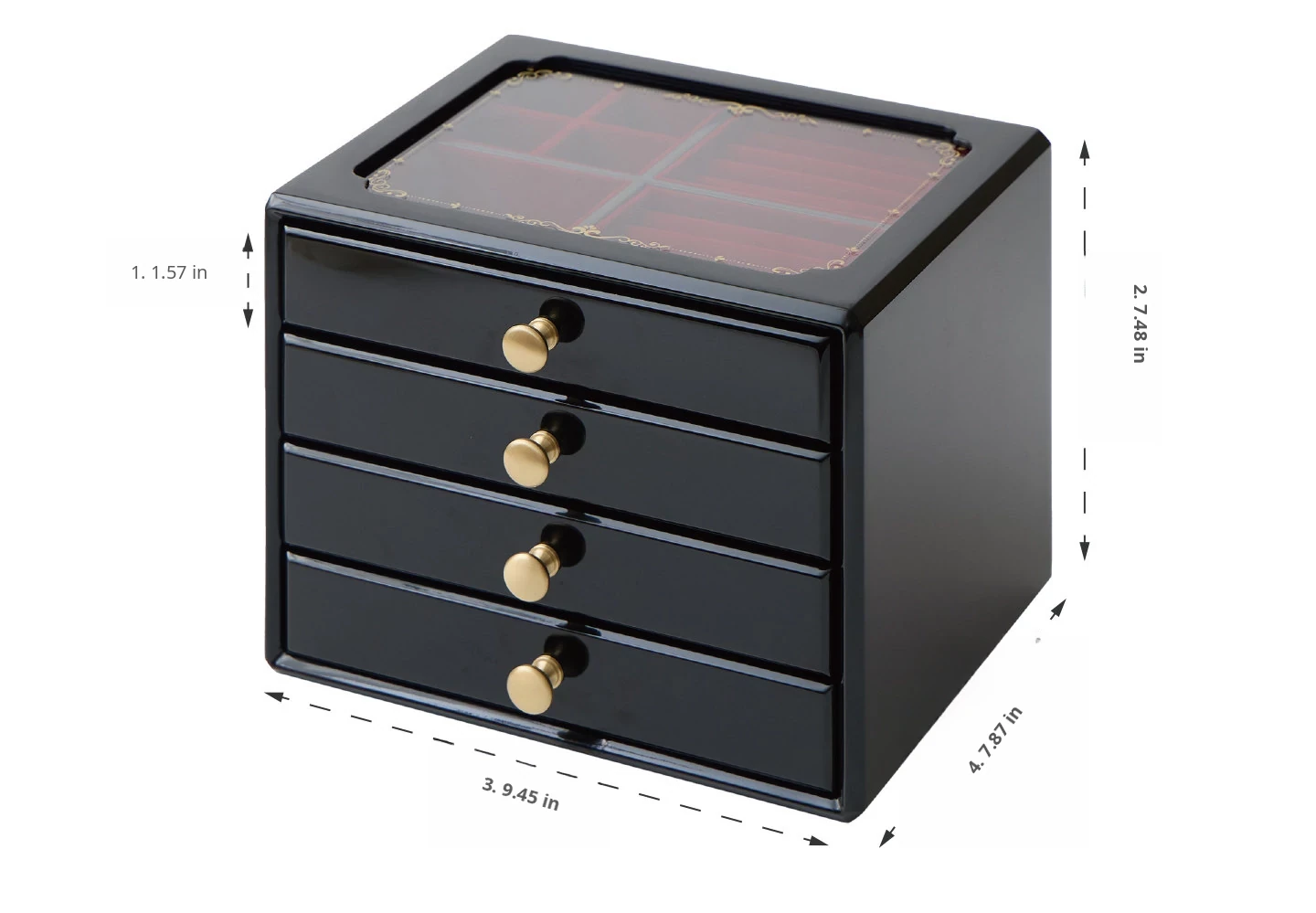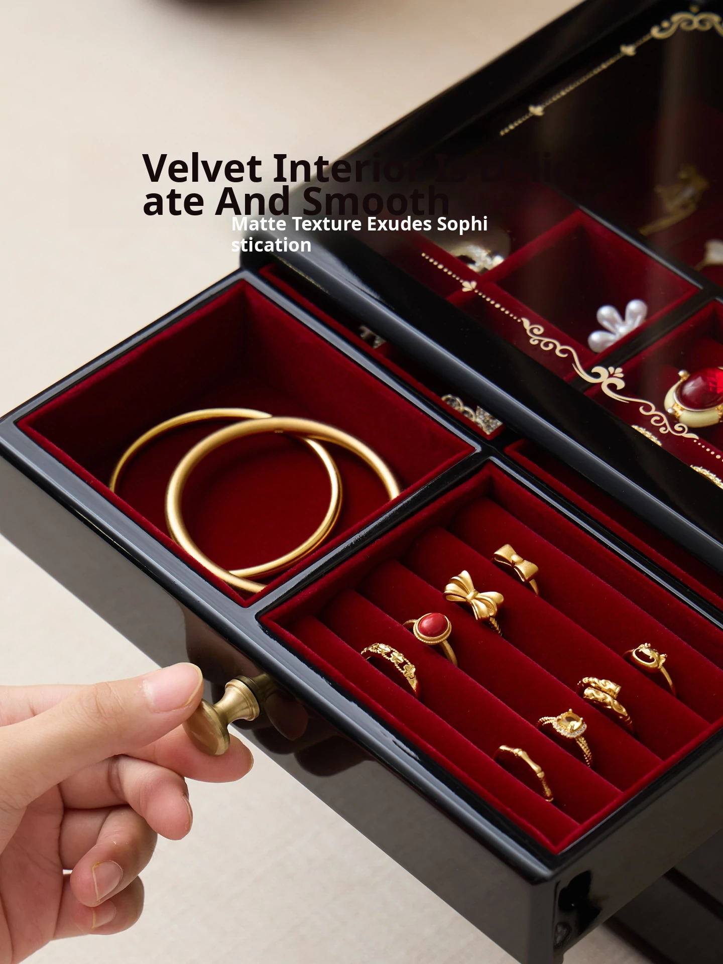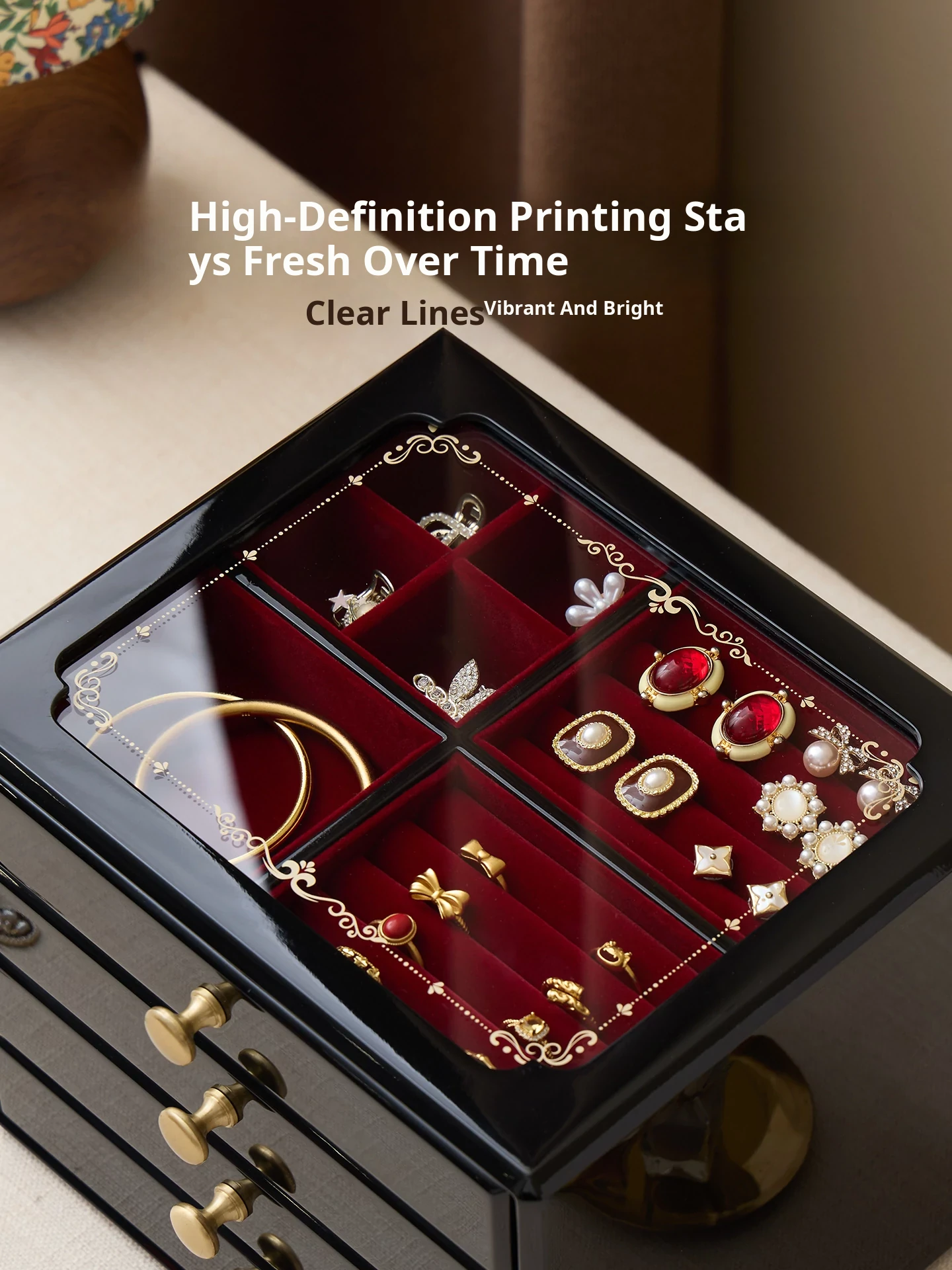 Painted Jewelry Box, Glass Type, Red Velvet, Gift Box