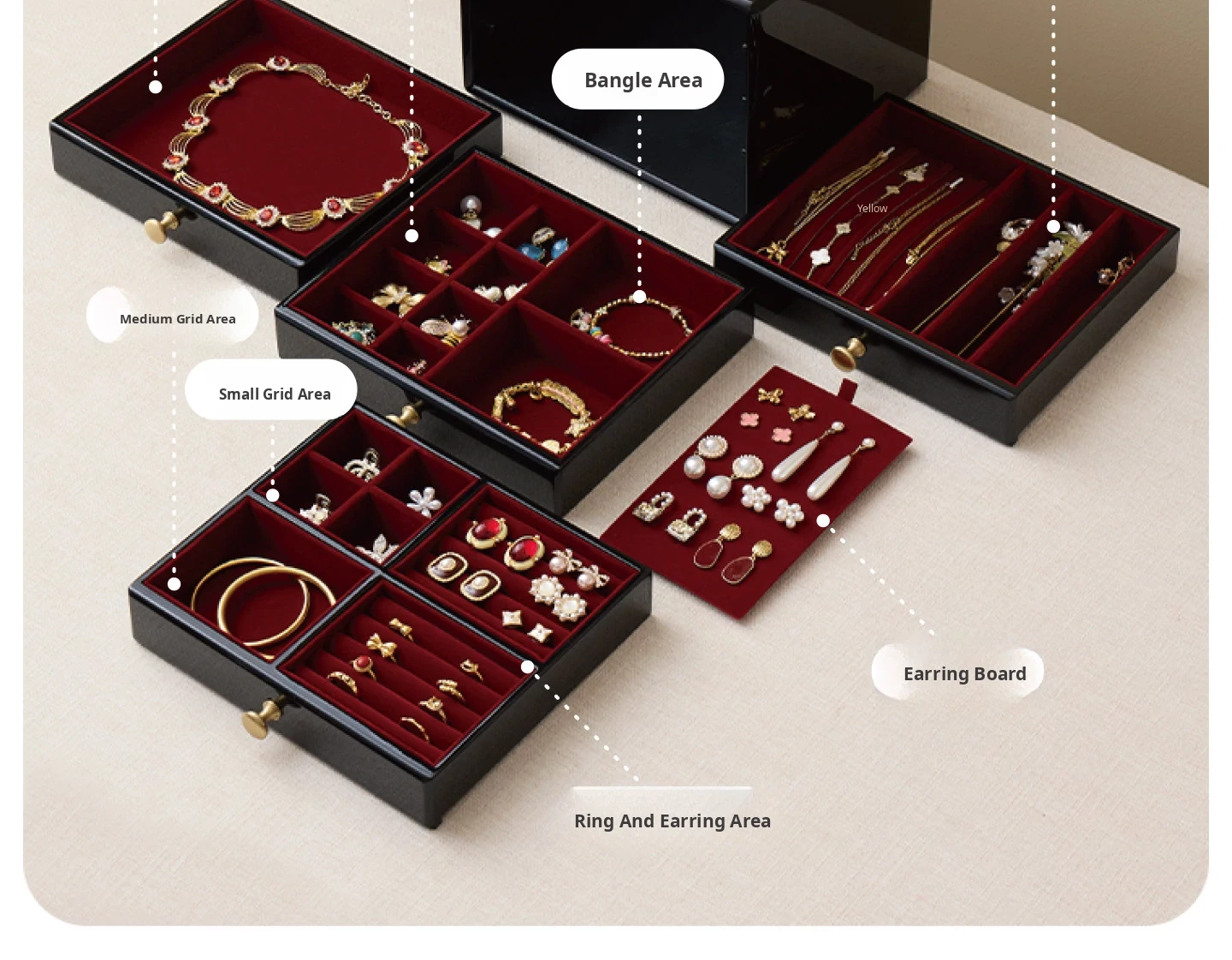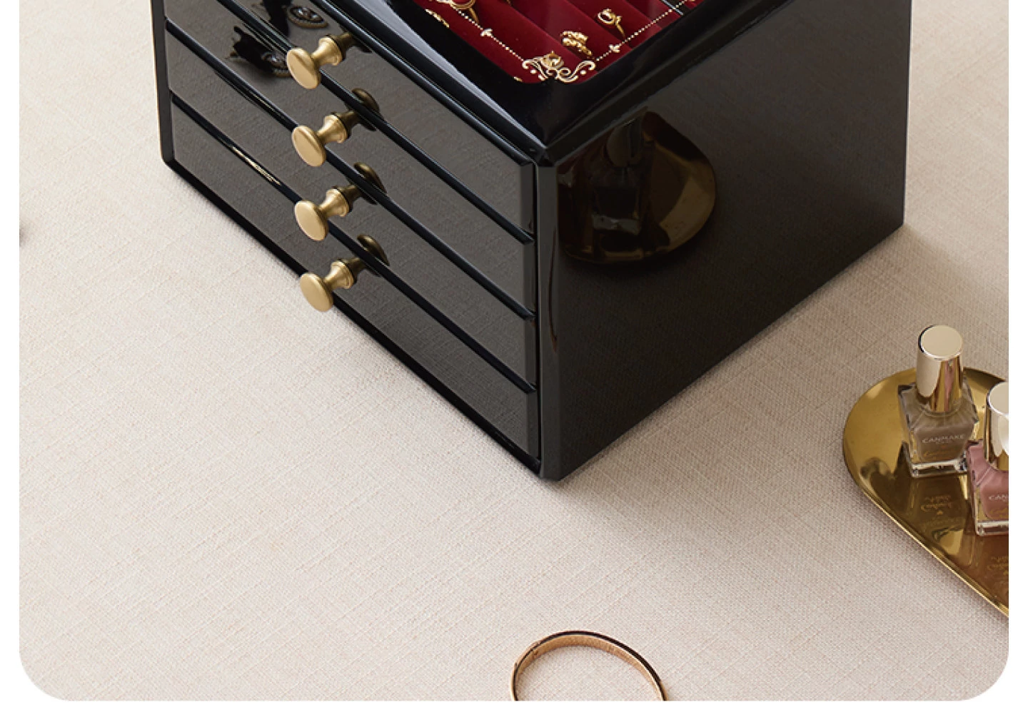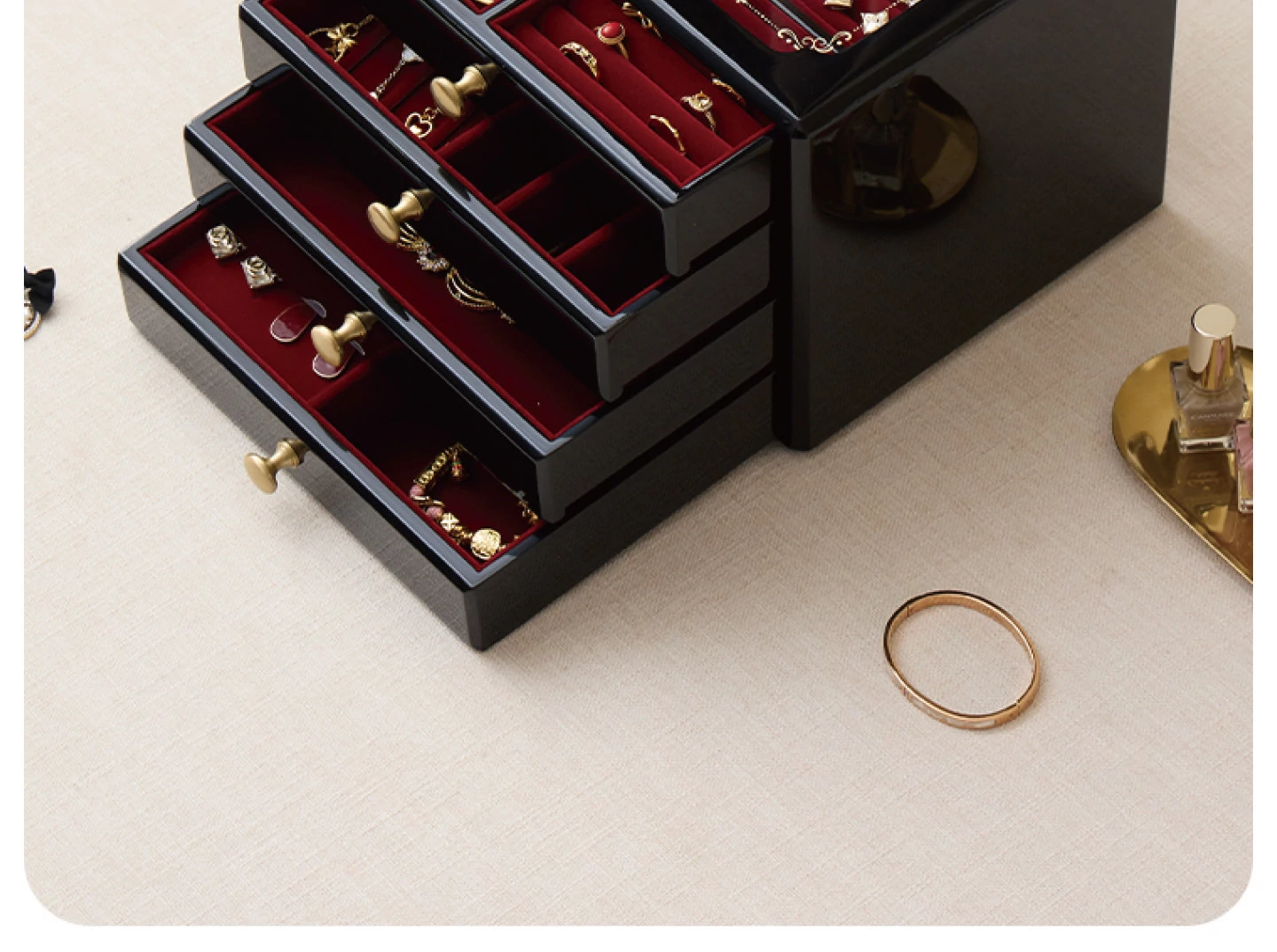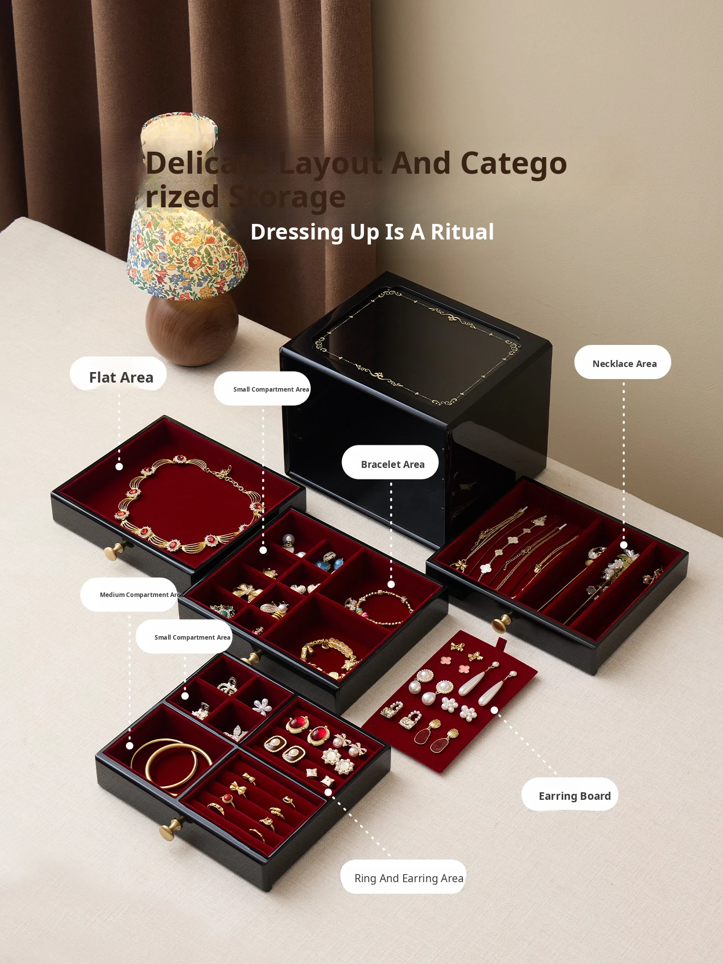 Painted Jewelry Box, Glass Type, Red Velvet, Gift Box