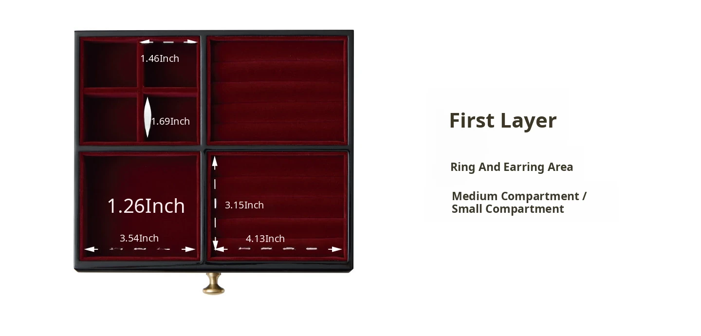 Painted Jewelry Box, Window Grille Style, Red Velvet, Gift Box